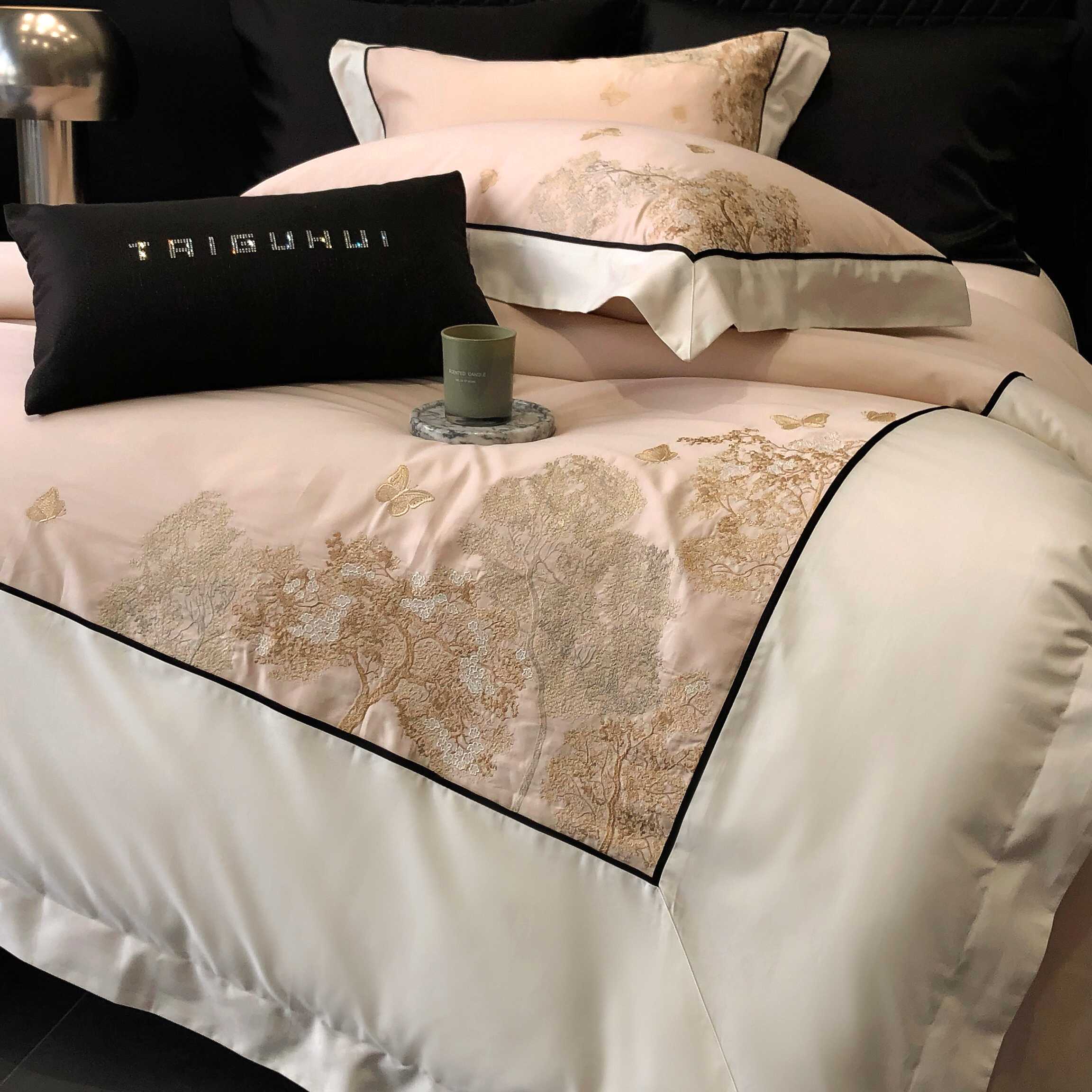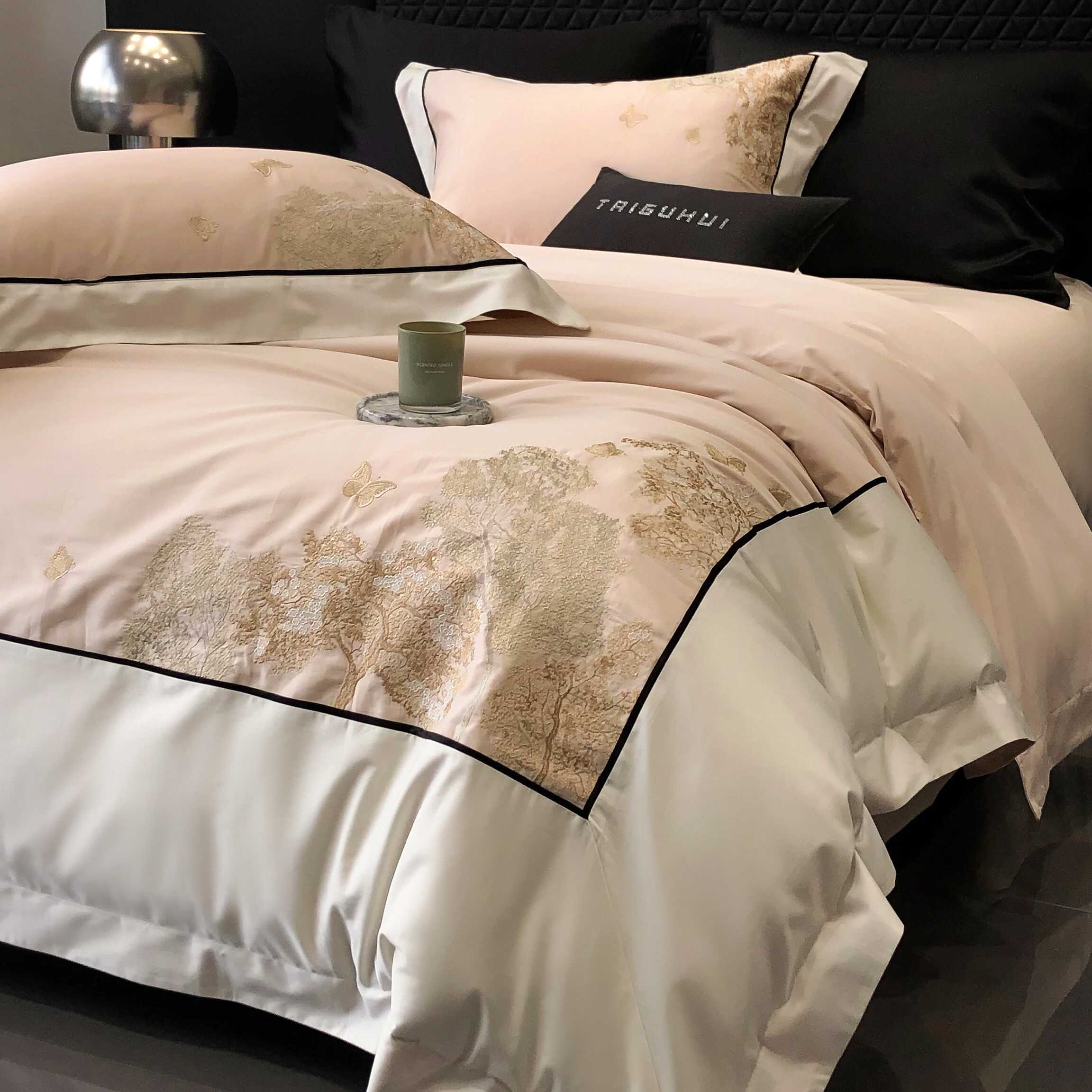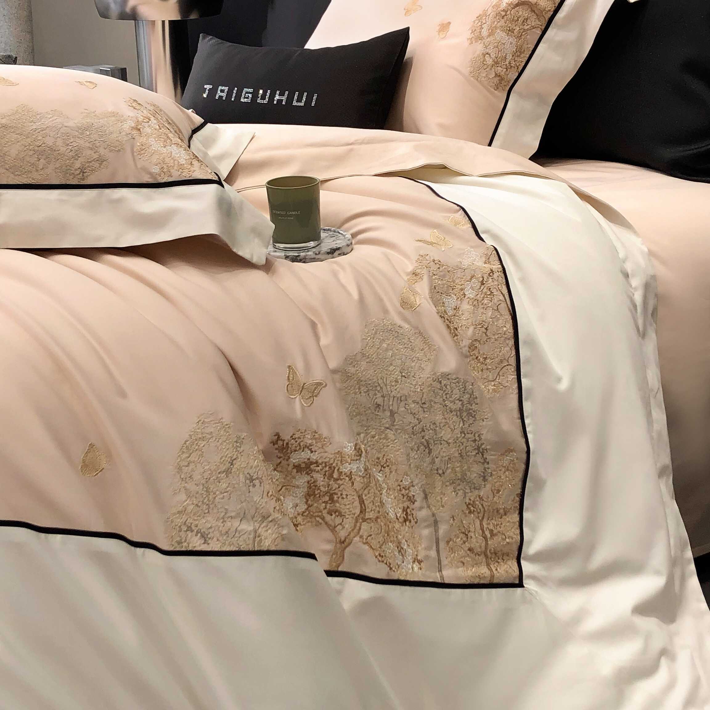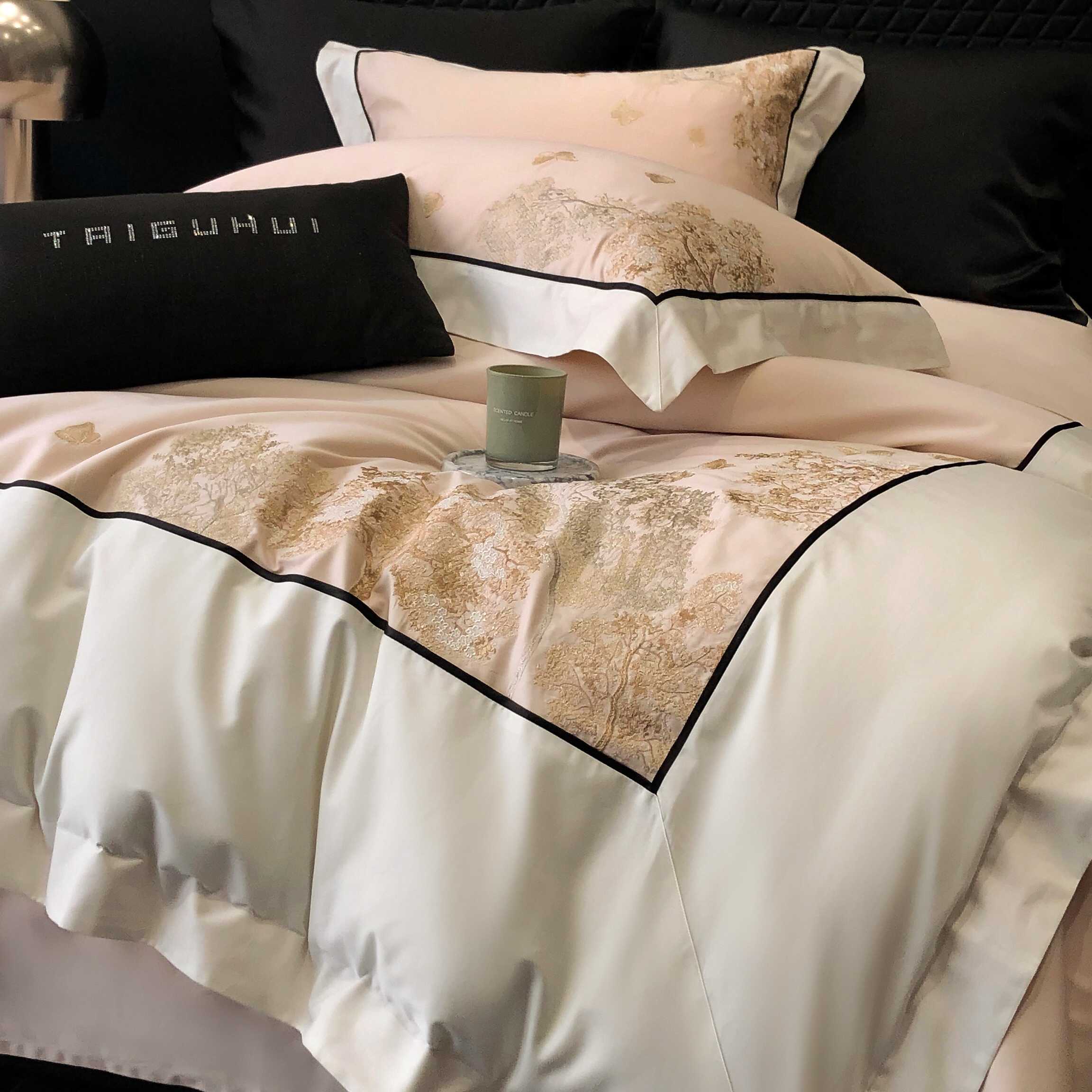 商品名称:太古汇家居 2025年长绒棉高定绣花四件套-“春日来信”系列 春日来信-冰梅粉