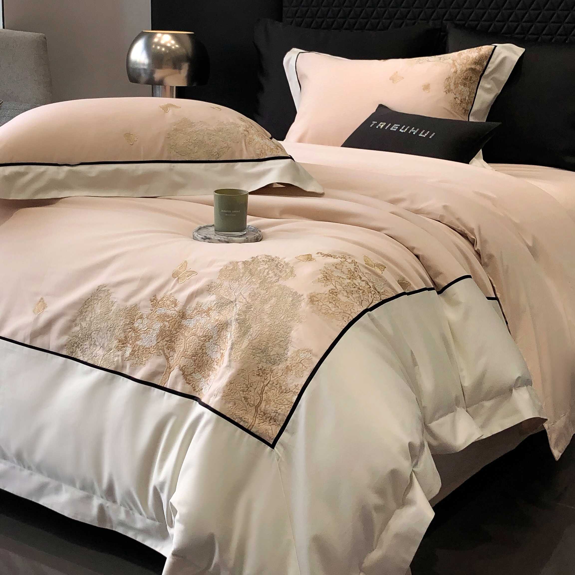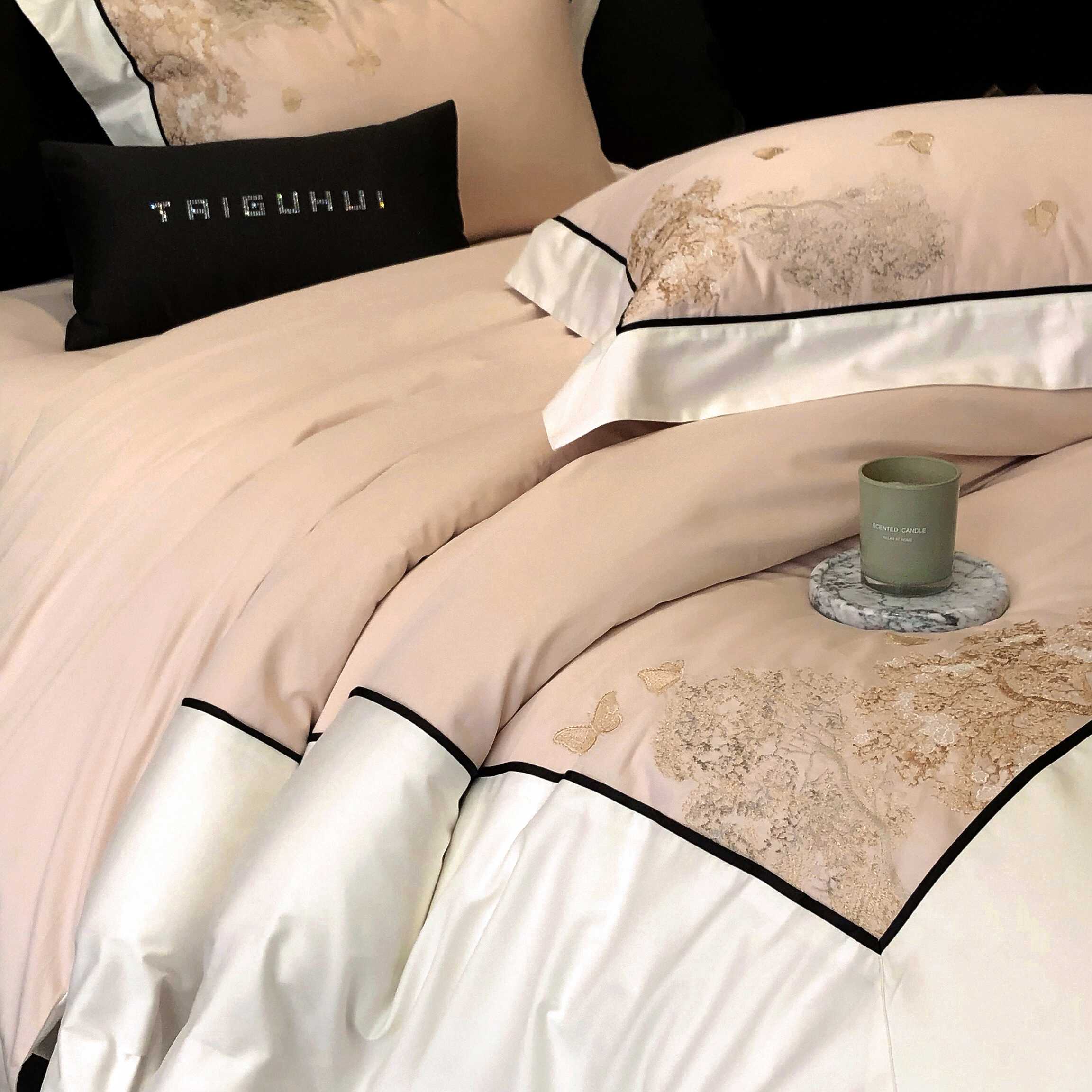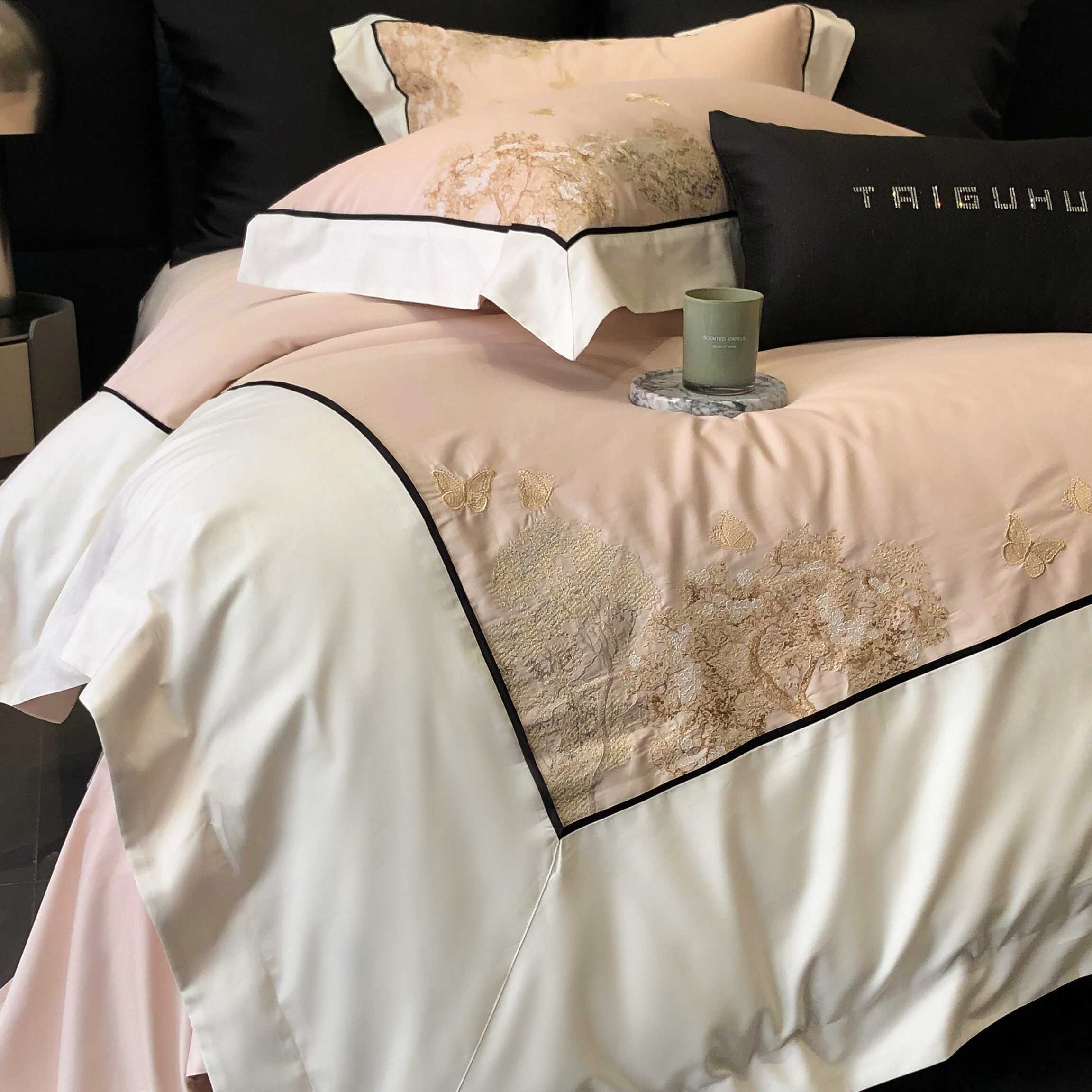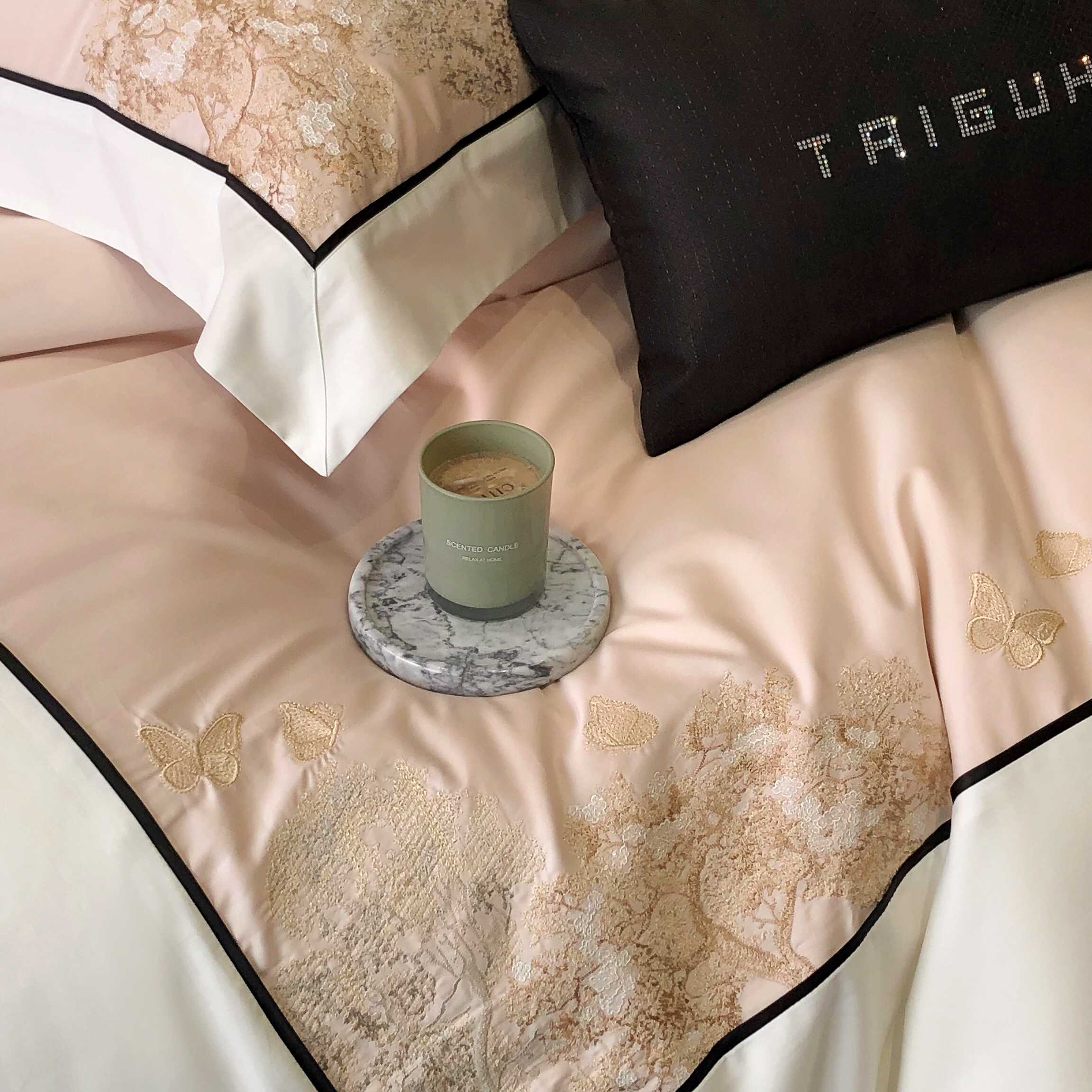 太古汇家居 2025年长绒棉高定绣花四件套-“春日来信”系列 春日来信-冰梅粉