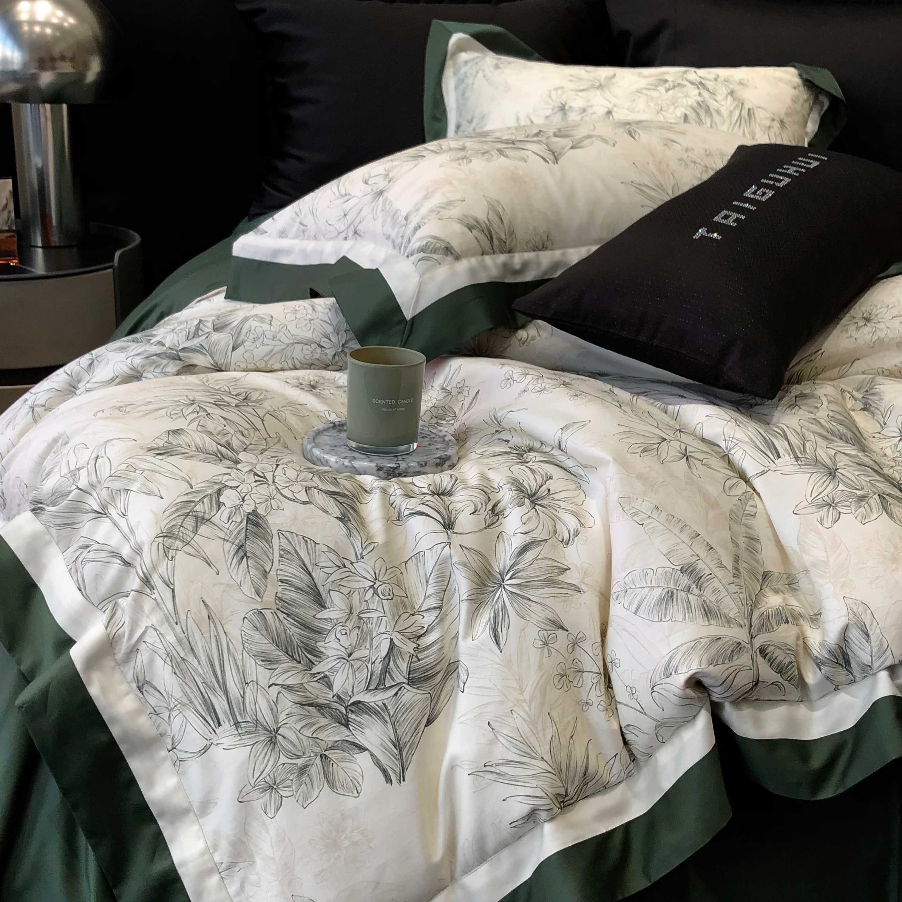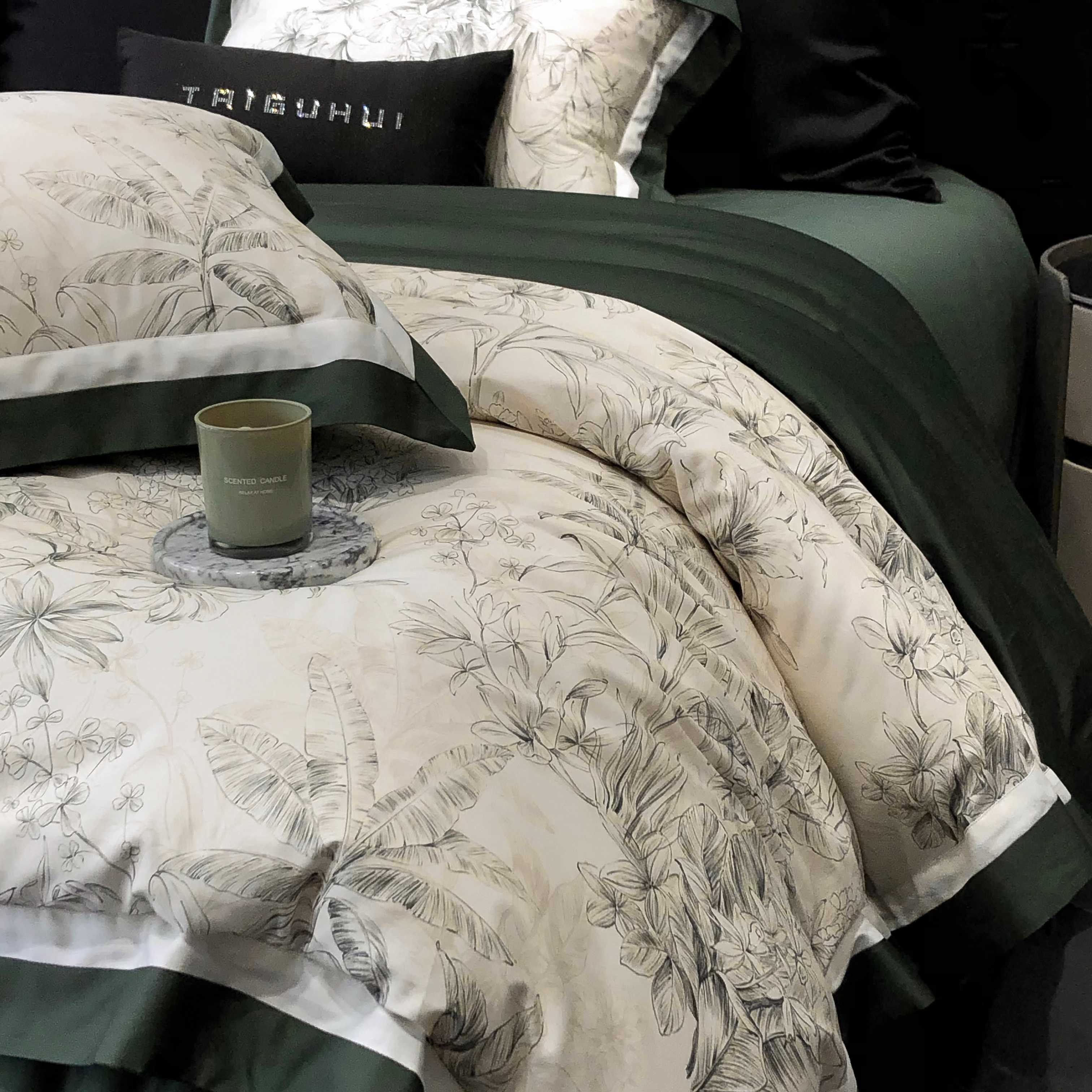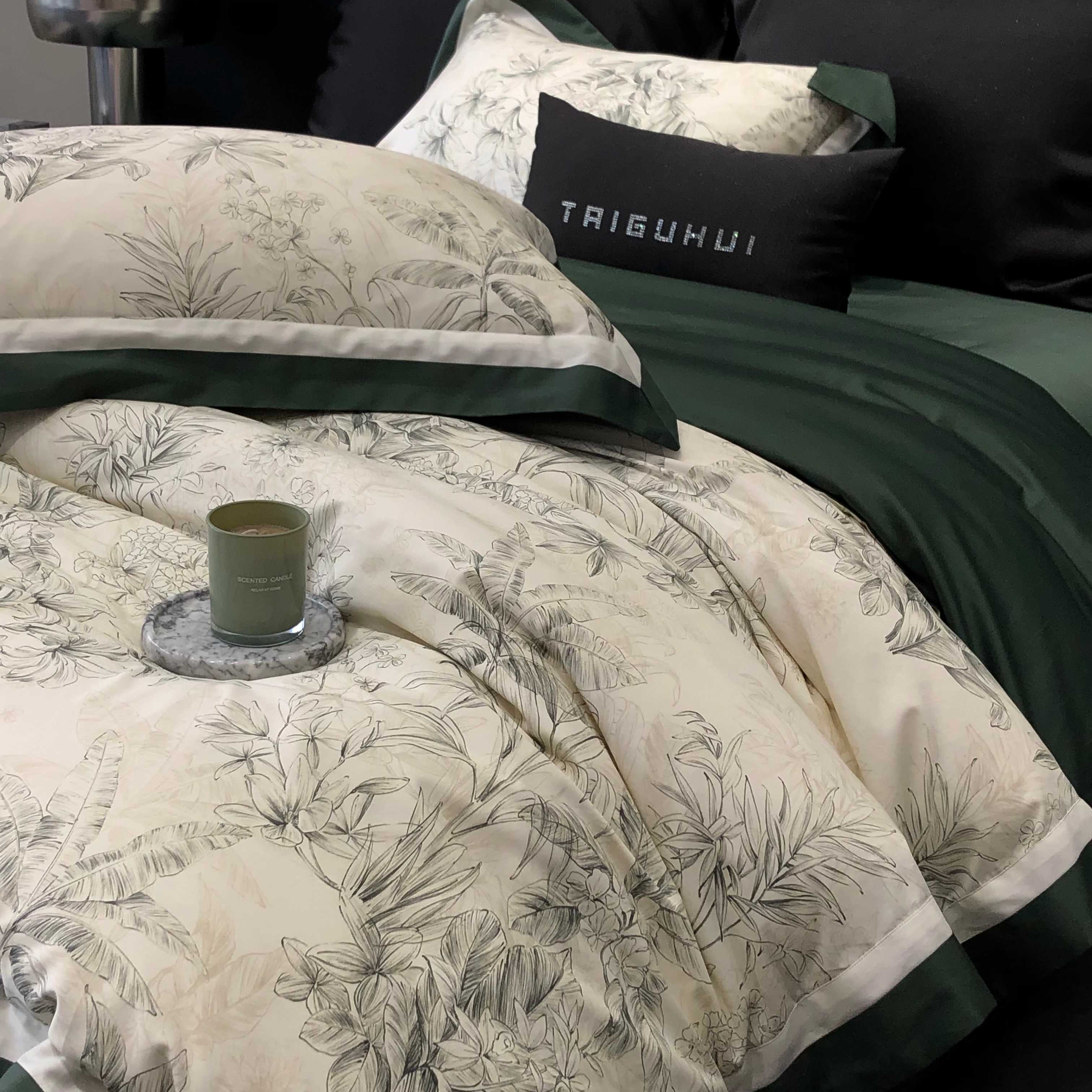 商品名称:2025新款高支高密长绒棉专版数码印花双拼系列四件套-卡梅伦【券后不低于378】 卡梅伦-绿