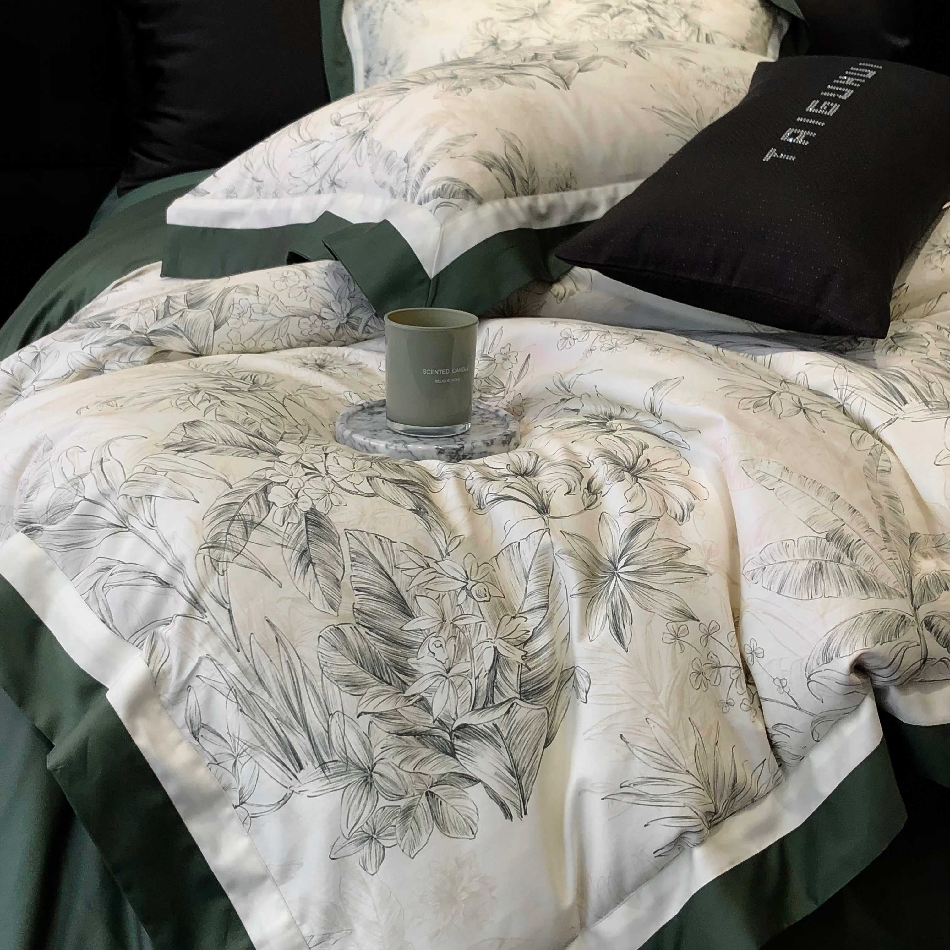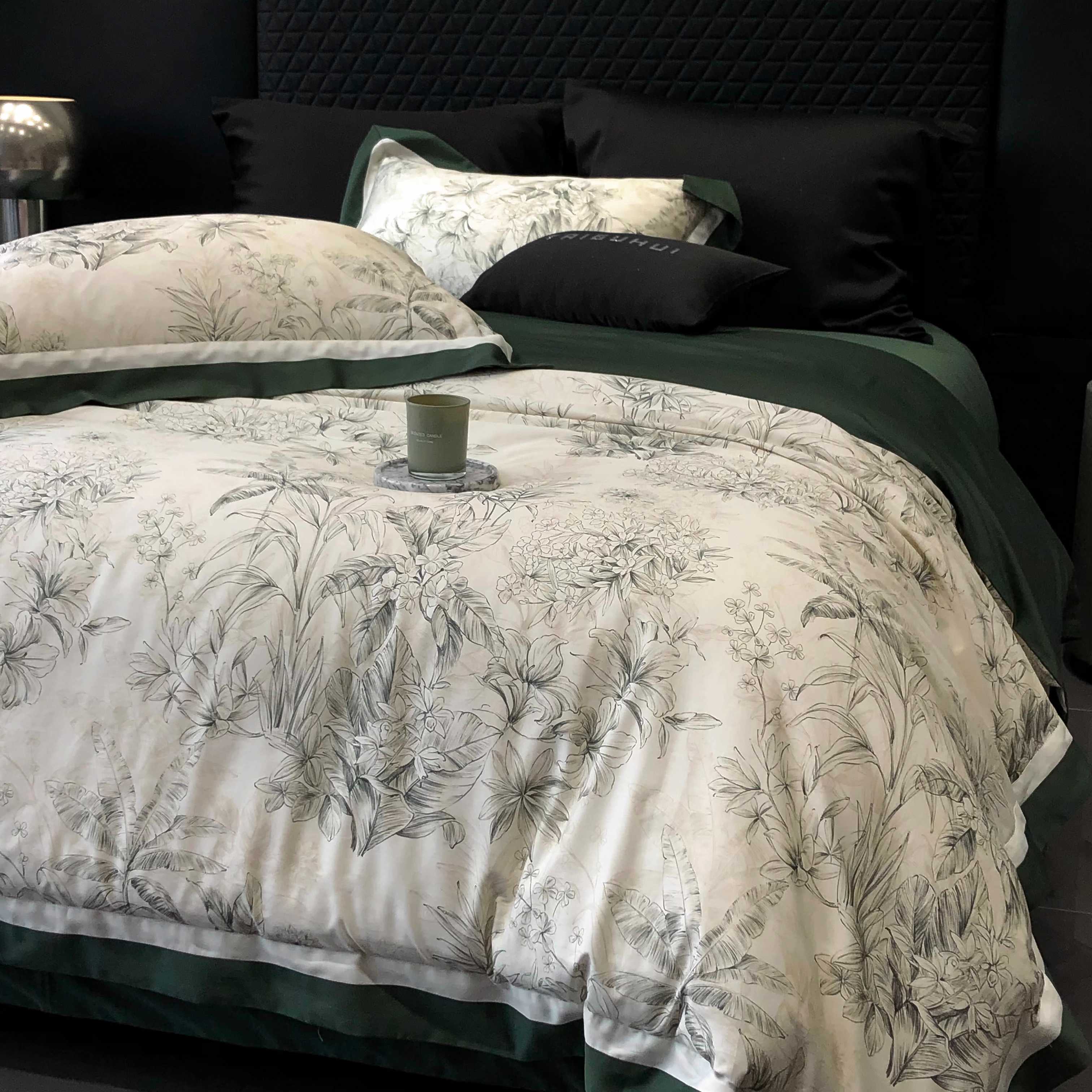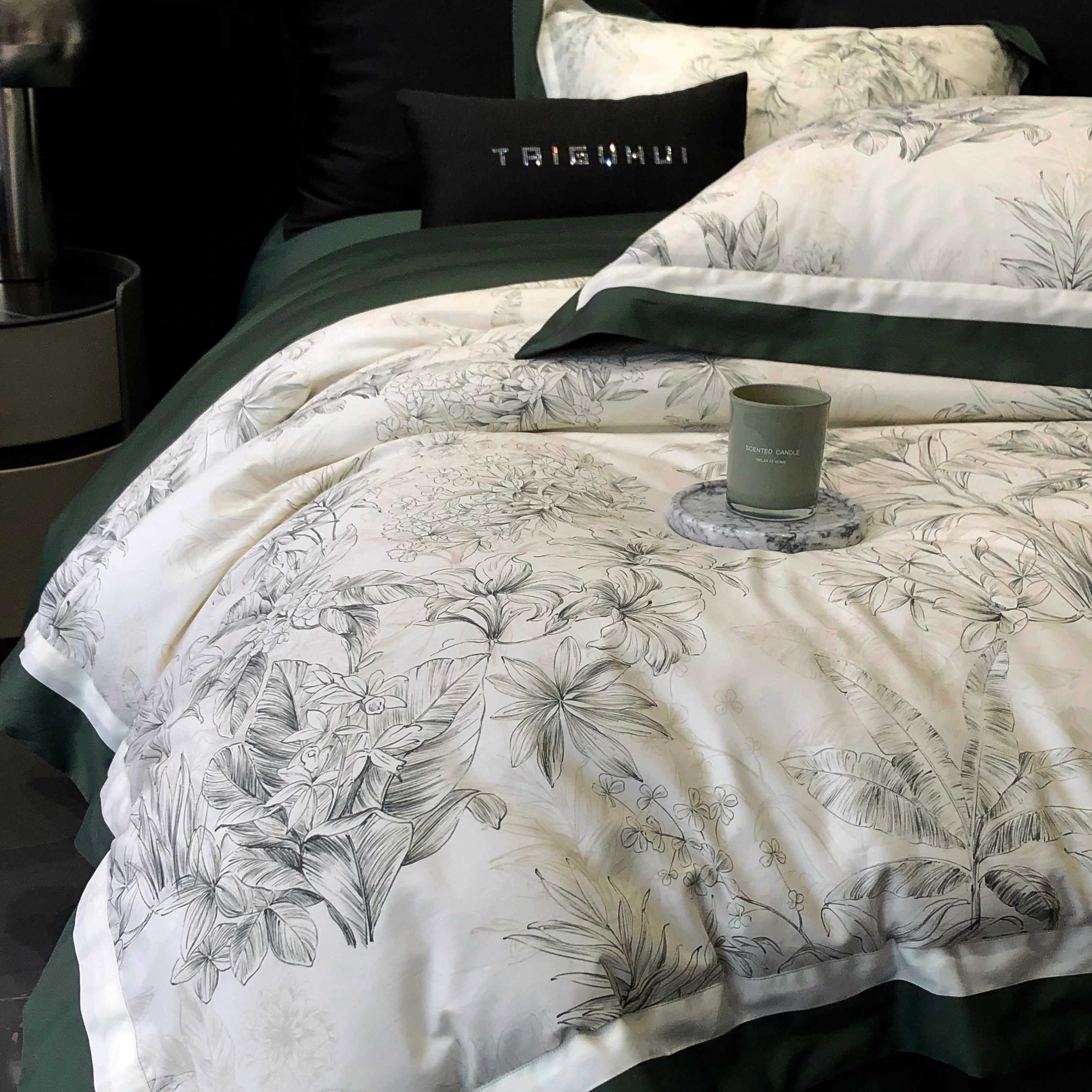 商品名称:2025新款高支高密长绒棉专版数码印花双拼系列四件套-卡梅伦【券后不低于378】 卡梅伦-绿