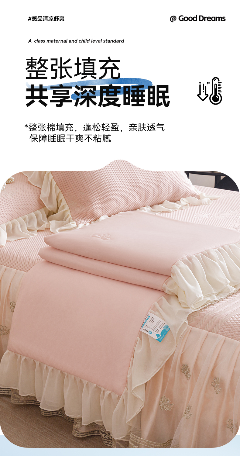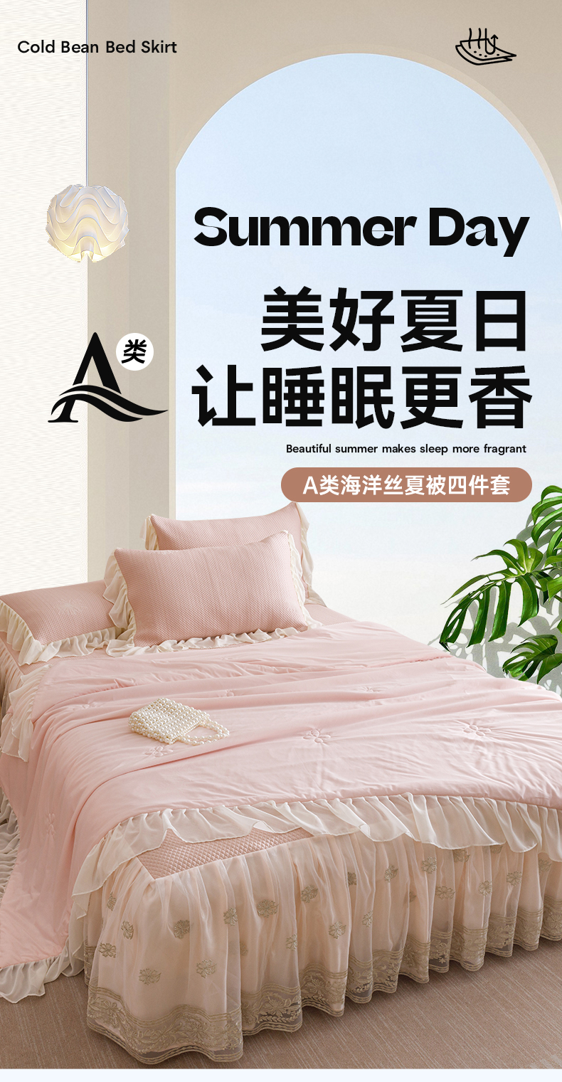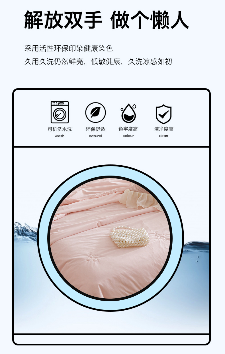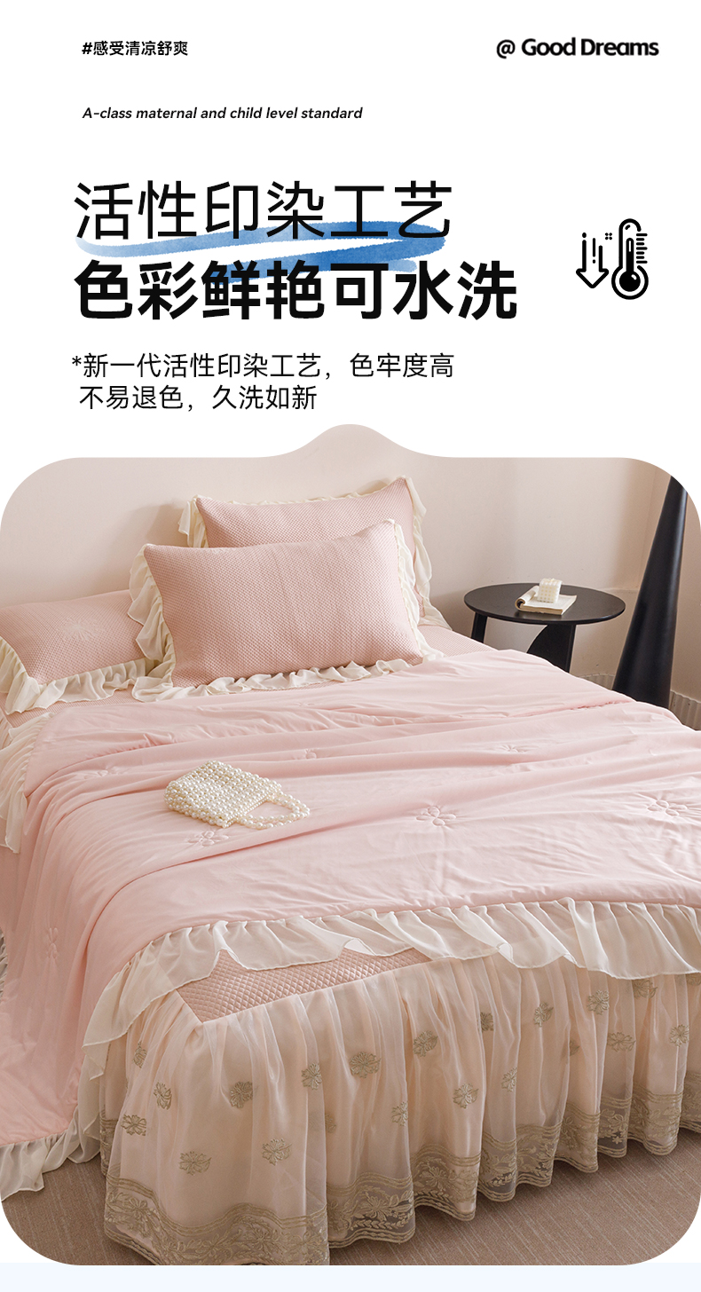 商品名称:好儿喜家纺 2025新款A类海洋丝凉感夏被夏凉被空调被豆豆席席子凉席床裙四件套--赫本系列 赫本-风信子粉