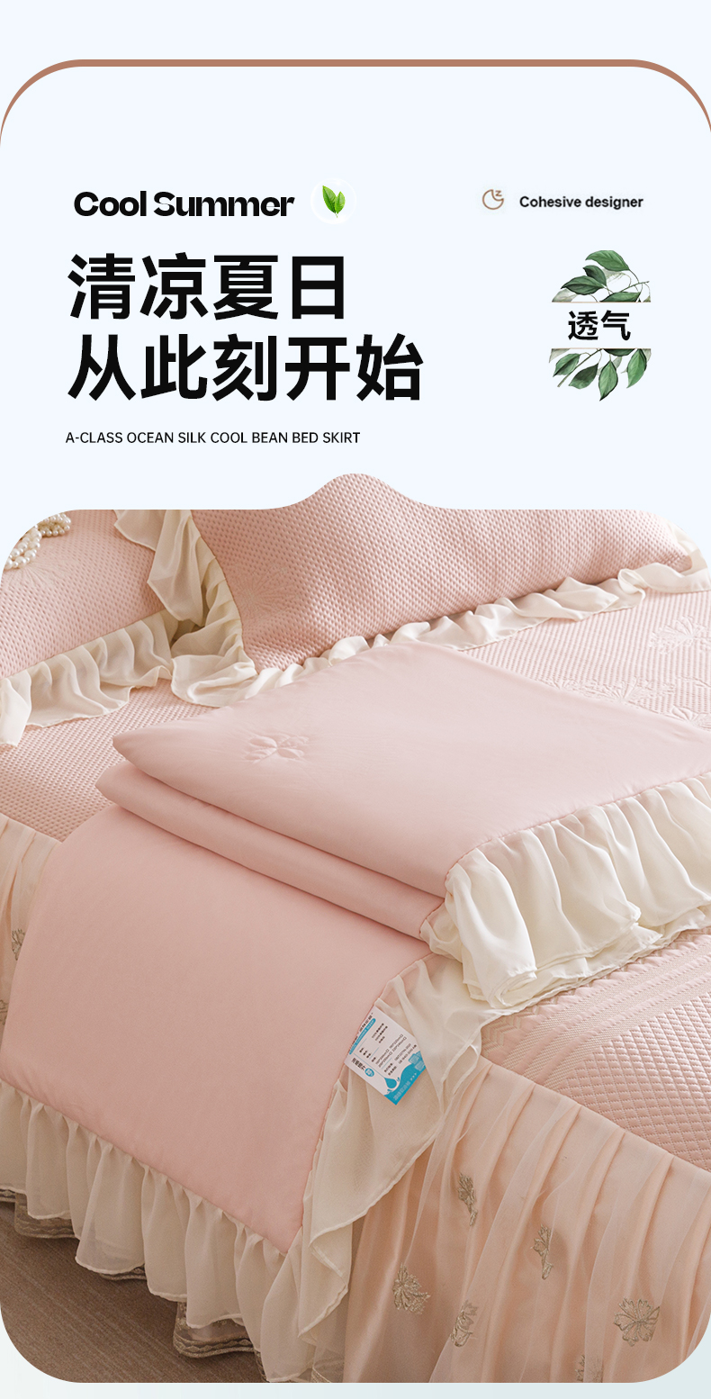 好儿喜家纺 2025新款A类海洋丝凉感夏被夏凉被空调被豆豆席席子凉席床裙四件套--赫本系列 赫本-风信子粉