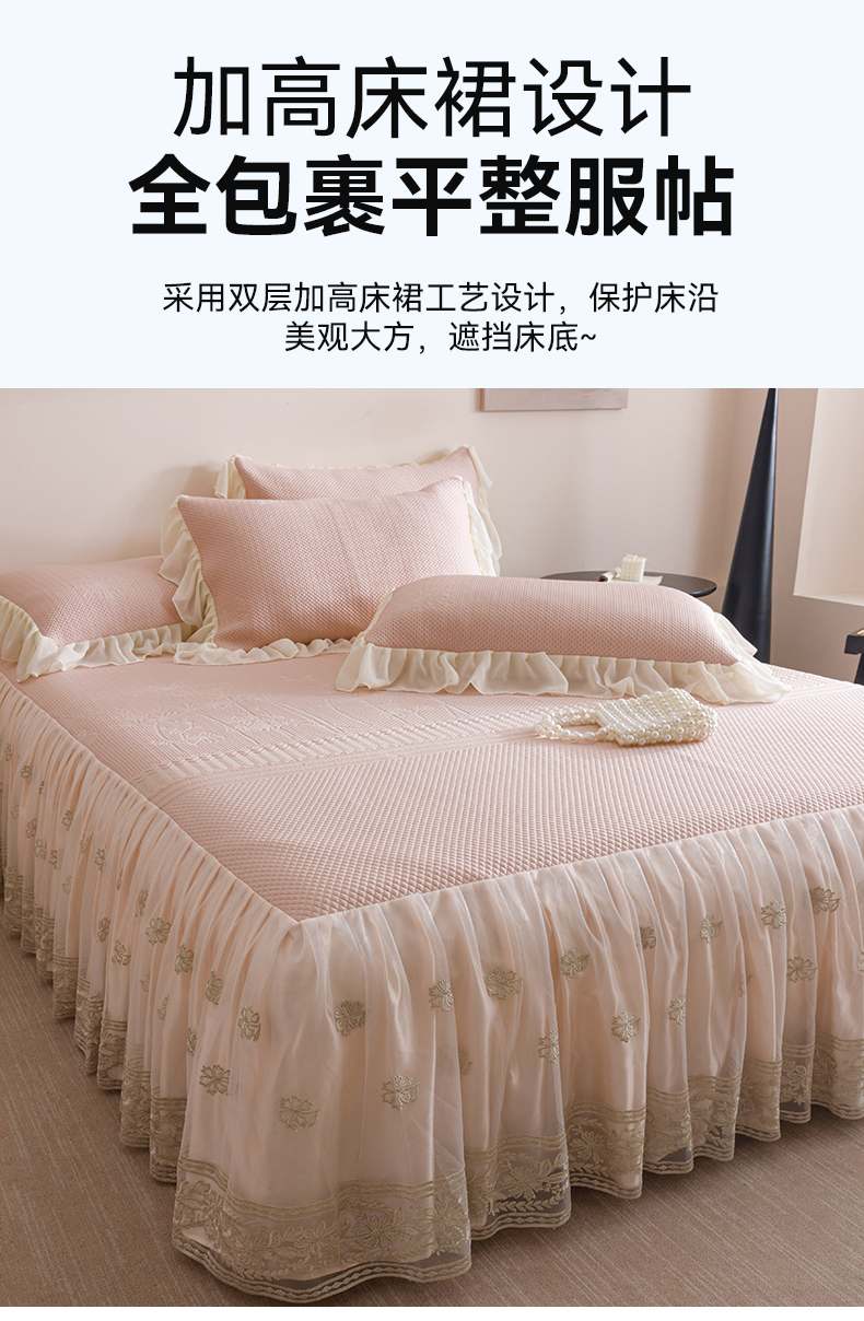 (总)好儿喜家纺 2024新款伊芙琳凉席床裙三件套,浅绿,橄榄绿,奶白,浅粉,浅蓝
