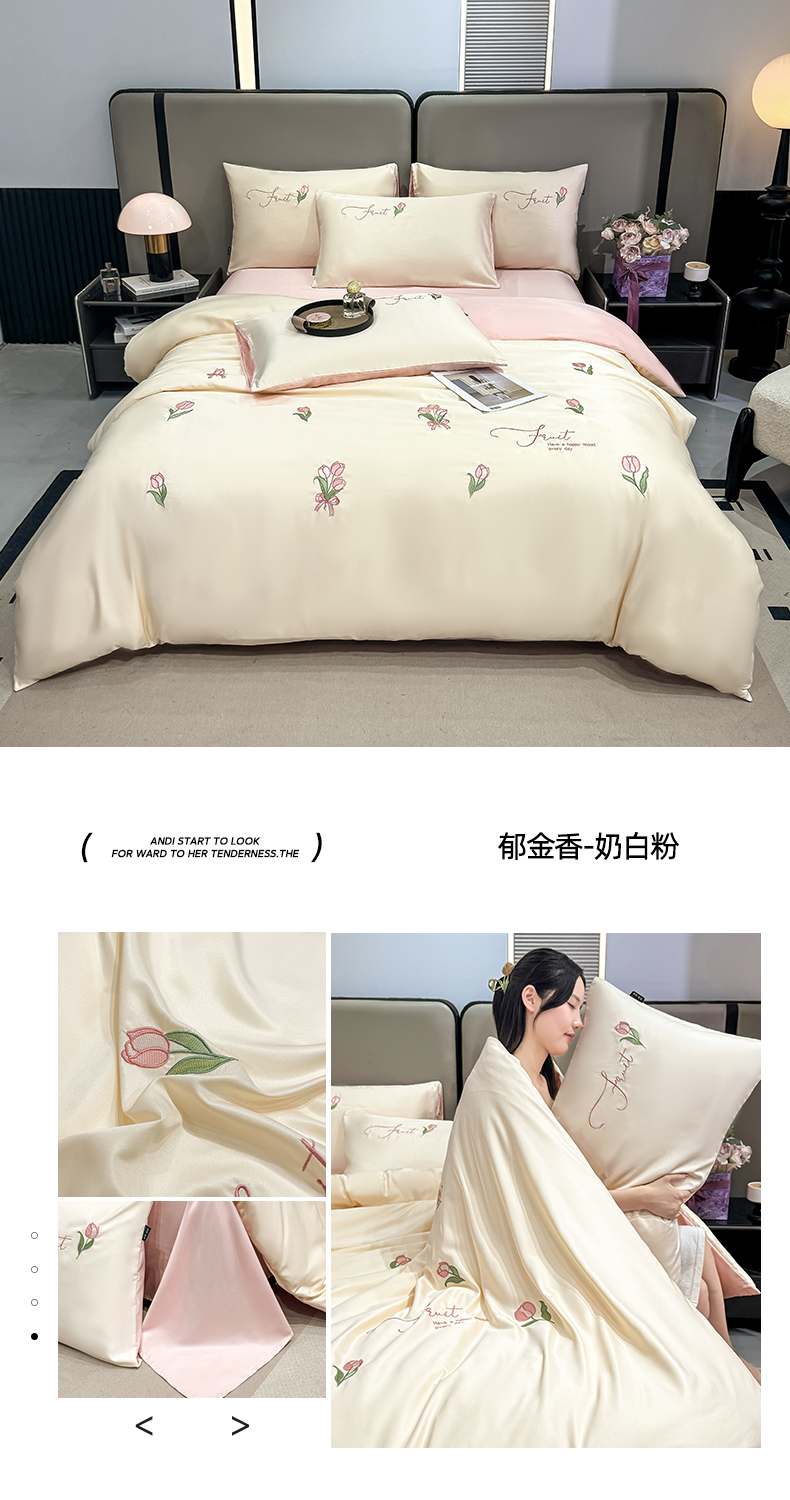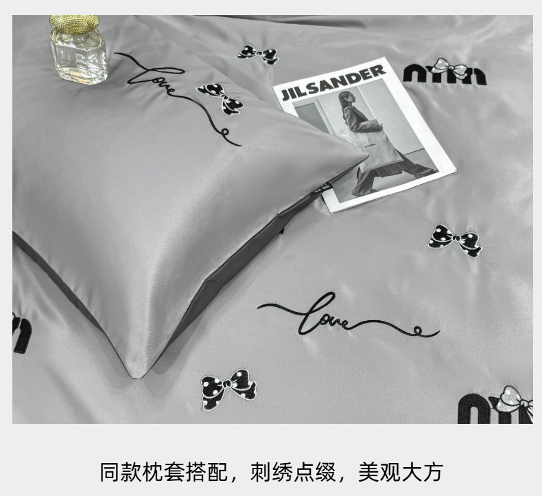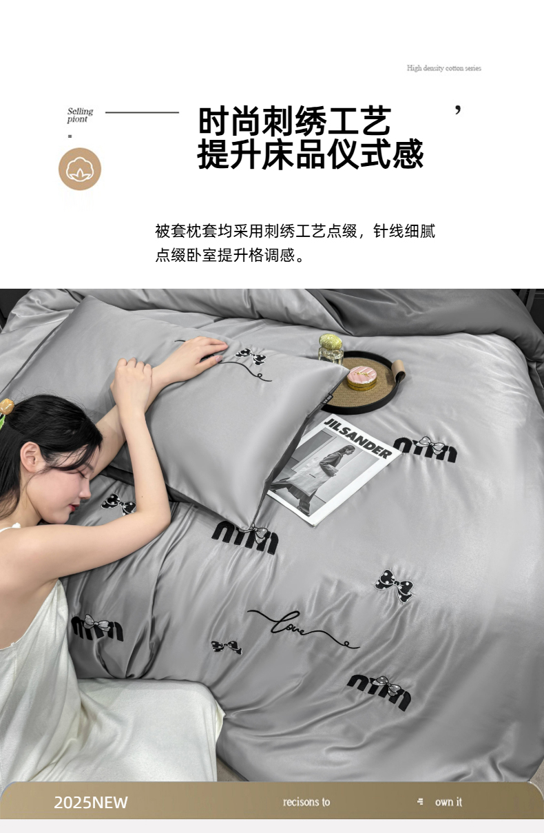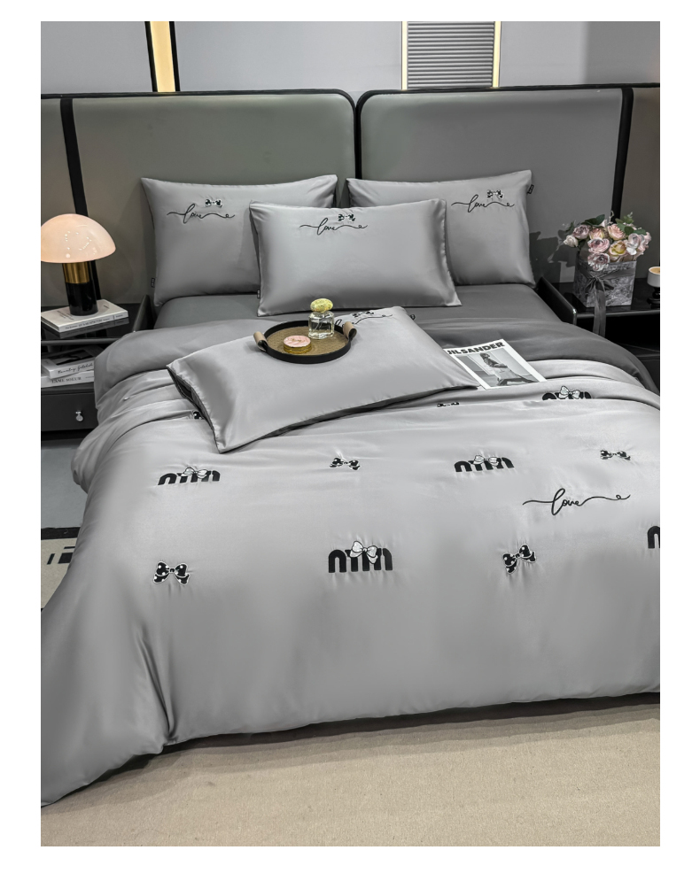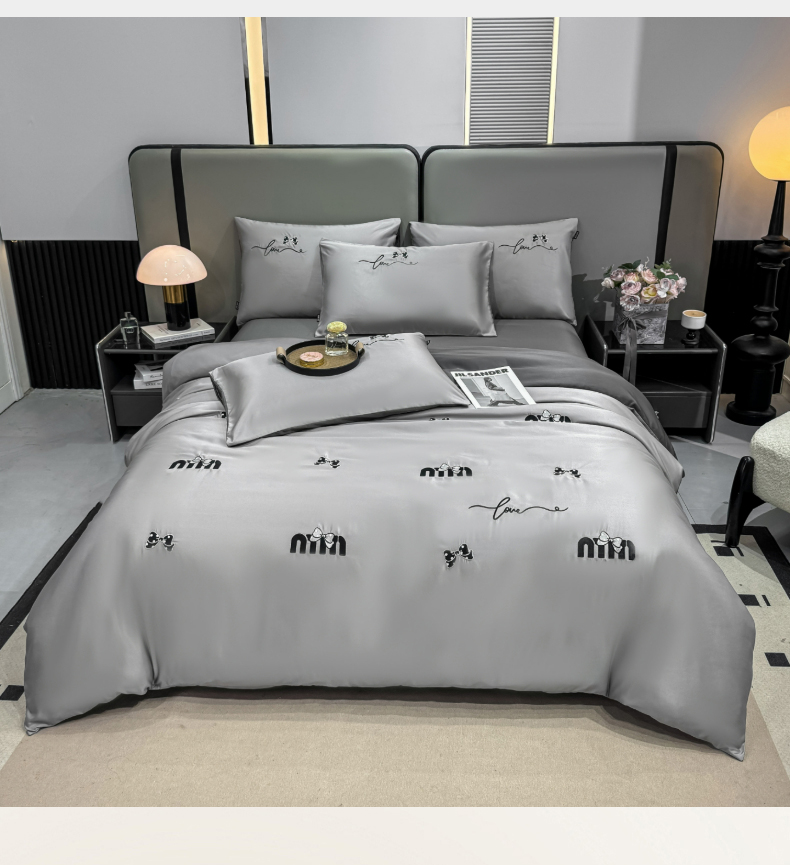 当前位置: 91家纺网 > 商品网购 > 床品套件 > 四件套 > 水洗真丝四件套 > 乐沐家纺 2025春夏新款水洗真丝绣花冰丝四件套 mm-烟云灰