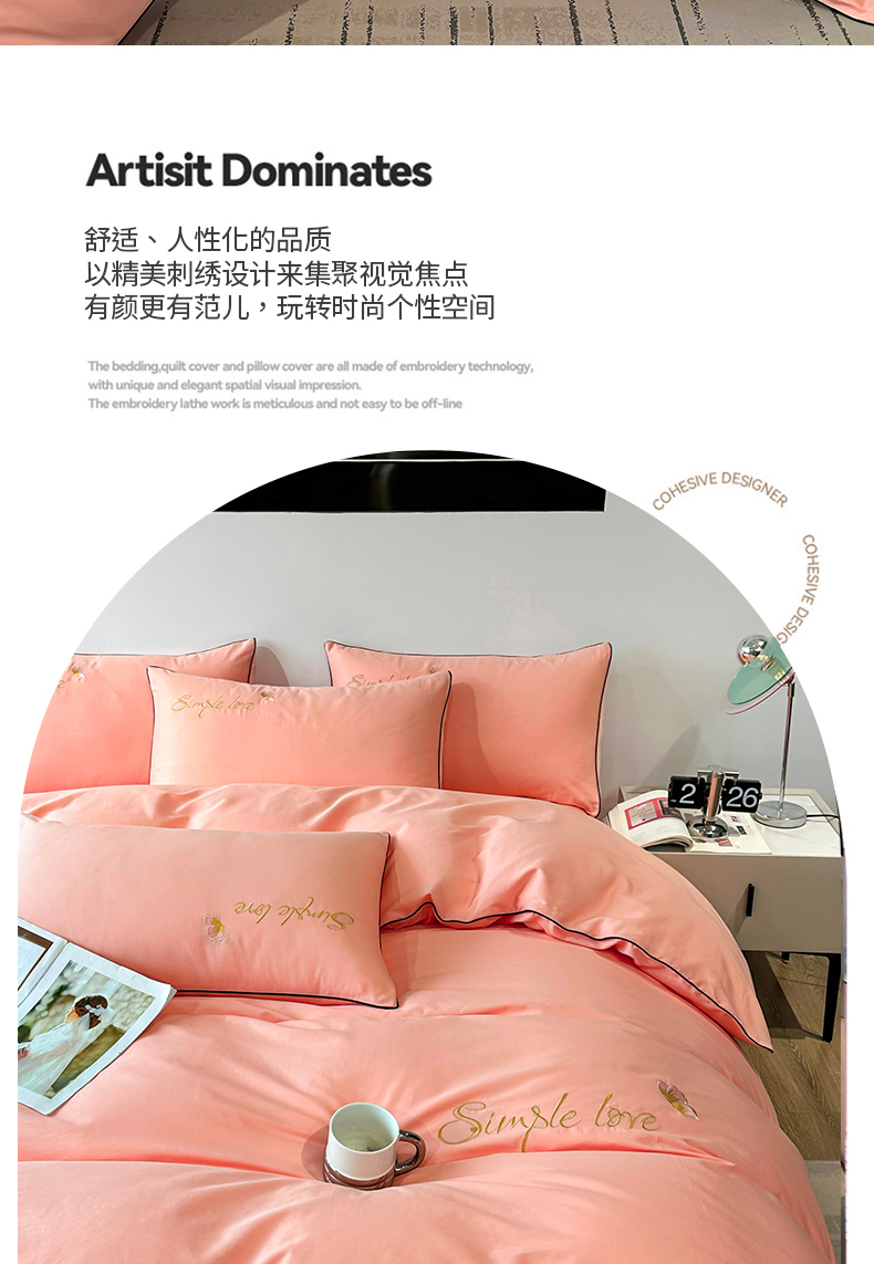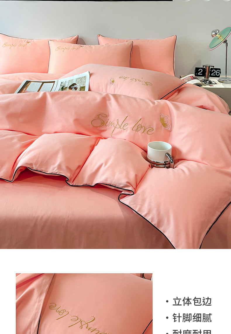 (总)宇彬家纺 2026直播热新款A类13374全棉一字绣宽边枕套被套纯色四件套贡缎新疆长绒匹马棉轻奢缩水足可定做,简绣-宝石红,简绣-宾利蓝,简绣-典雅紫,简绣-摩卡绿,简绣-奶油粉,简绣-绅士灰,简绣-炫彩绿,简绣-紫豆沙