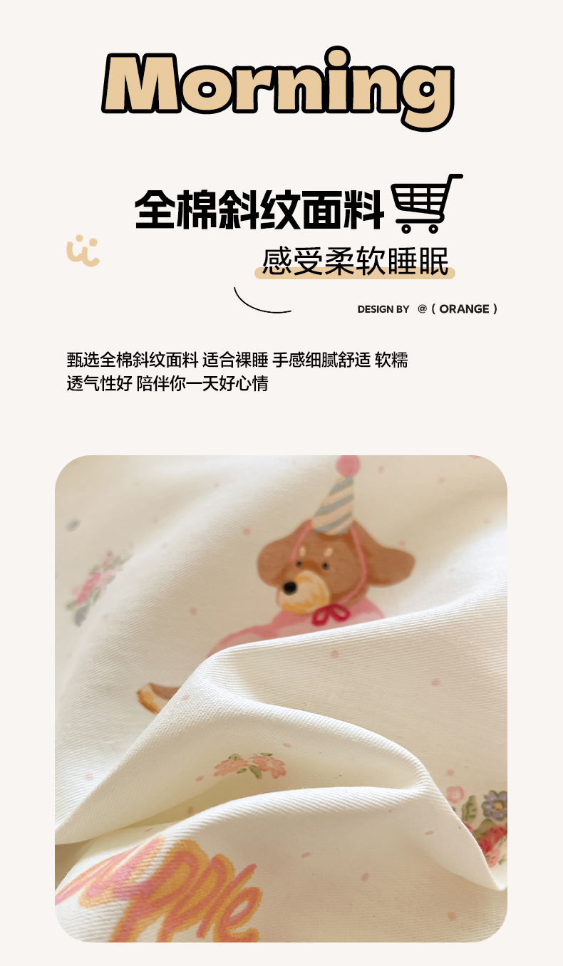商品名称:花梦欣 2025新款全棉纯棉印花单品系列-三件套 酷卡小狗