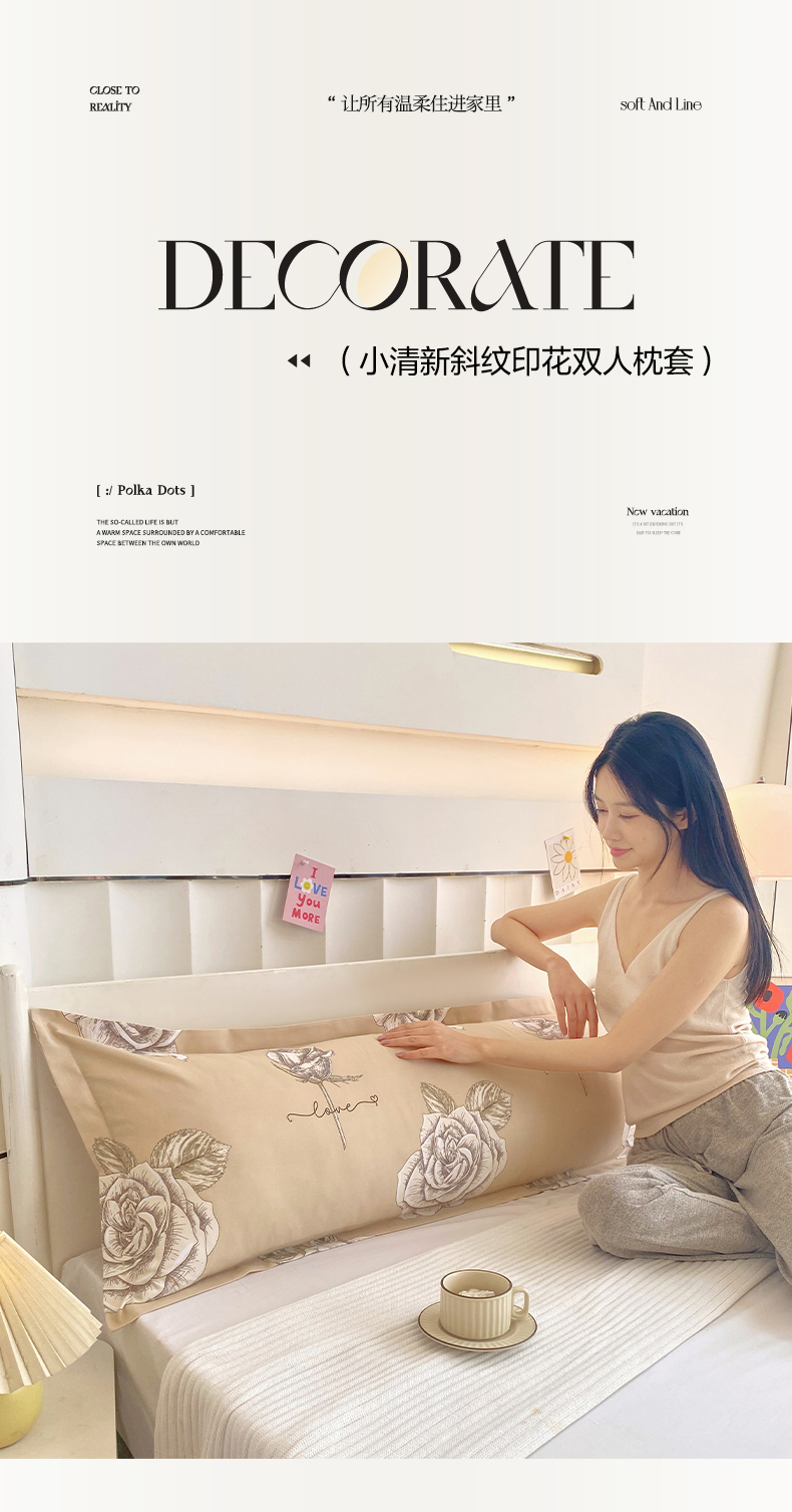 • 91家纺网 家纺一手货源 找家纺 芯宜佳 2025新款小清新斜纹印花双人枕套 玫瑰故事