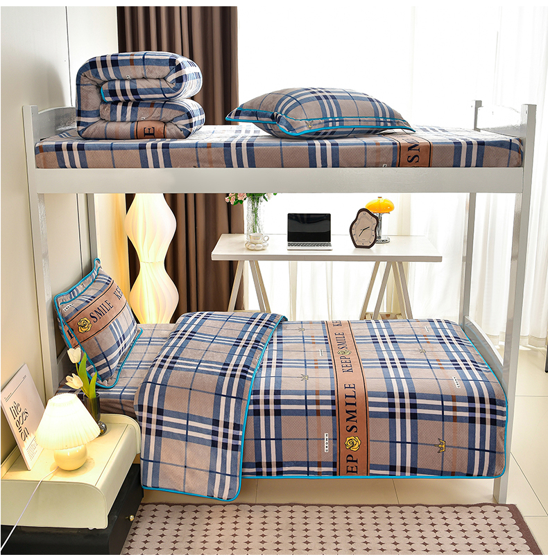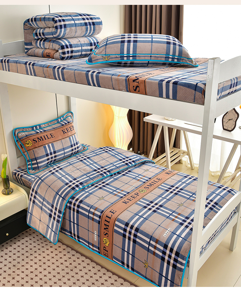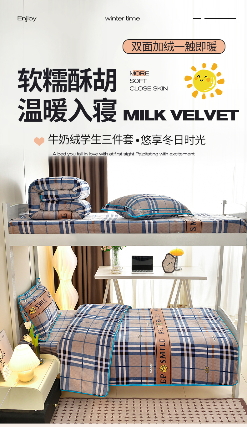 (总)缘莉娜家纺 2025新款牛奶绒印花学生宿舍三件套上下铺三件套