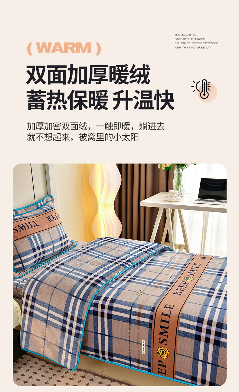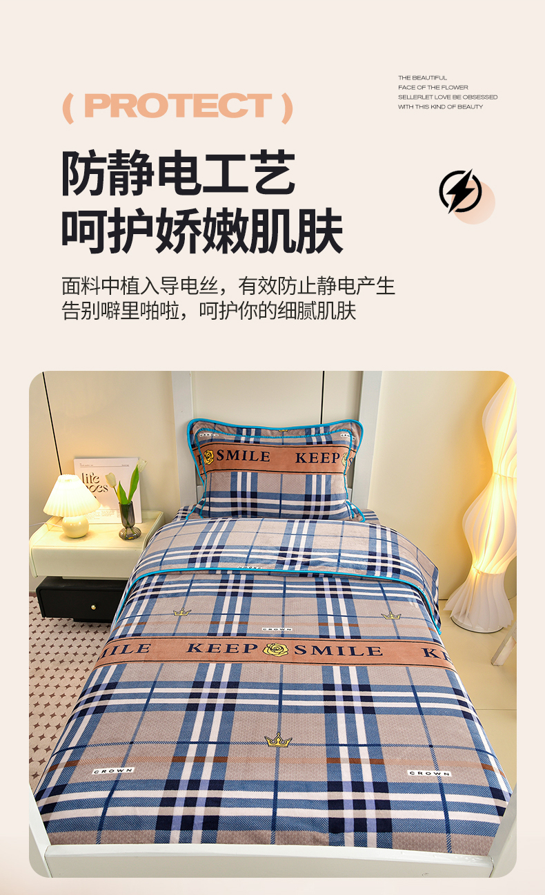 商品名称:(总)缘莉娜家纺 2025新款牛奶绒印花学生宿舍三件套上下铺三件套