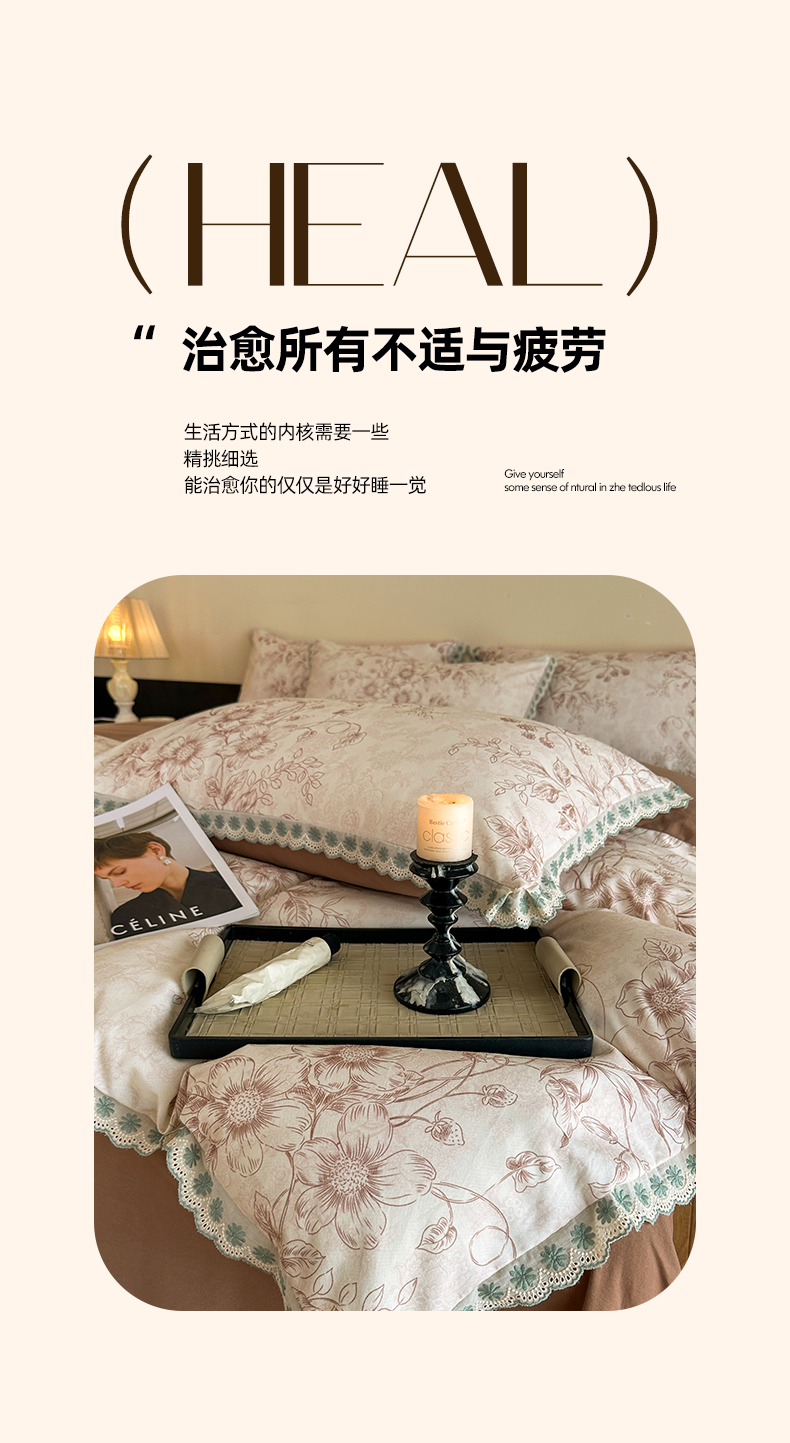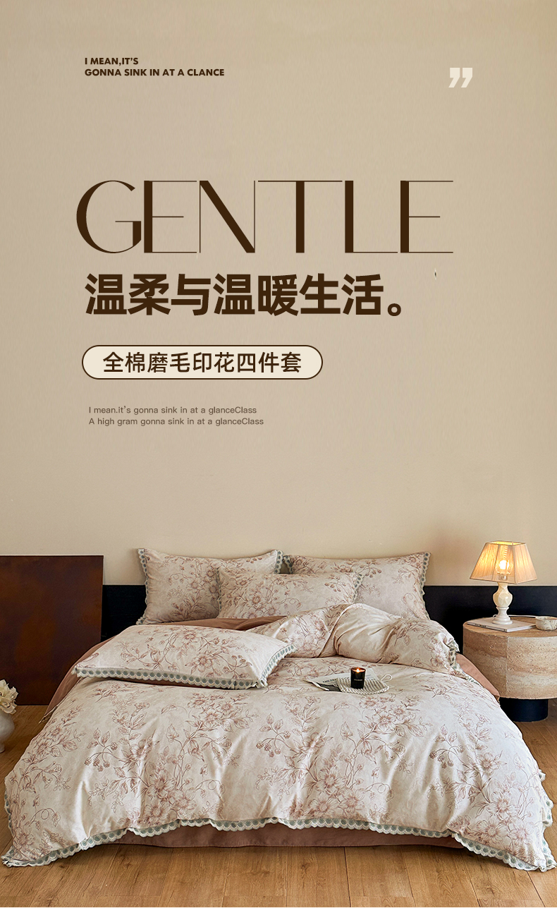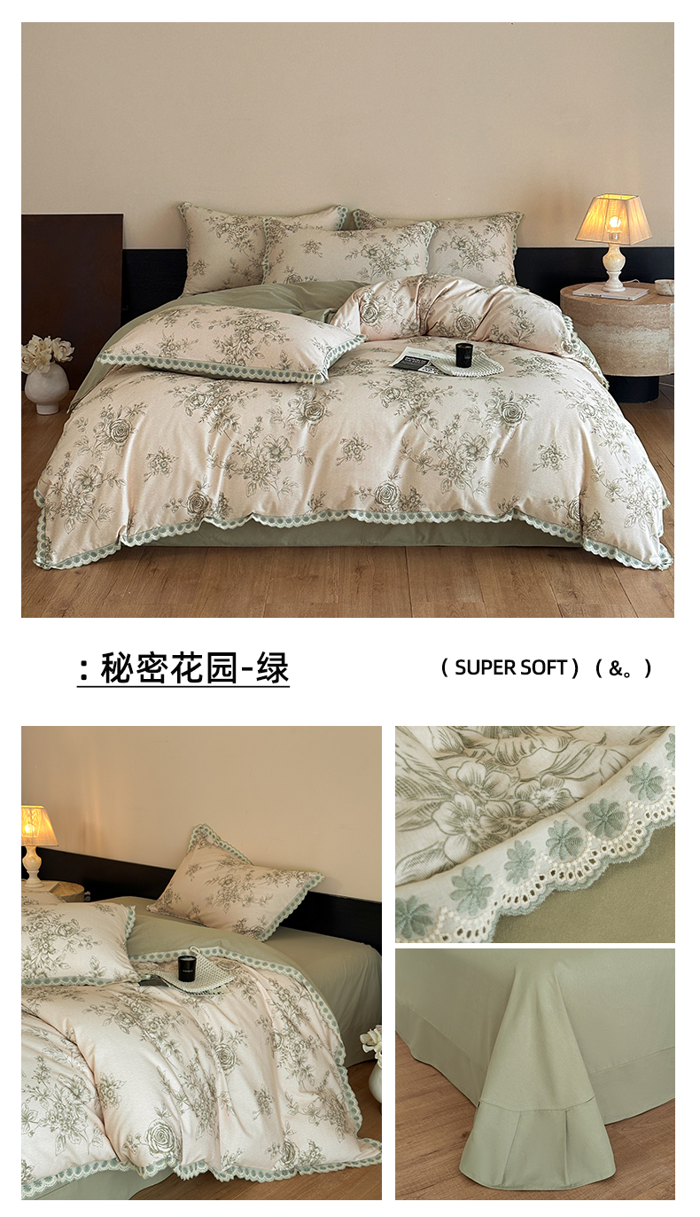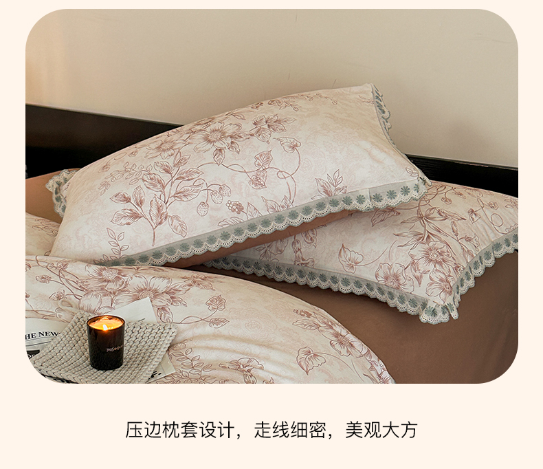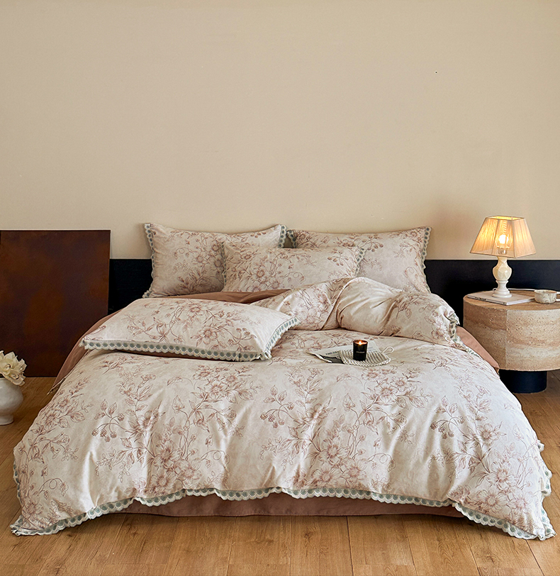 当前位置: 91家纺网 > 商品网购 > 床品套件 > 四件套 > 全棉普通四件套 > 帛美家纺 2025年新款全棉纯棉花边印花磨毛四件套 花禧-咖