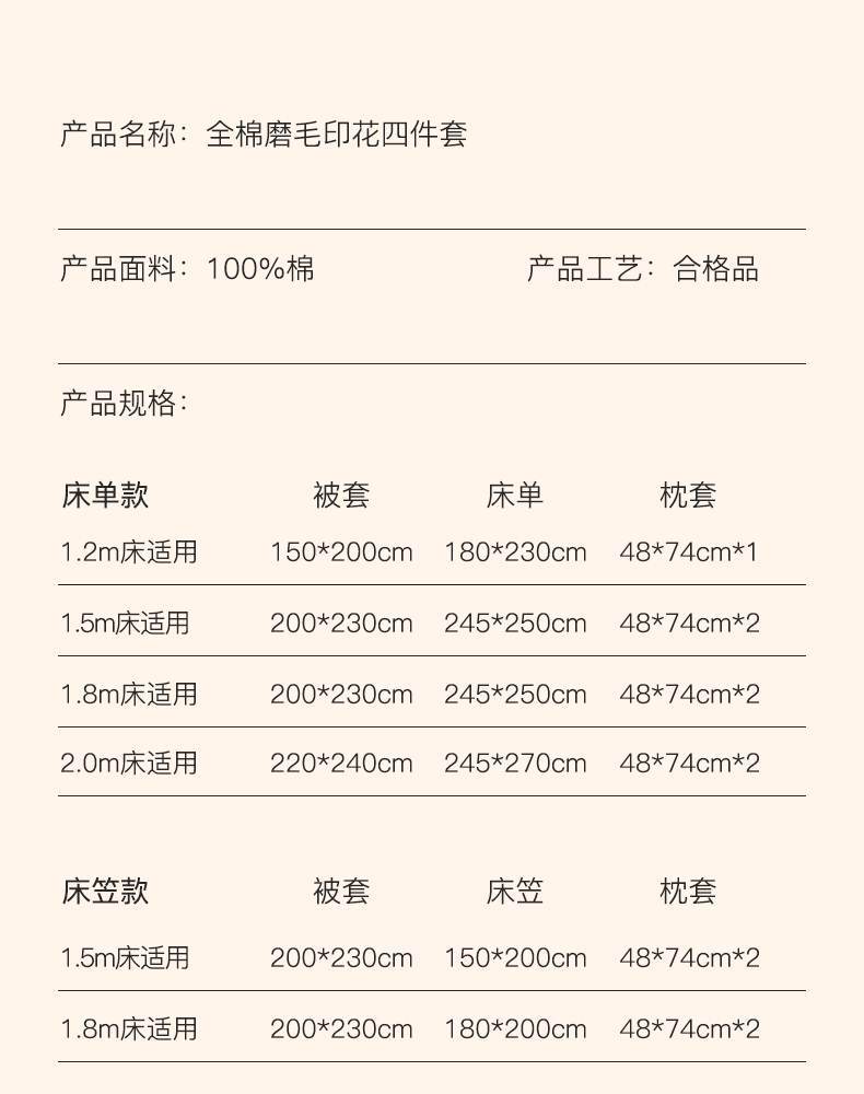 单被套200x230cm | ¥85.00 |