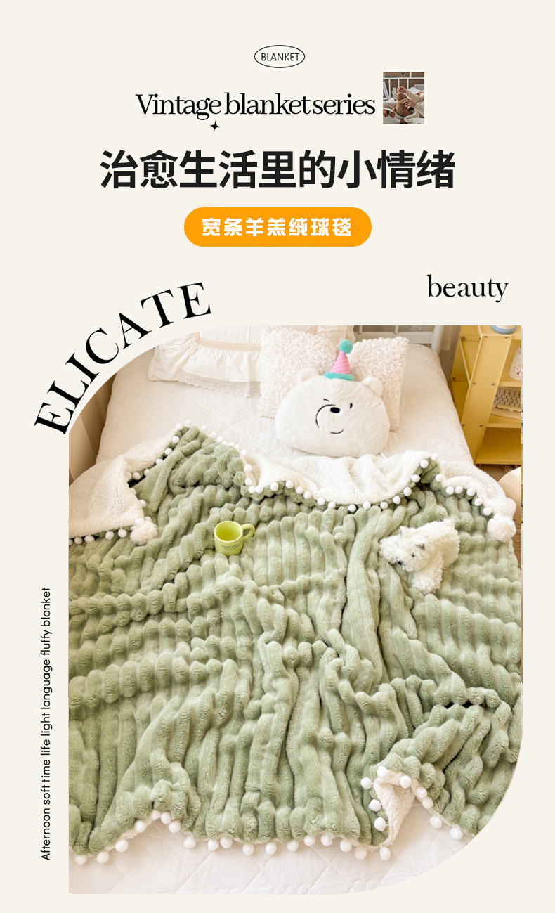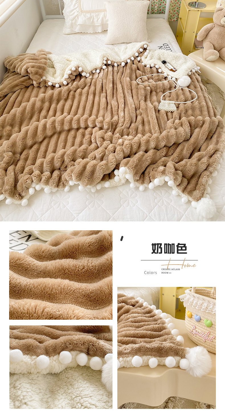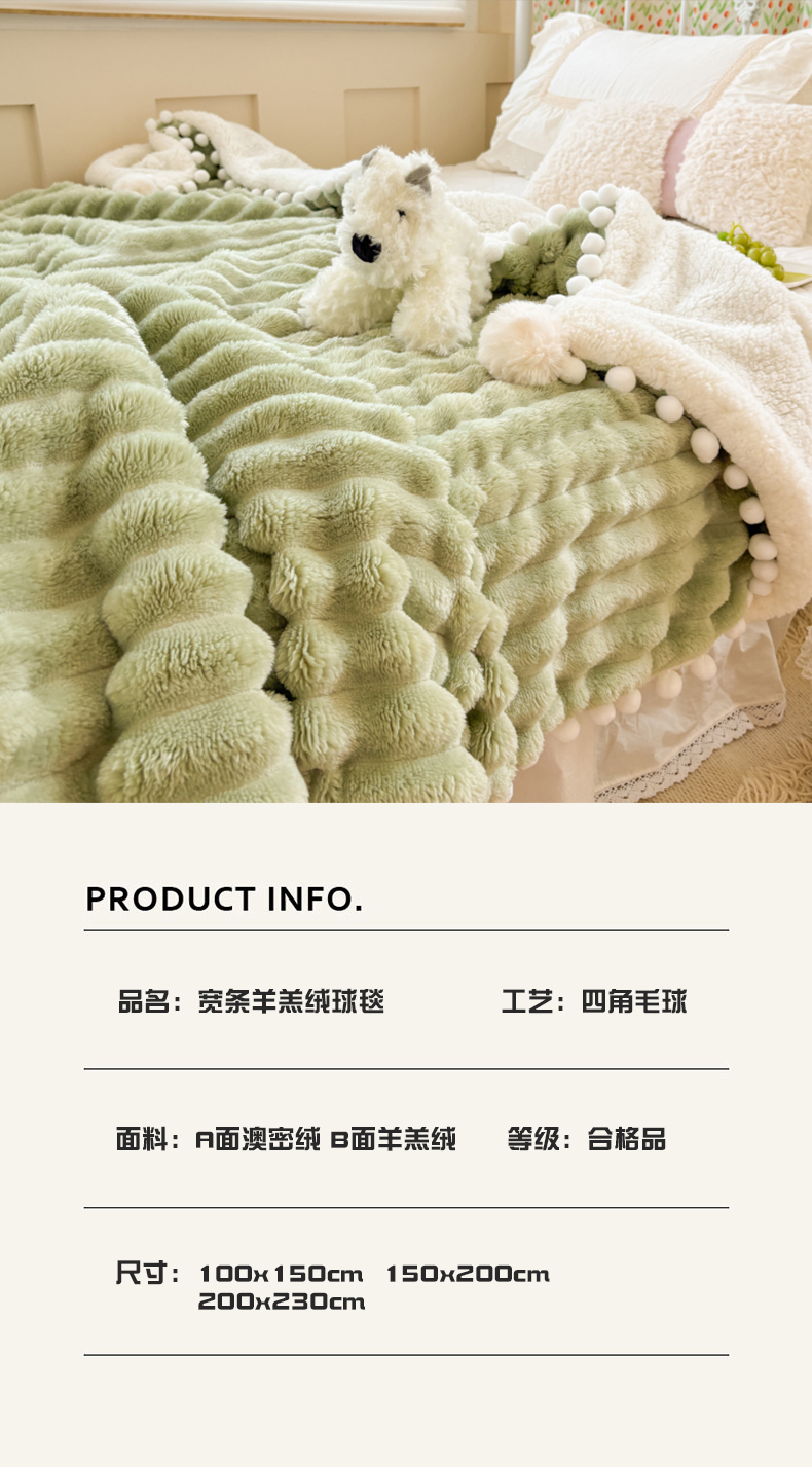 商品名称:(总)潮邦创意家居 2025新款宽条球毯大抽条配羊羔绒立体工艺绒毯毛毯盖毯