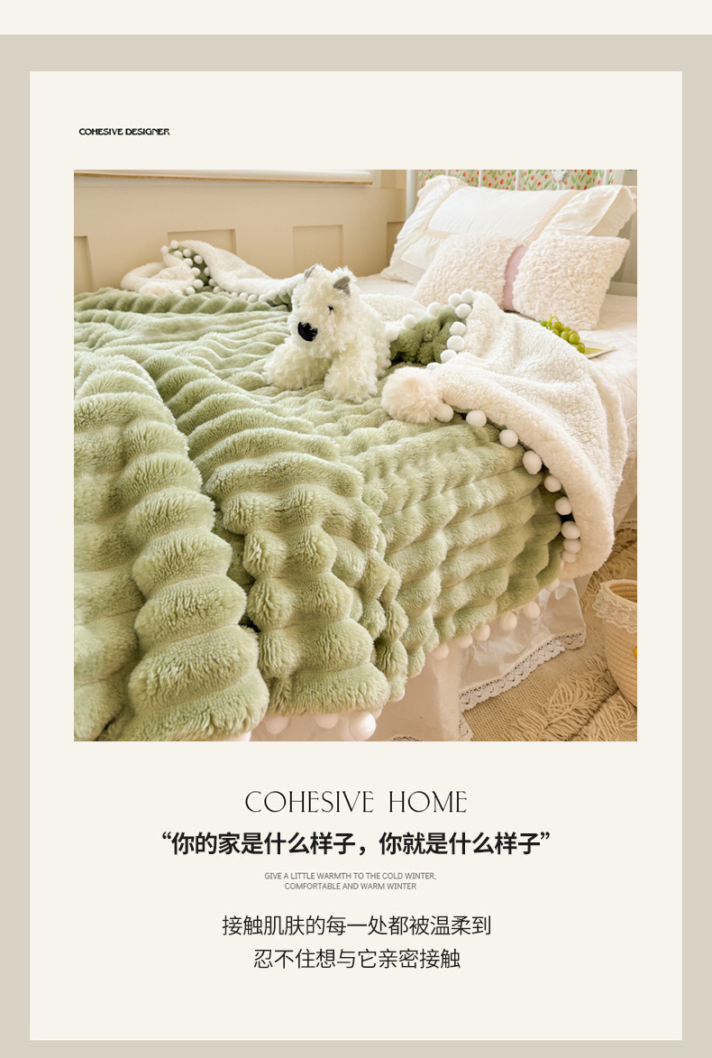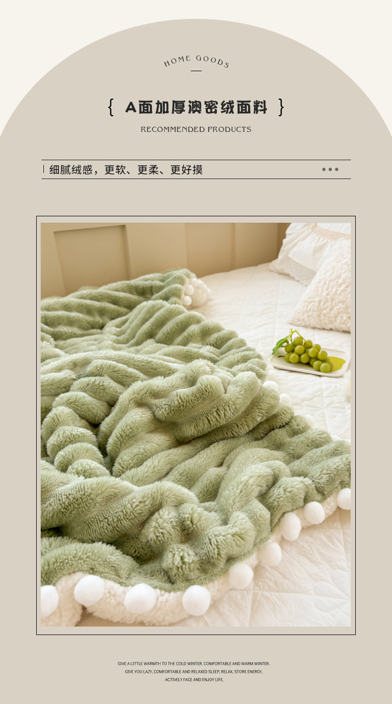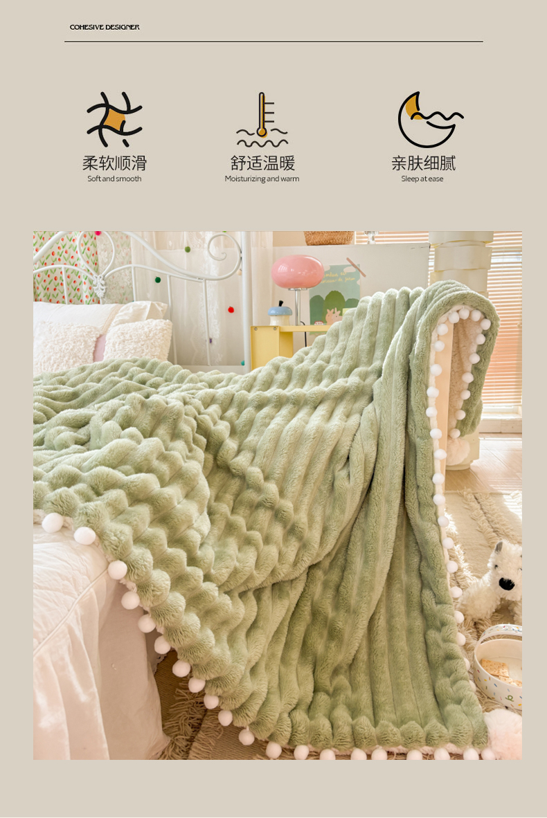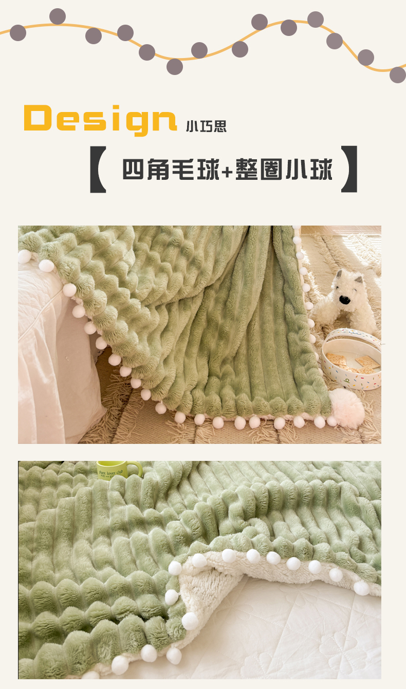 商品名称:(总)潮邦创意家居 2025新款宽条球毯大抽条配羊羔绒立体工艺绒毯毛毯盖毯