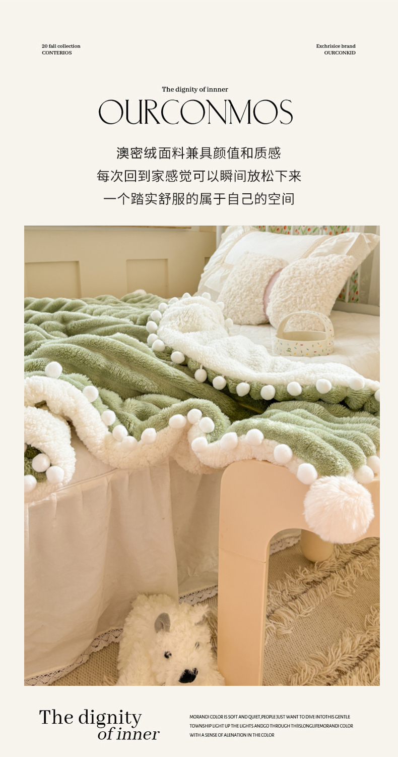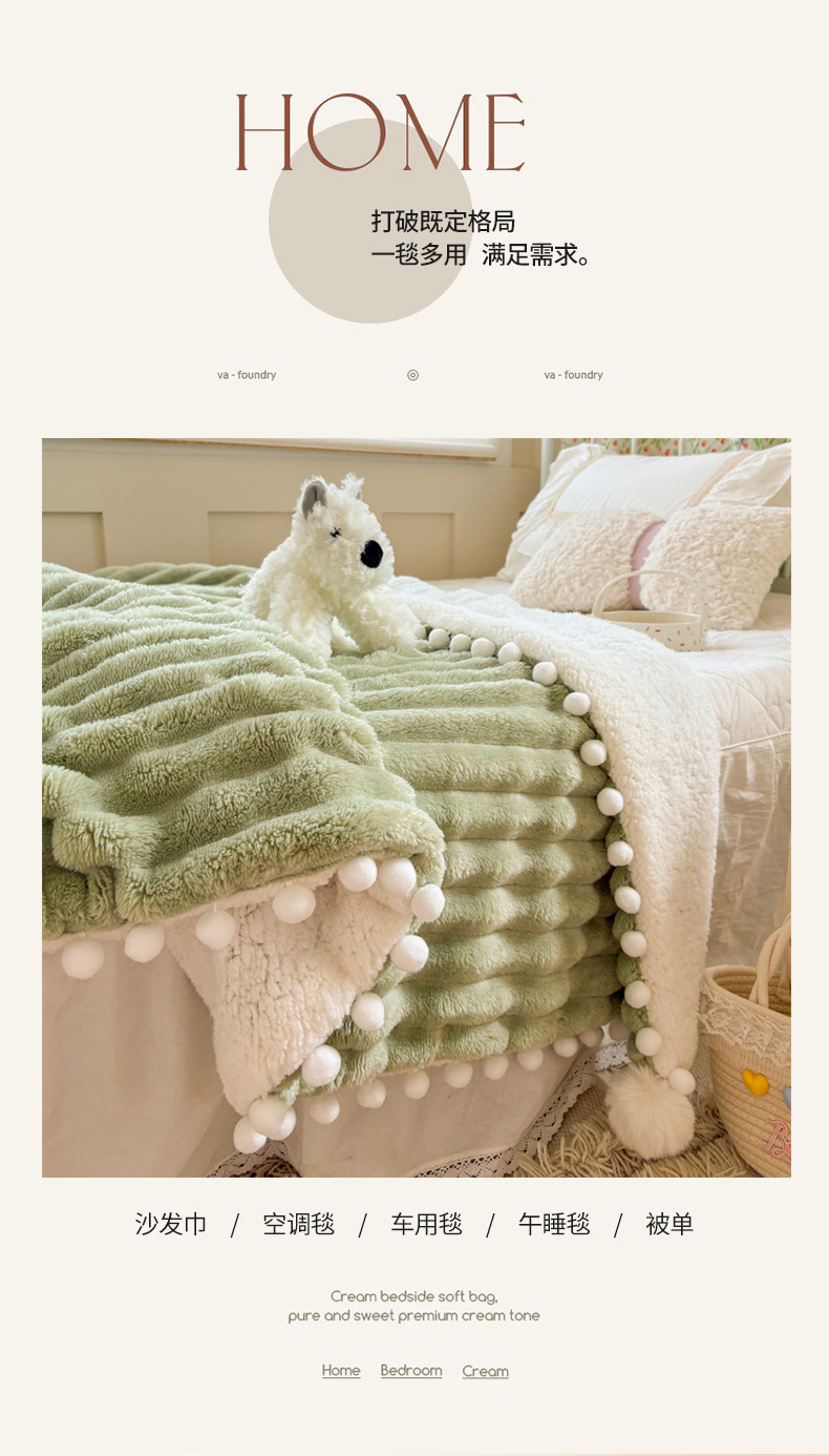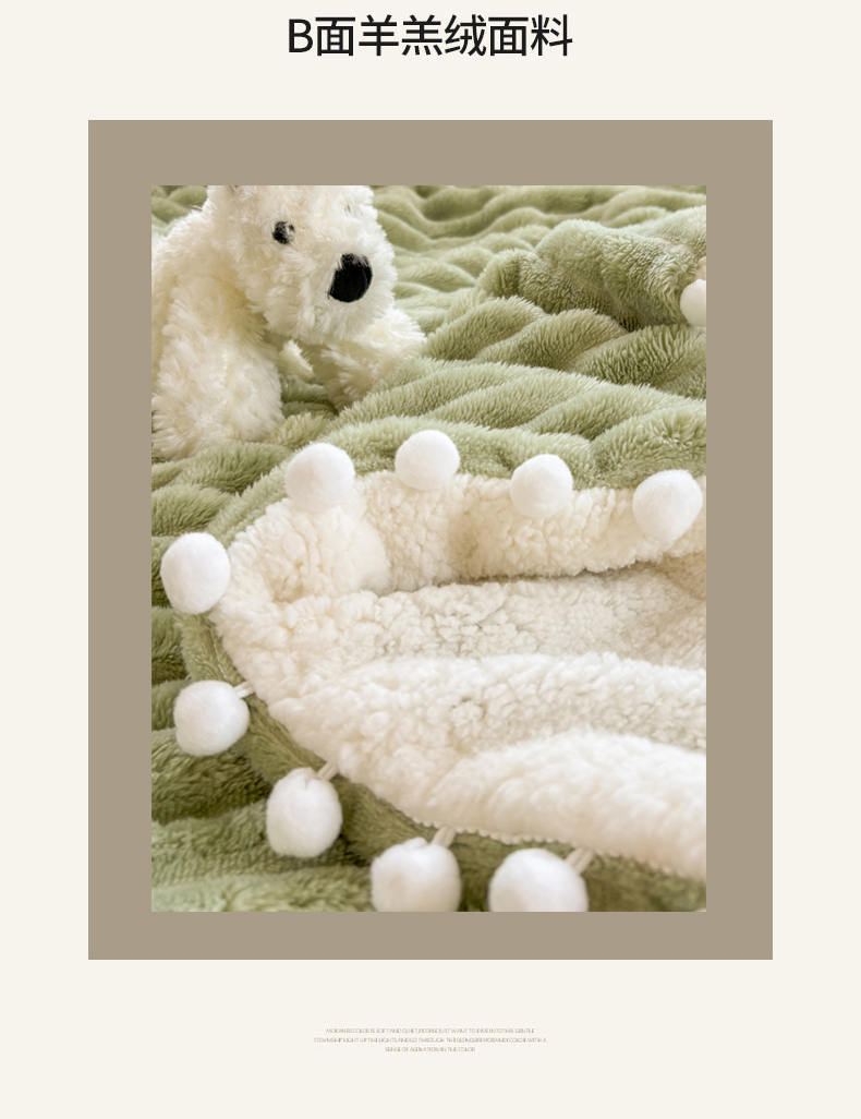 (总)潮邦创意家居 2025新款 奶芙绒流苏球毛毯,薄荷绿,焦糖咖,绵云白,浅蓝灰,深暮灰,甜莓粉