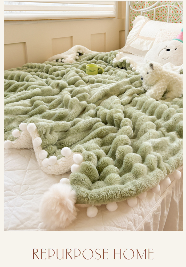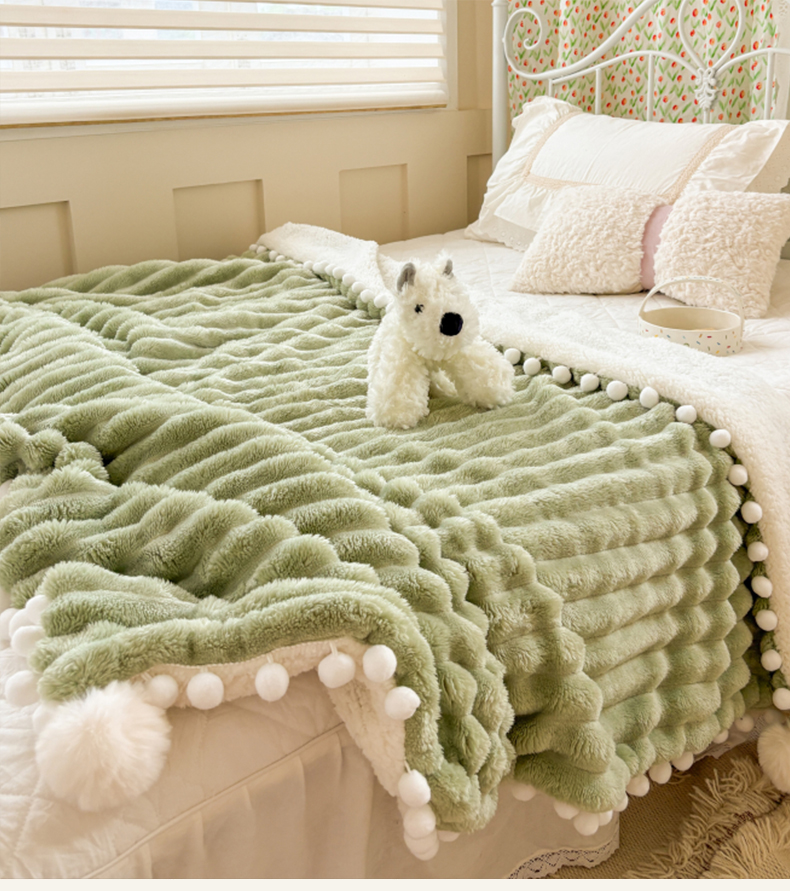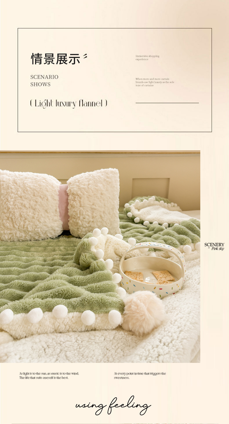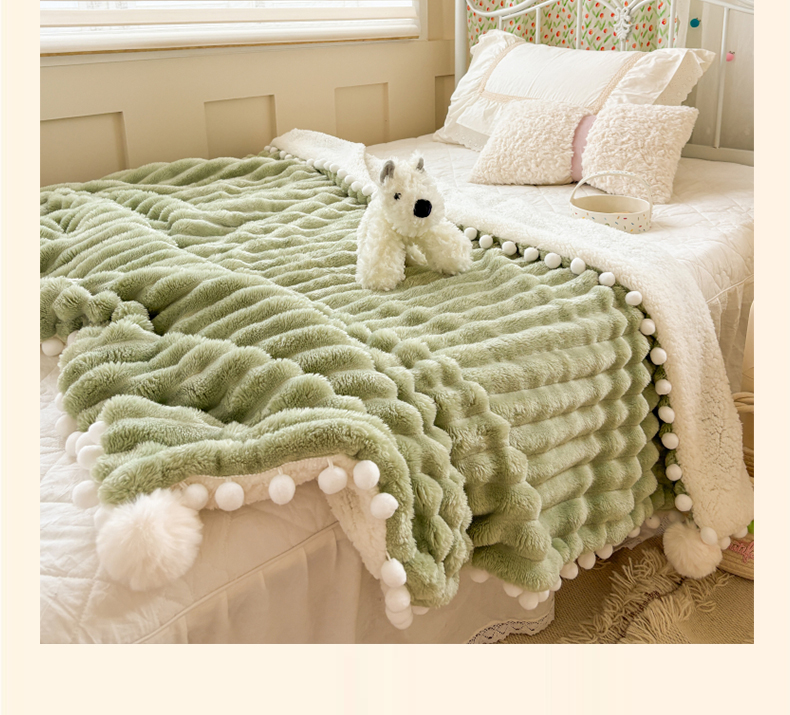 (总)潮邦创意家居 2025新款 奶芙绒流苏球毛毯,薄荷绿,焦糖咖,绵云白,浅蓝灰,深暮灰,甜莓粉