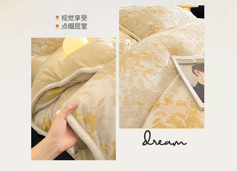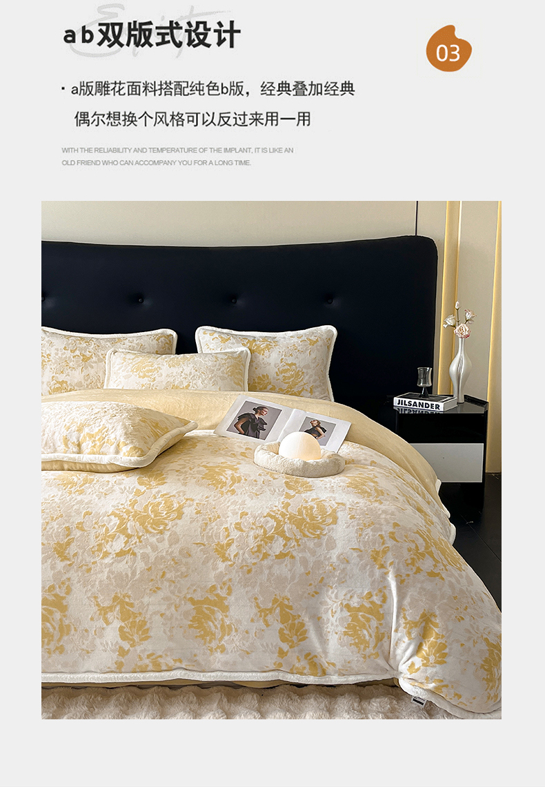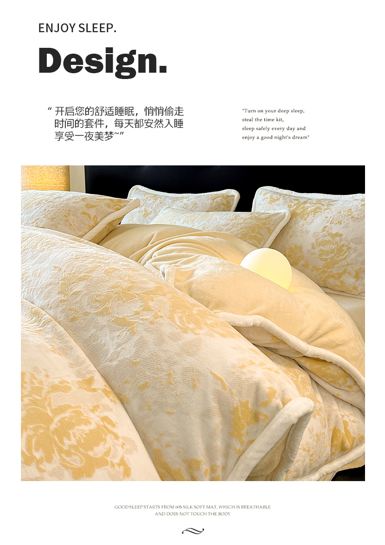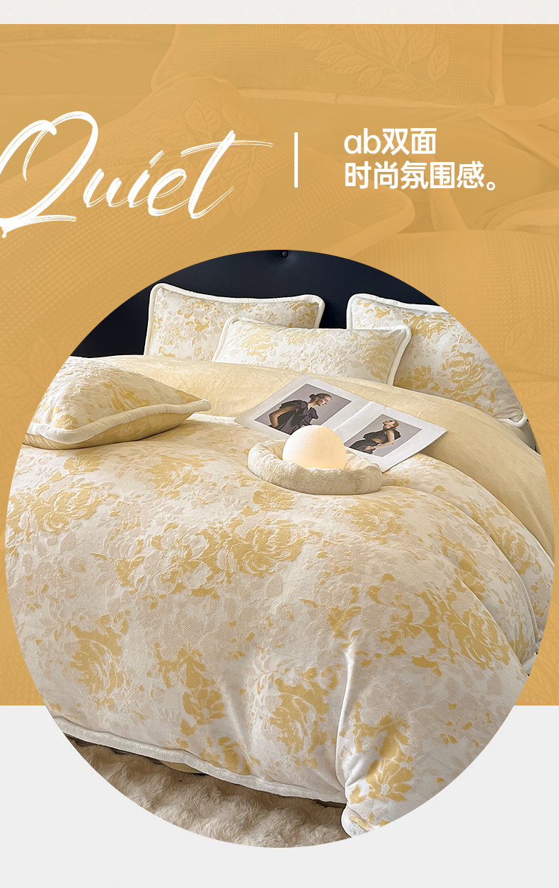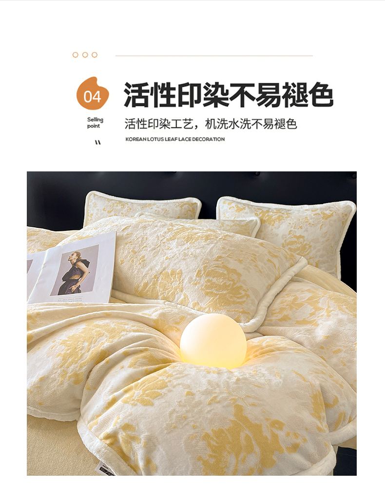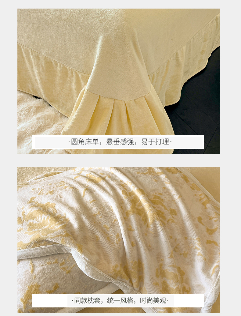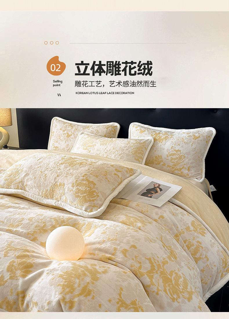 诺梵 2025新款8斤立体雕花牛奶绒四件套_控价标准高于139,加大高于149 洛丽塔-黄