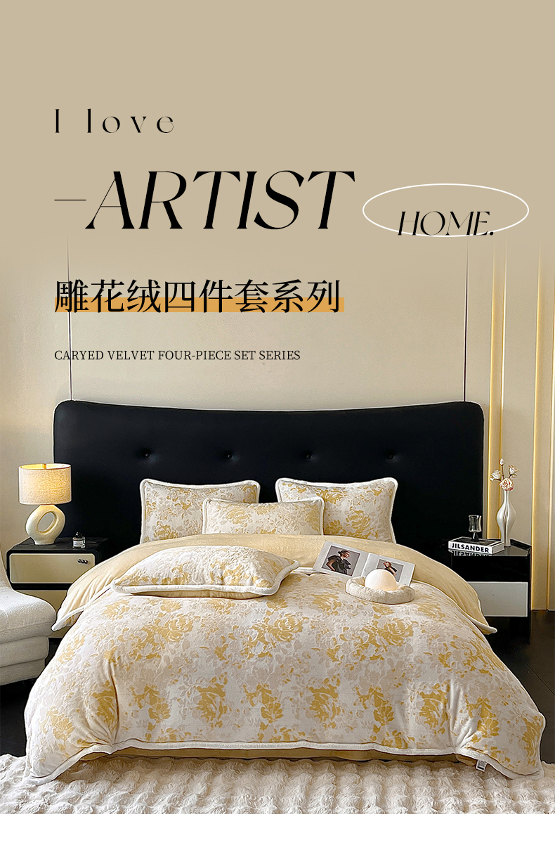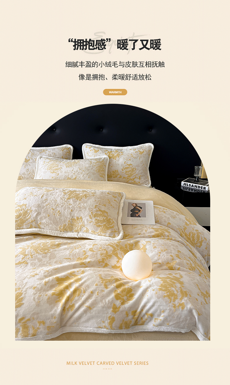 商品名称:诺梵 2025新款8斤立体雕花牛奶绒四件套_控价标准高于139,加大高于149 洛丽塔-黄
