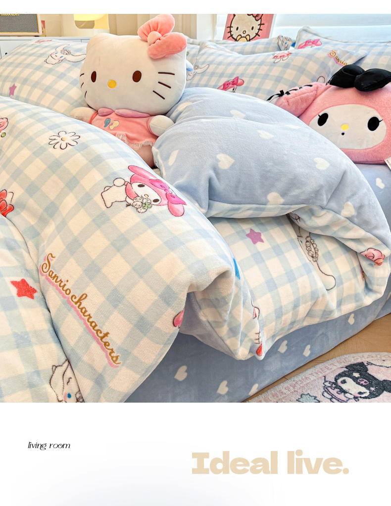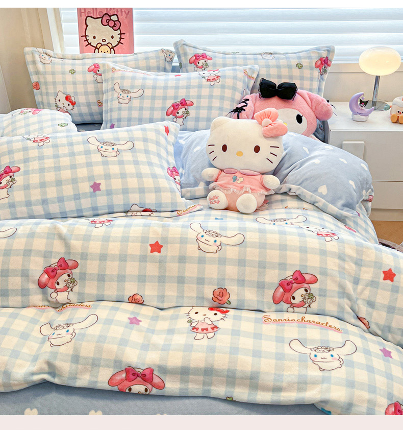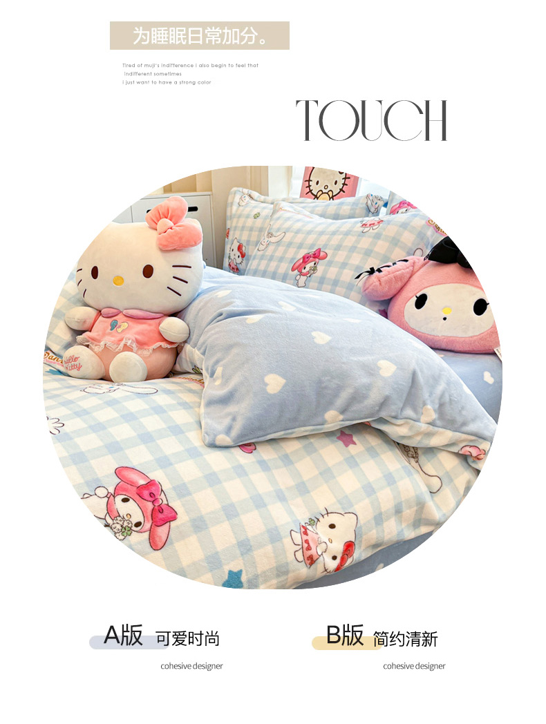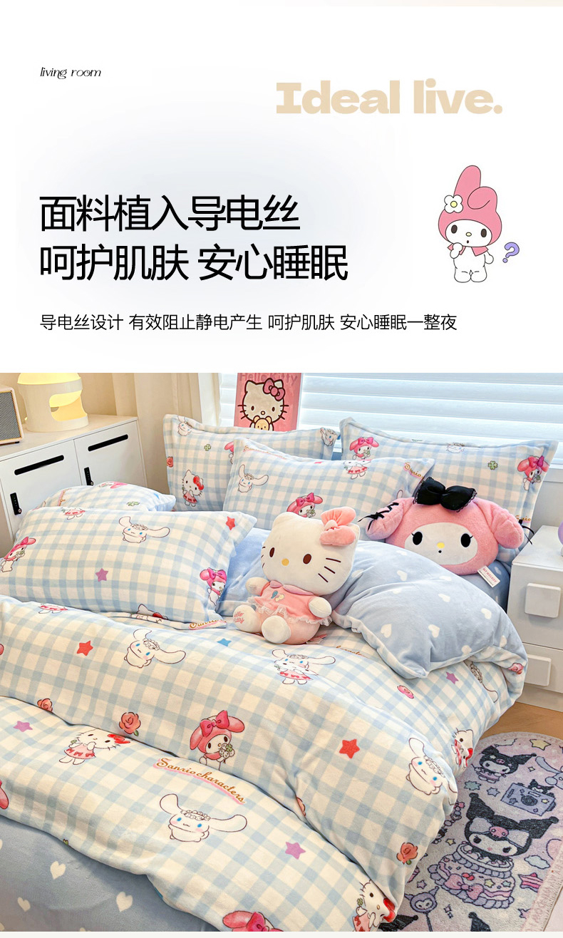 当前位置: 91家纺网 > 商品网购 > 床品套件 > 四件套 > 牛奶绒四件套 > 暮思家居 2025新款三丽鸥正版授权高克重200克加厚保暖卡通牛奶绒四件套 牛奶绒-三丽鸥大家族