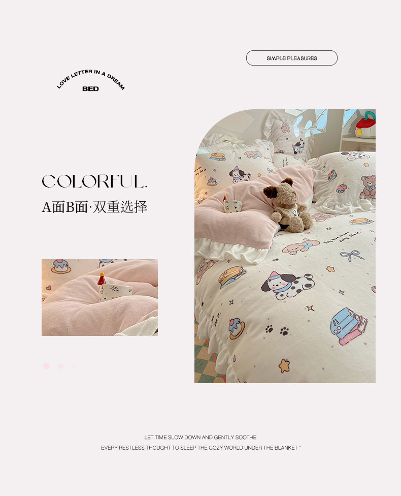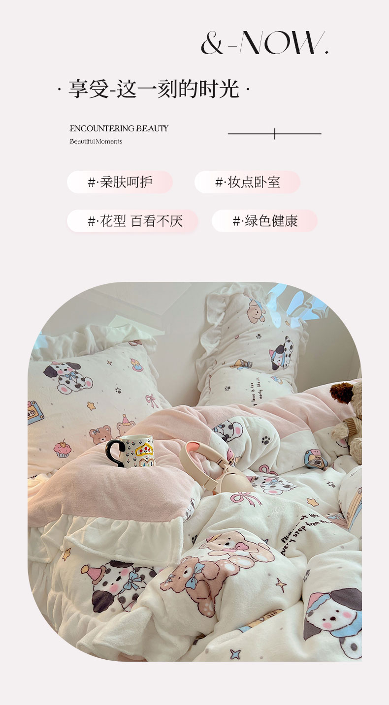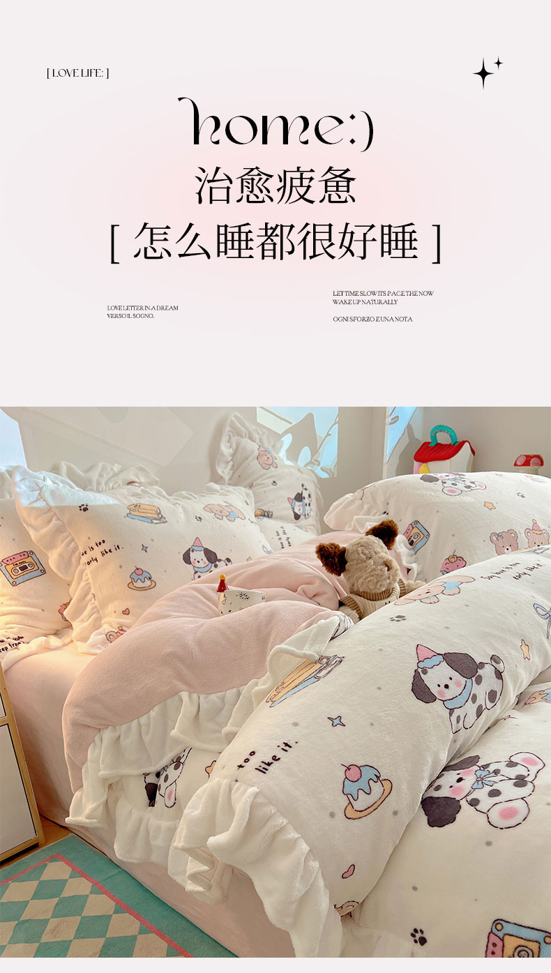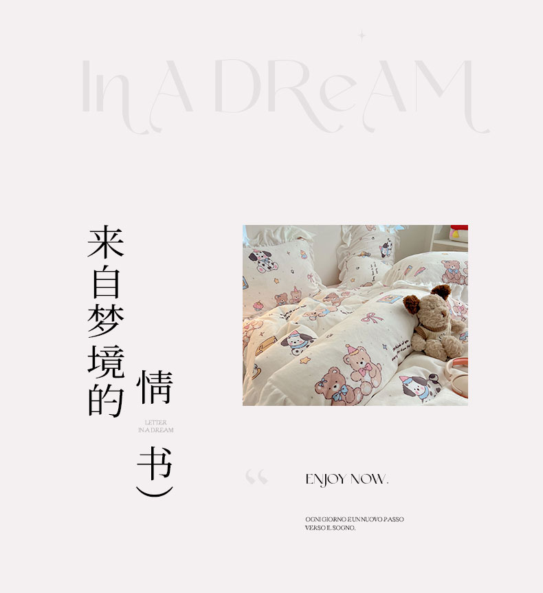 当前位置: 91家纺网 > 商品网购 > 床品套件 > 四件套 > 牛奶绒四件套 > 六巷胡同 2025新款韩式博主风花边款INS卡通A类牛奶绒四件套(第一系) 花边磁带熊仔米