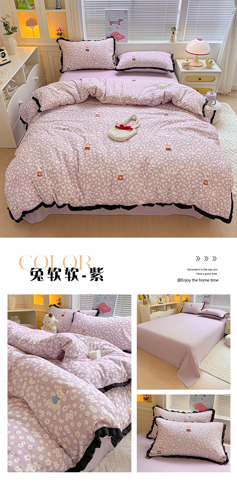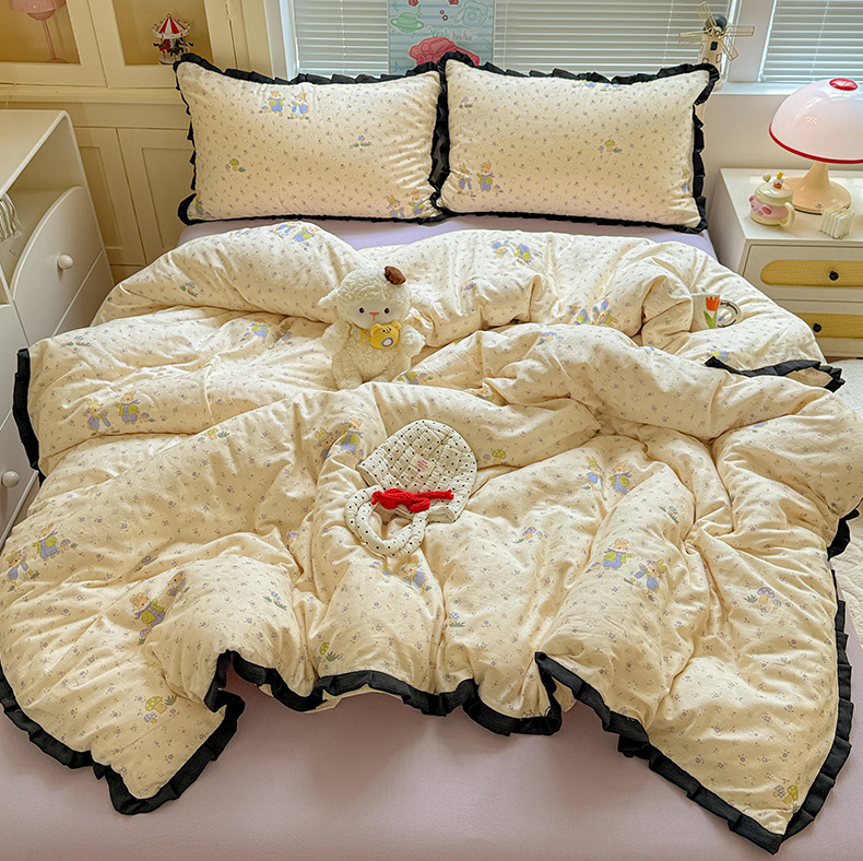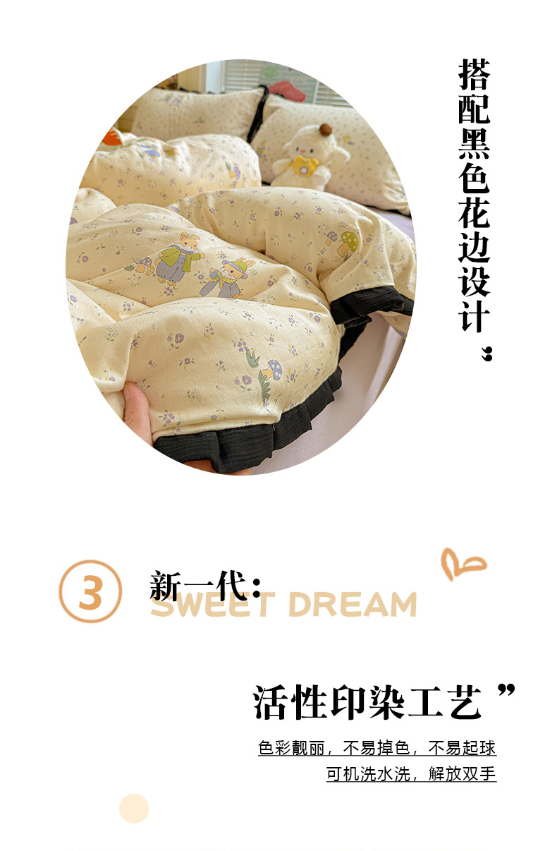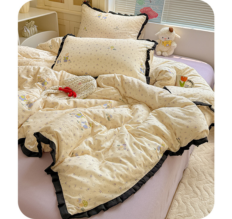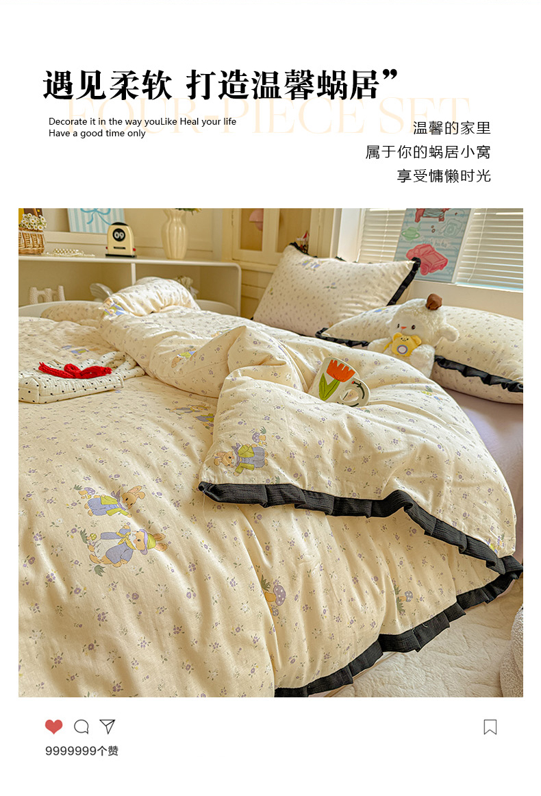当前位置: 91家纺网 > 商品网购 > 床品套件 > 四件套 > 其它四件套 > 喜颜 2025新款超柔水洗双层纱皱皱纱花边四件套 萌兔花园-米