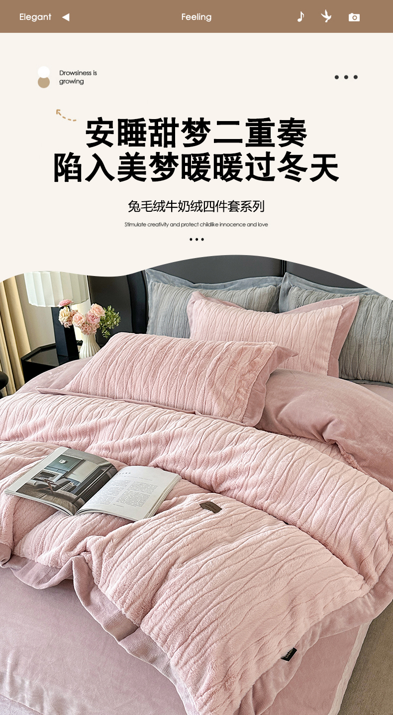 (总)太阳树 2025新款高克重兔毛绒牛奶绒四件套