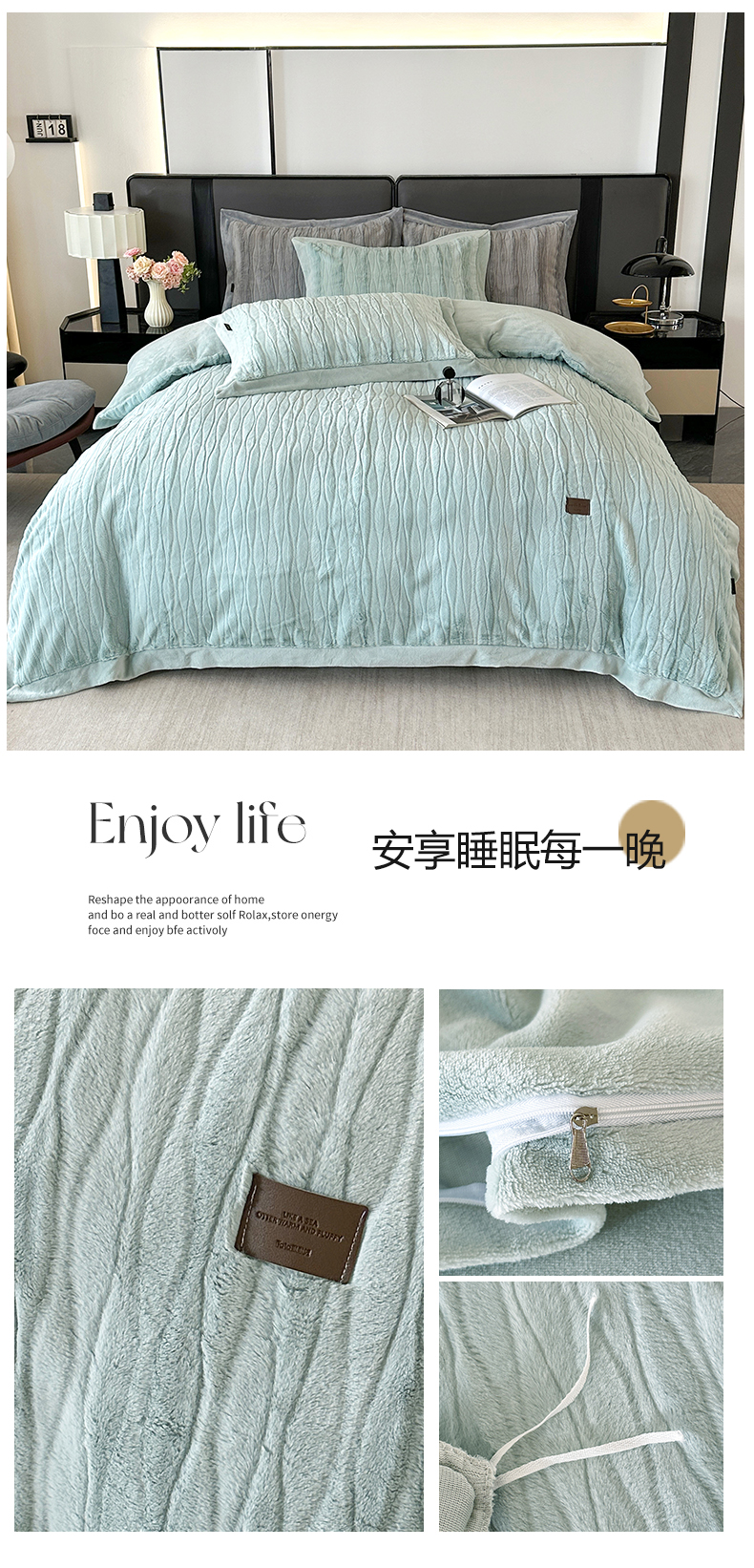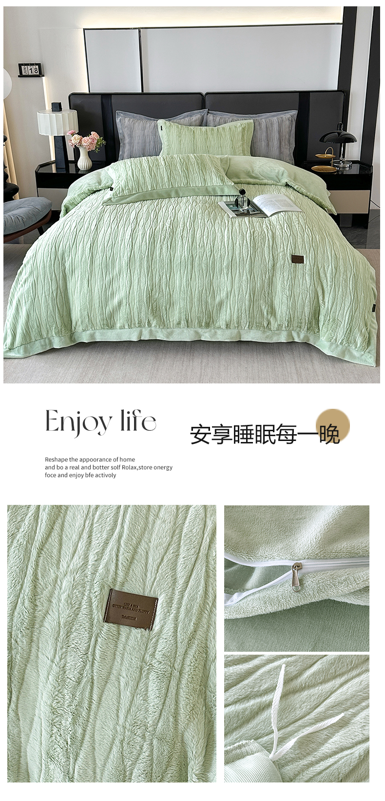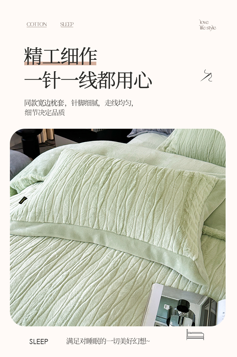(总)太阳树 2025新款高克重兔毛绒牛奶绒四件套,海岸香颂—茶绿,海岸香颂—米黄,海岸香颂—糖果粉,海岸香颂—清澈灰,海岸香颂—奶咖,海岸香颂—青草绿