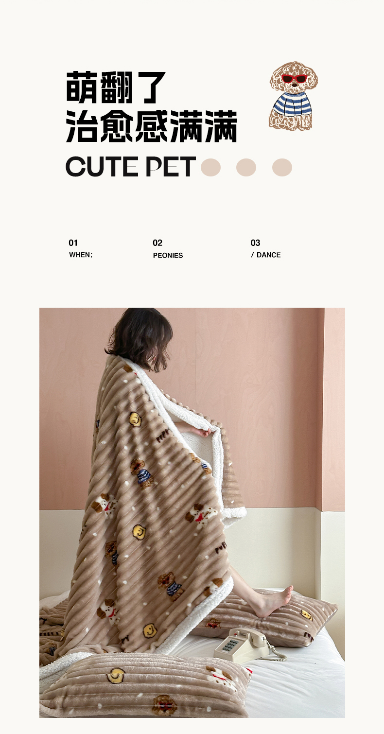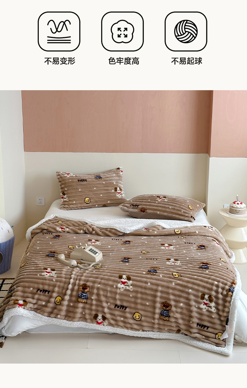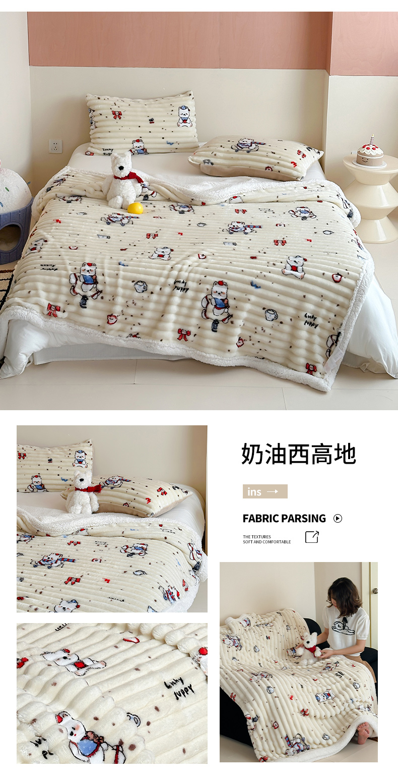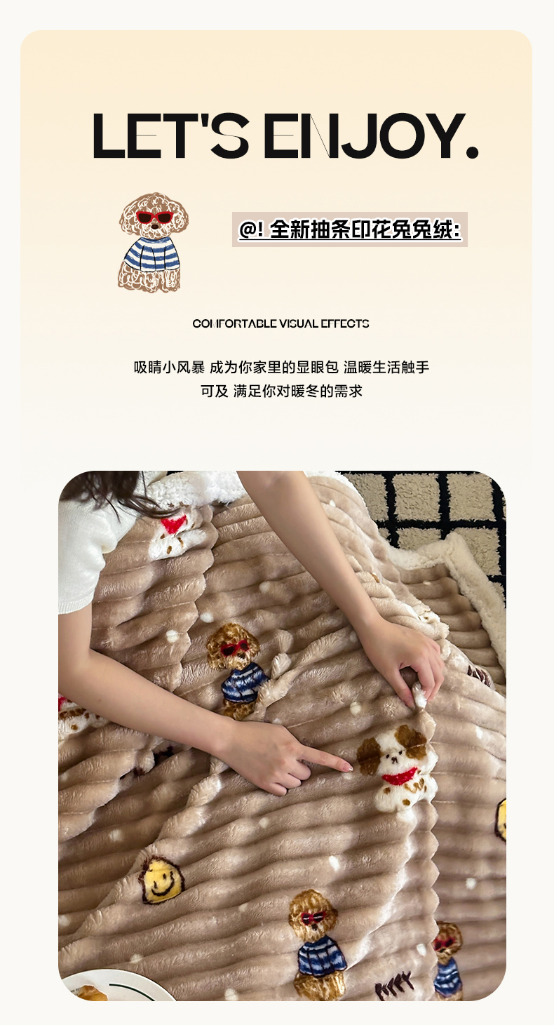 RYB红黄兰 2025新款设计师原创抽条280g兔兔绒羊羔绒加厚毛毯 波点黑猫