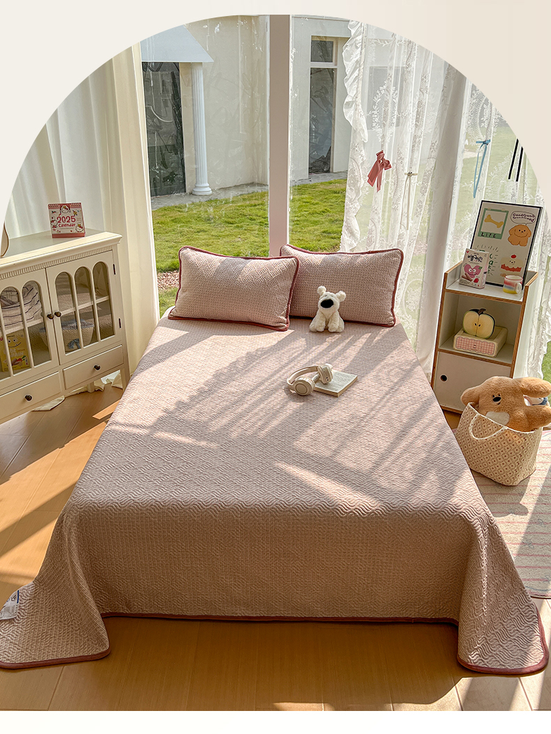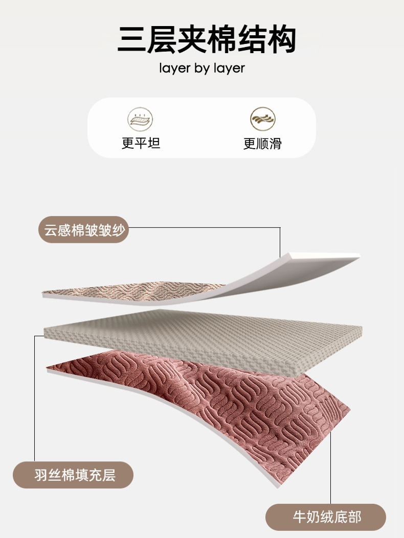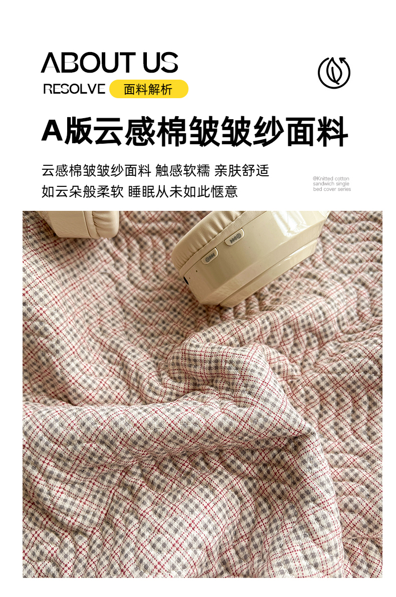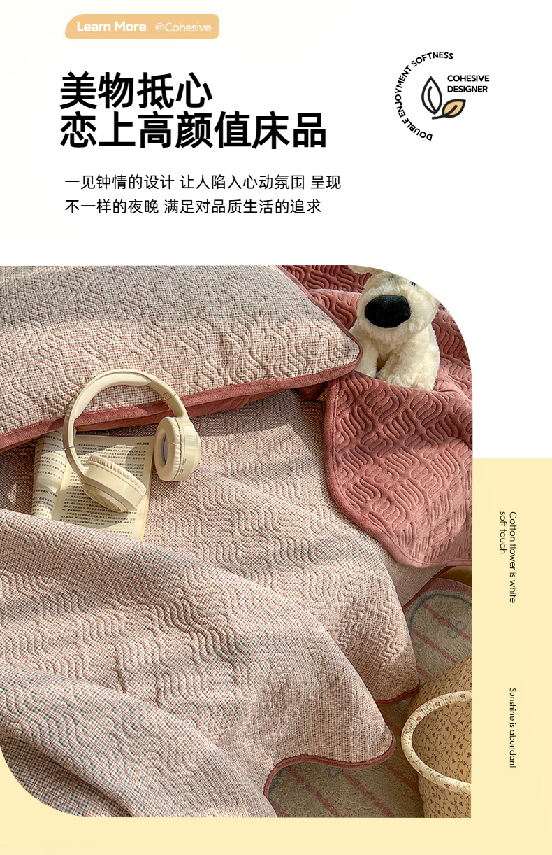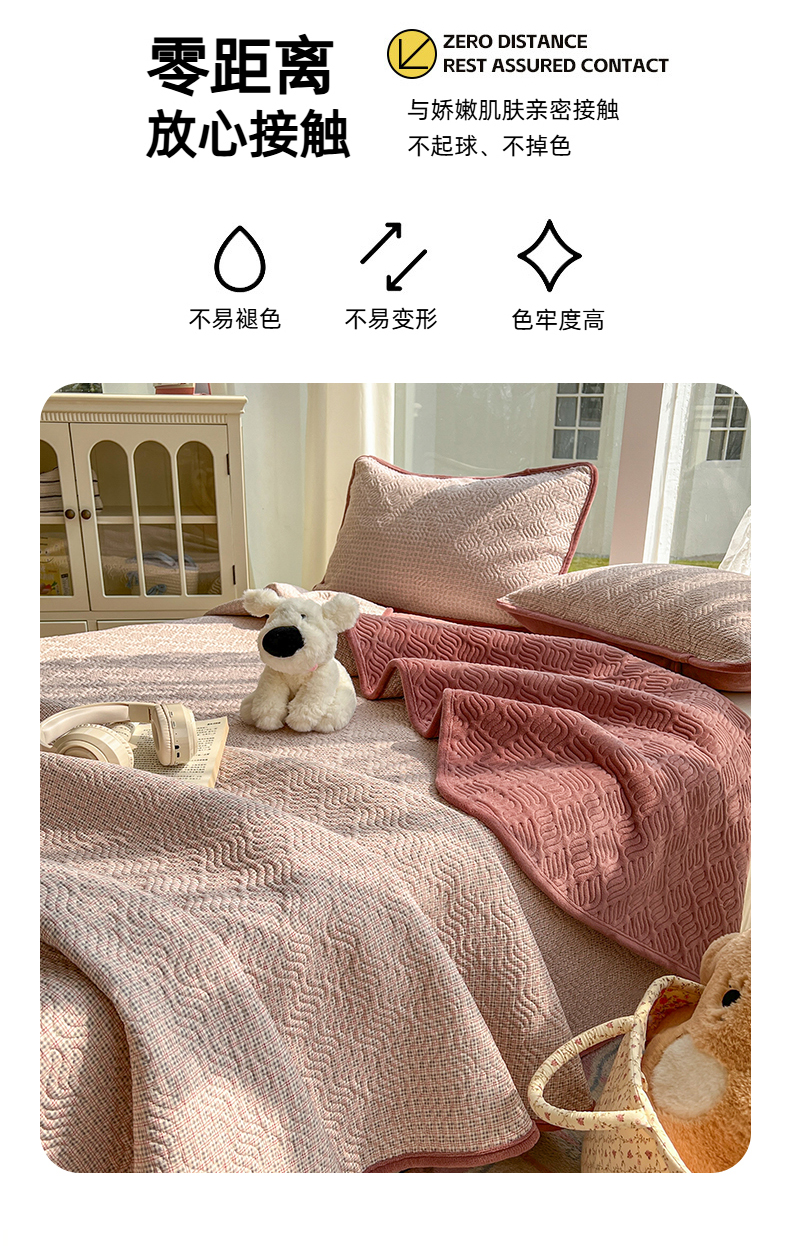 • 91家纺网 家纺一手货源 找家纺 春光里 2025新款A版云感棉皱皱纱B版牛奶绒夹棉床盖三件套 梦莎
