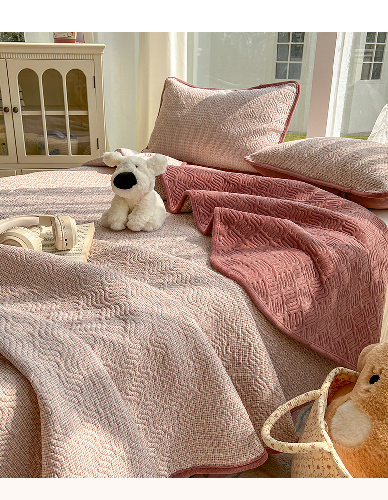 春光里 2025新款A版云感棉皱皱纱B版牛奶绒夹棉床盖三件套 梦莎