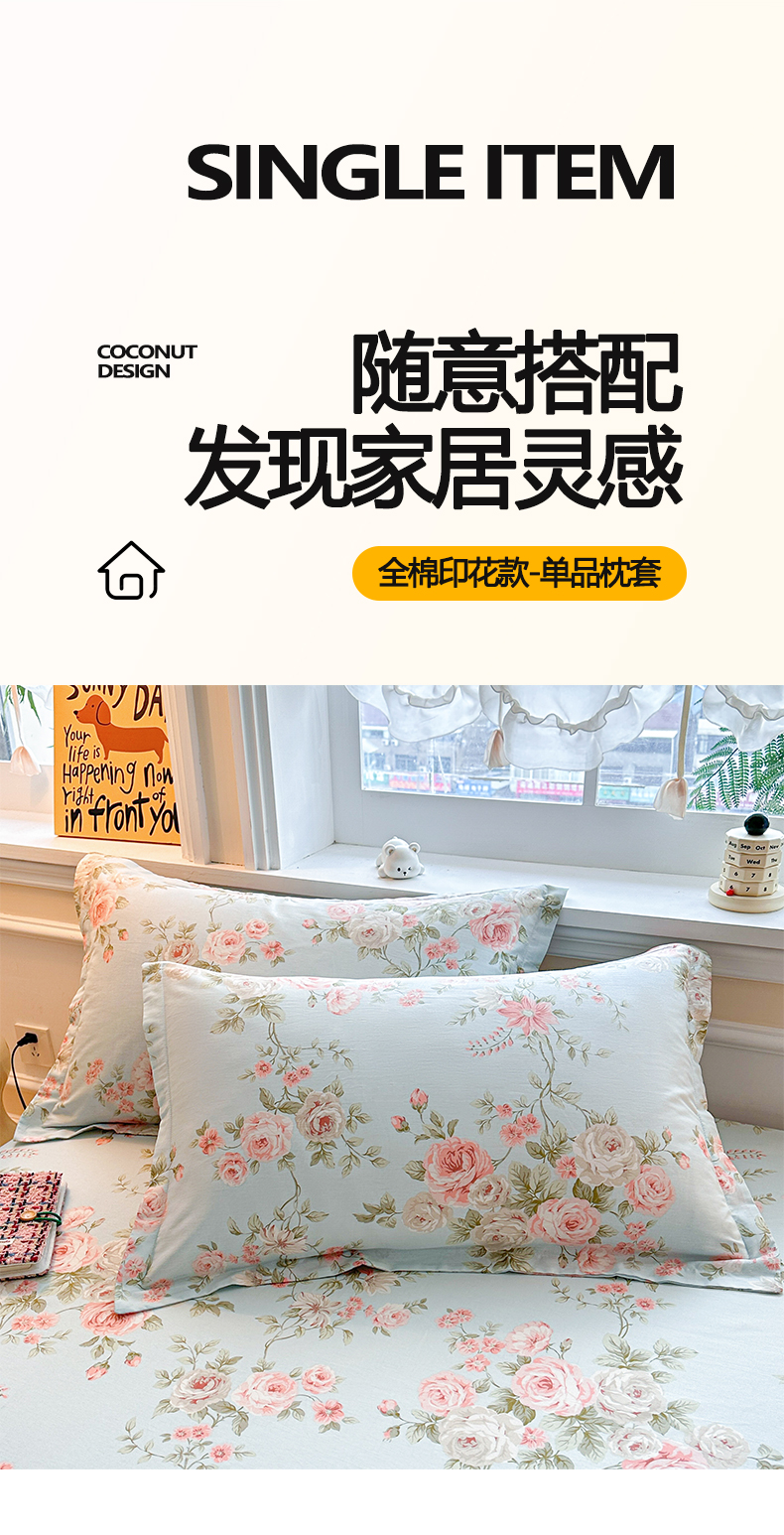 涵宸家纺 2026新款亲肤舒适全棉印花单枕套-68系列 总 枕套-晨汐
