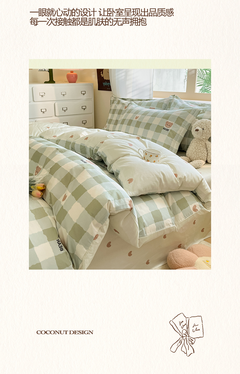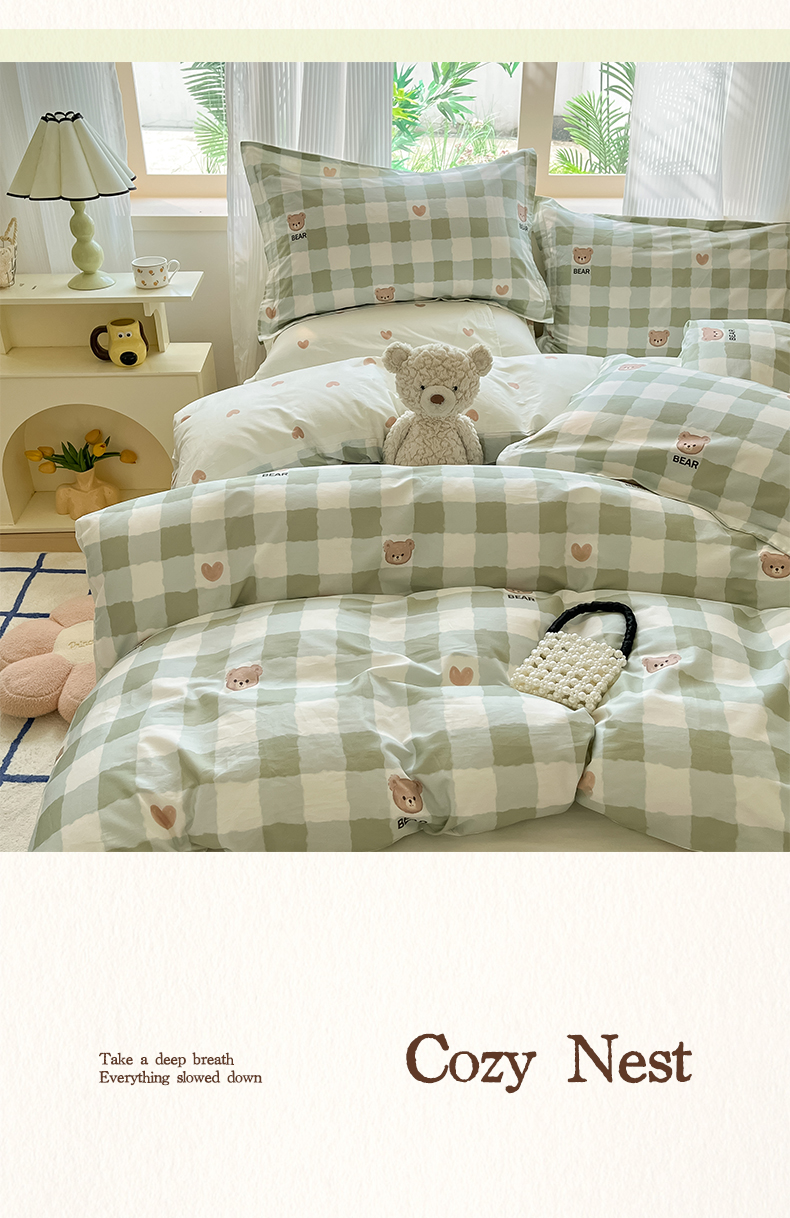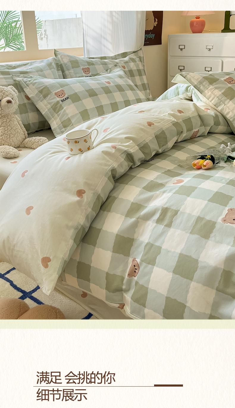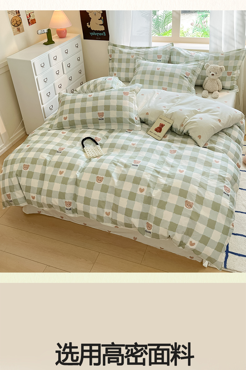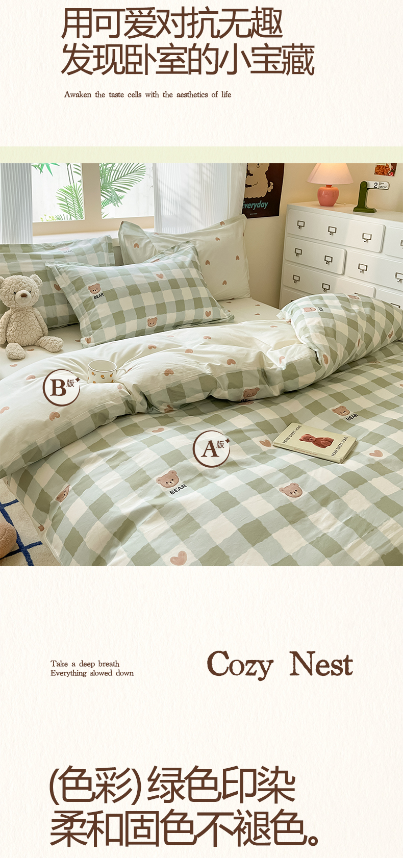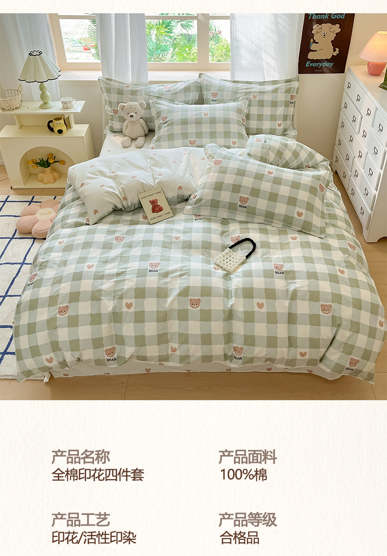 商品名称:涵宸家纺 2026新款亲肤舒适全棉印花单被套-68系列 总 A格子小熊