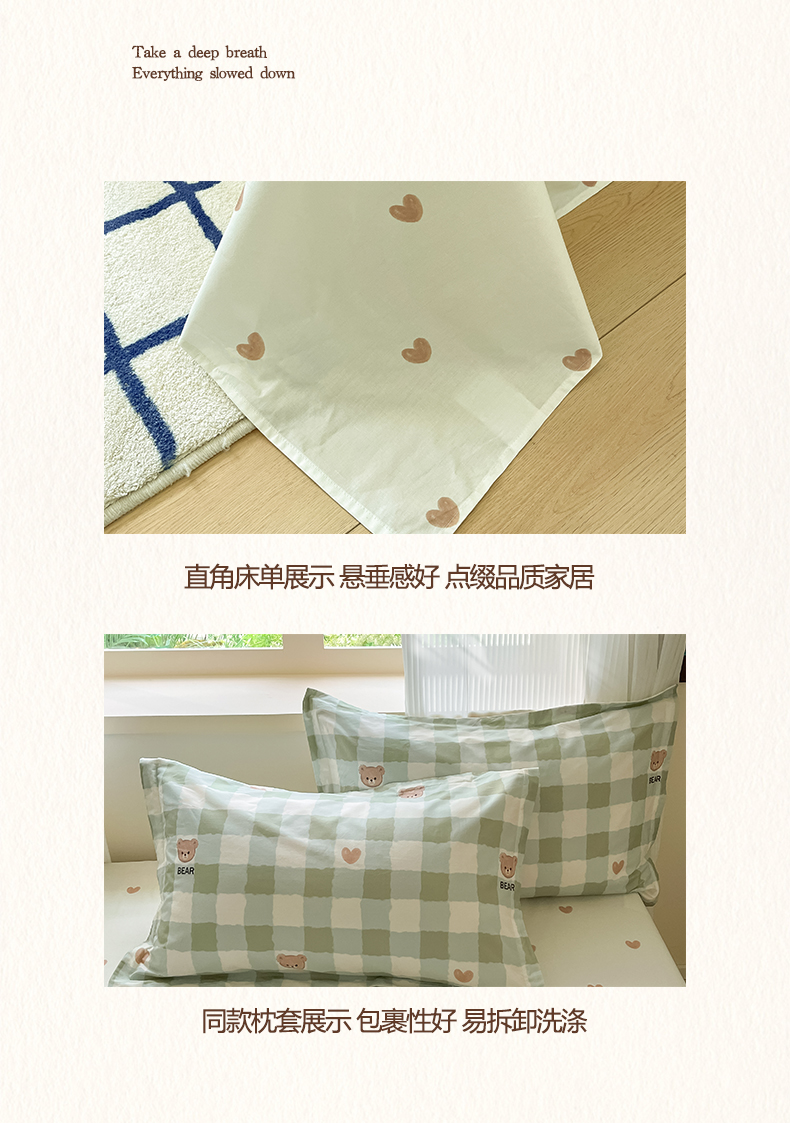 涵宸家纺 2026新款亲肤舒适全棉印花单被套-68系列 总 A格子小熊