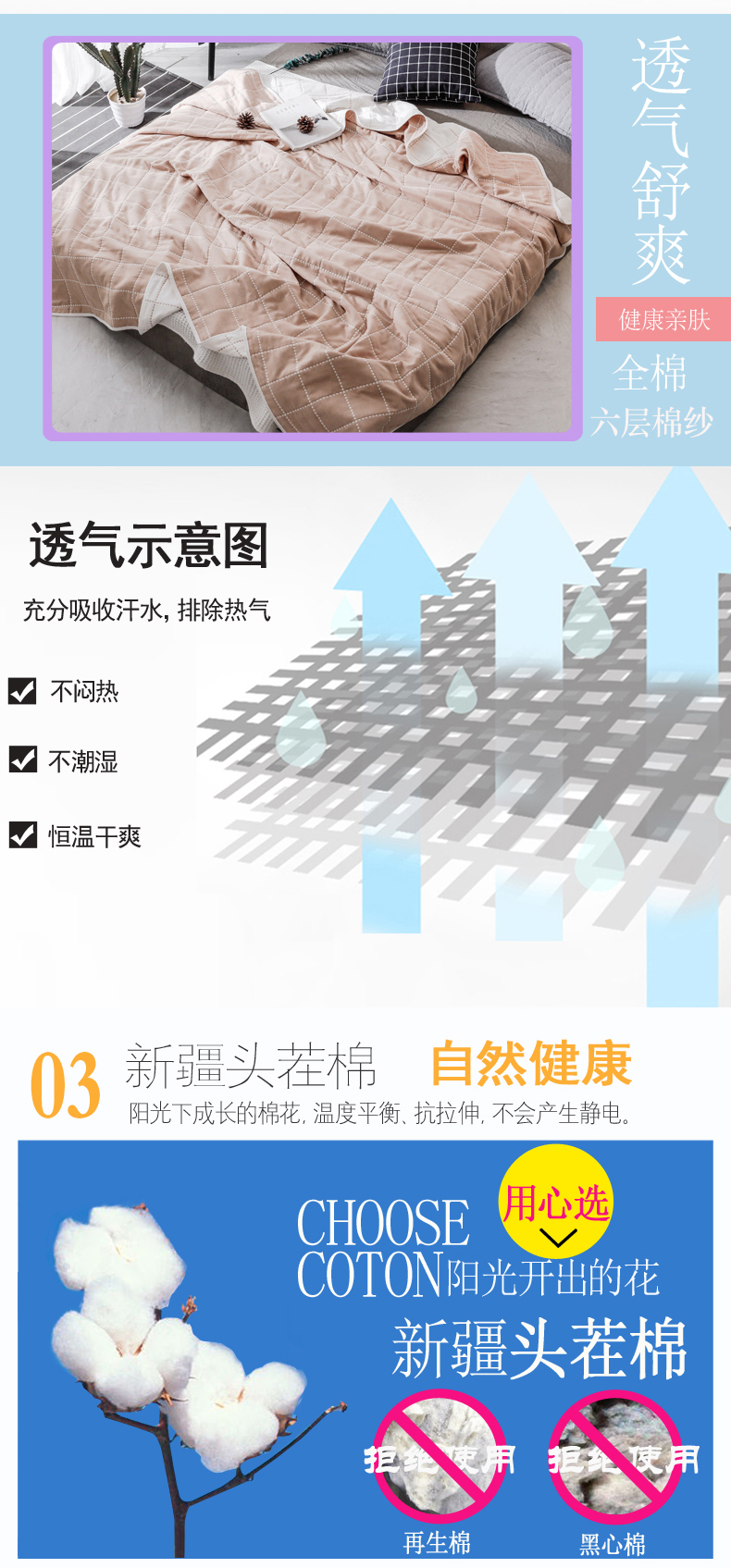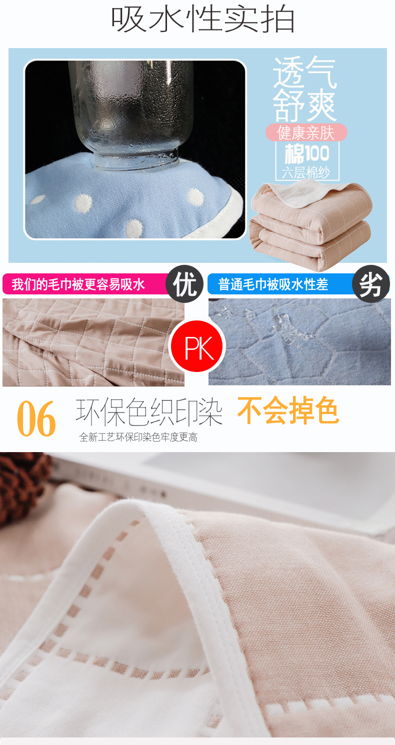 朴尔家纺-毛巾被 2026新款经典六层纱布全棉毛巾被系列-朴尔经典款常年备货 时尚虚线-豆沙