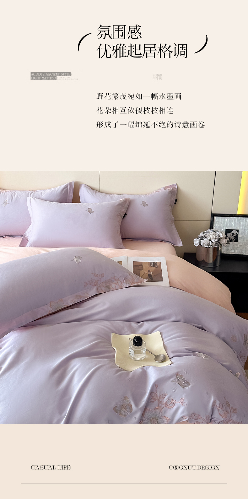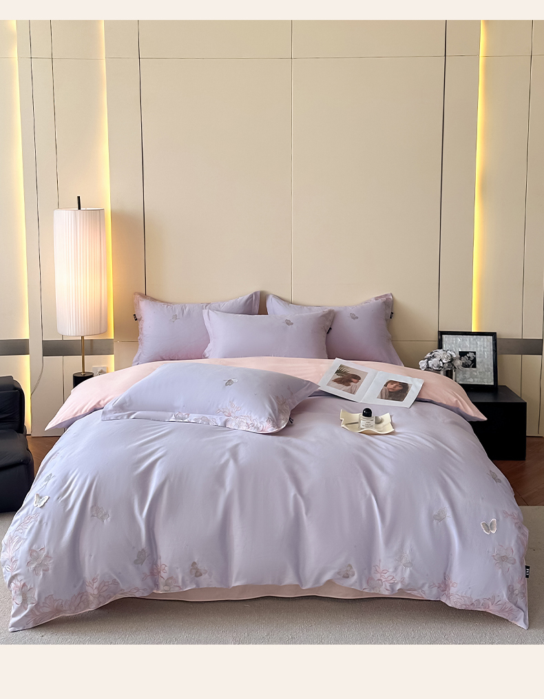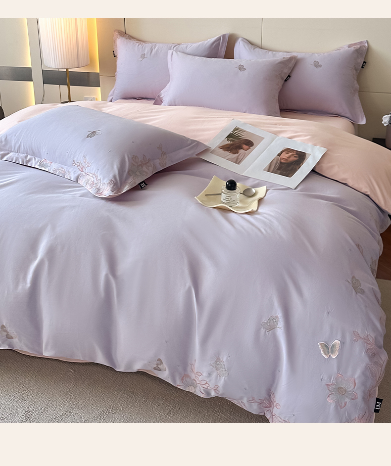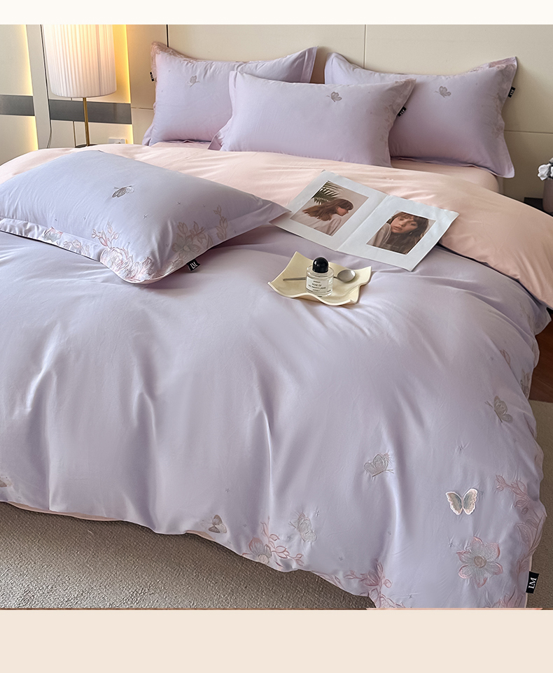 (总)乐美家纺 2026新款春夏新品全棉刺绣悦璟系列四件套,悦璟(丁香紫),悦璟(微微粉)