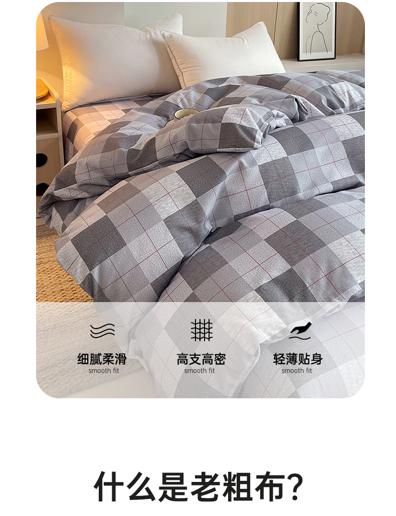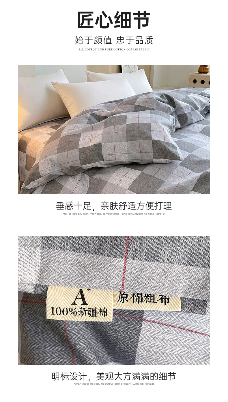 商品名称:春皖家纺 2026高端直播热卖非遗A类全棉老粗布加厚床单款三件套-普通款单被套 田格