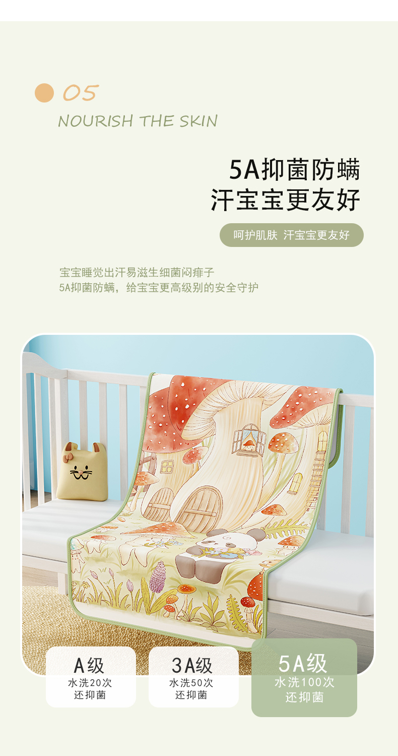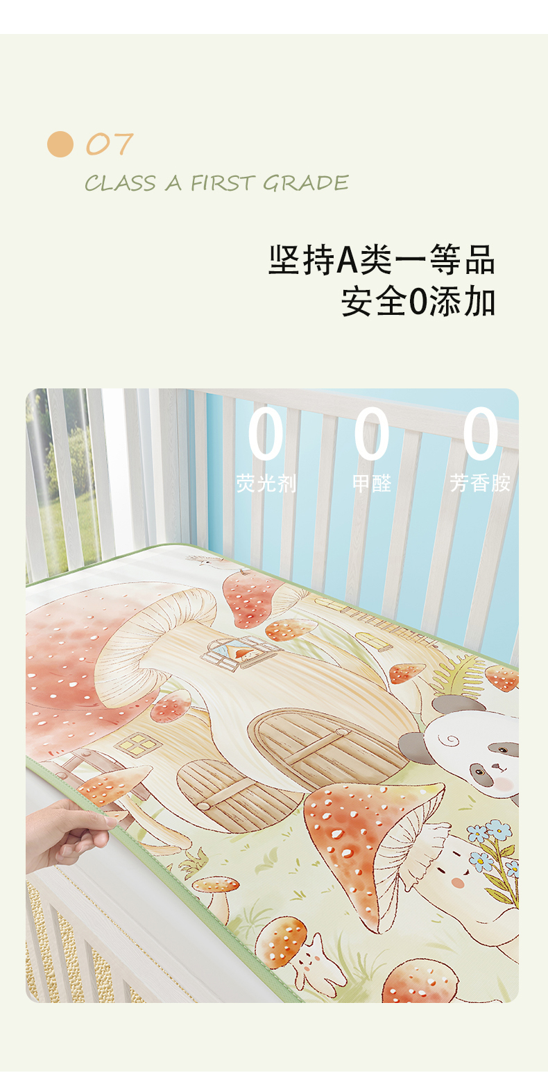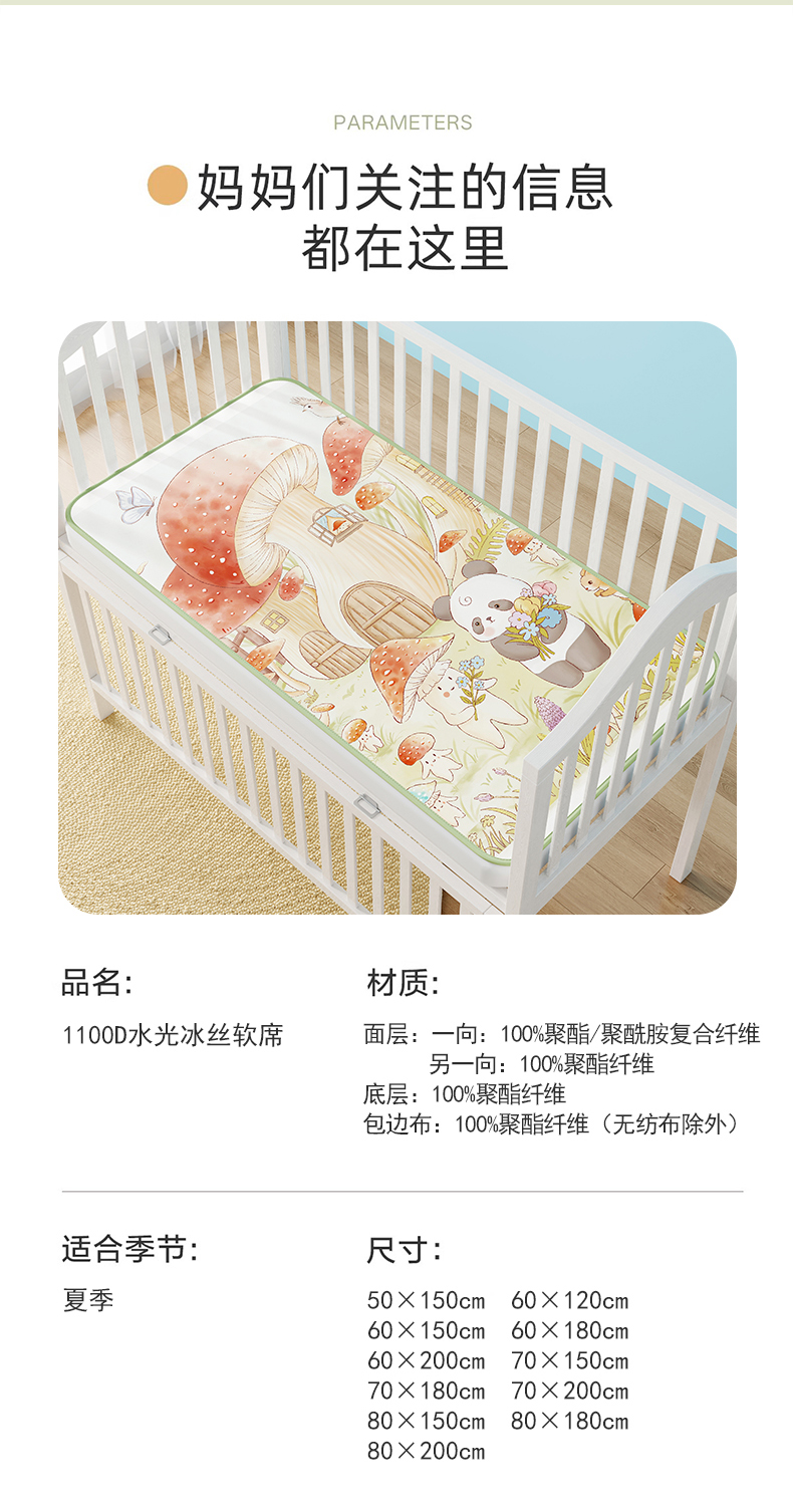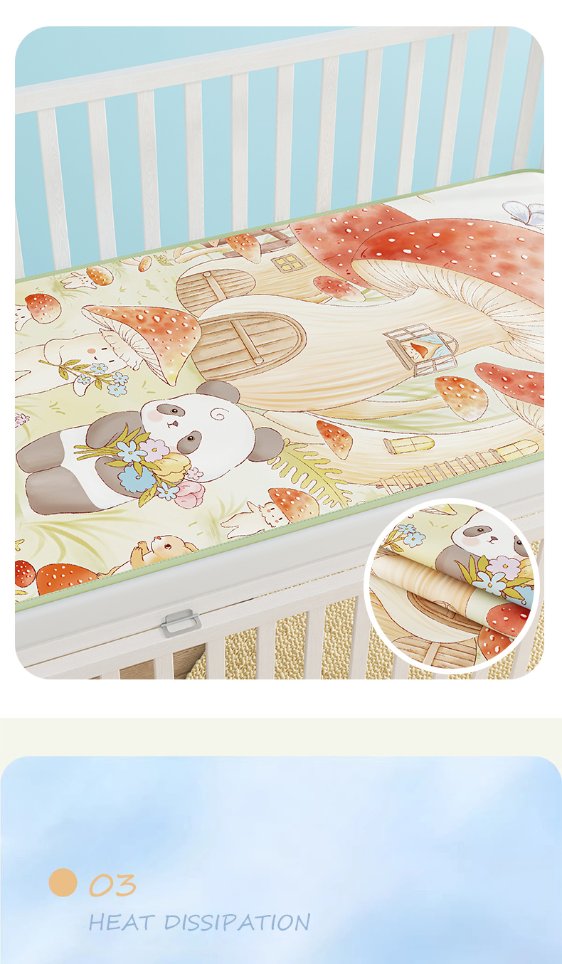当前位置: 91家纺网 > 商品网购 > 婴童用品 > 婴童凉席 > 家品罗兰 2026春夏新款数码印花婴儿床冰丝席-水光冰丝系列 蘑菇城堡