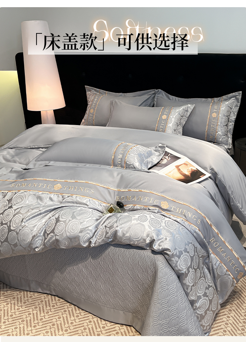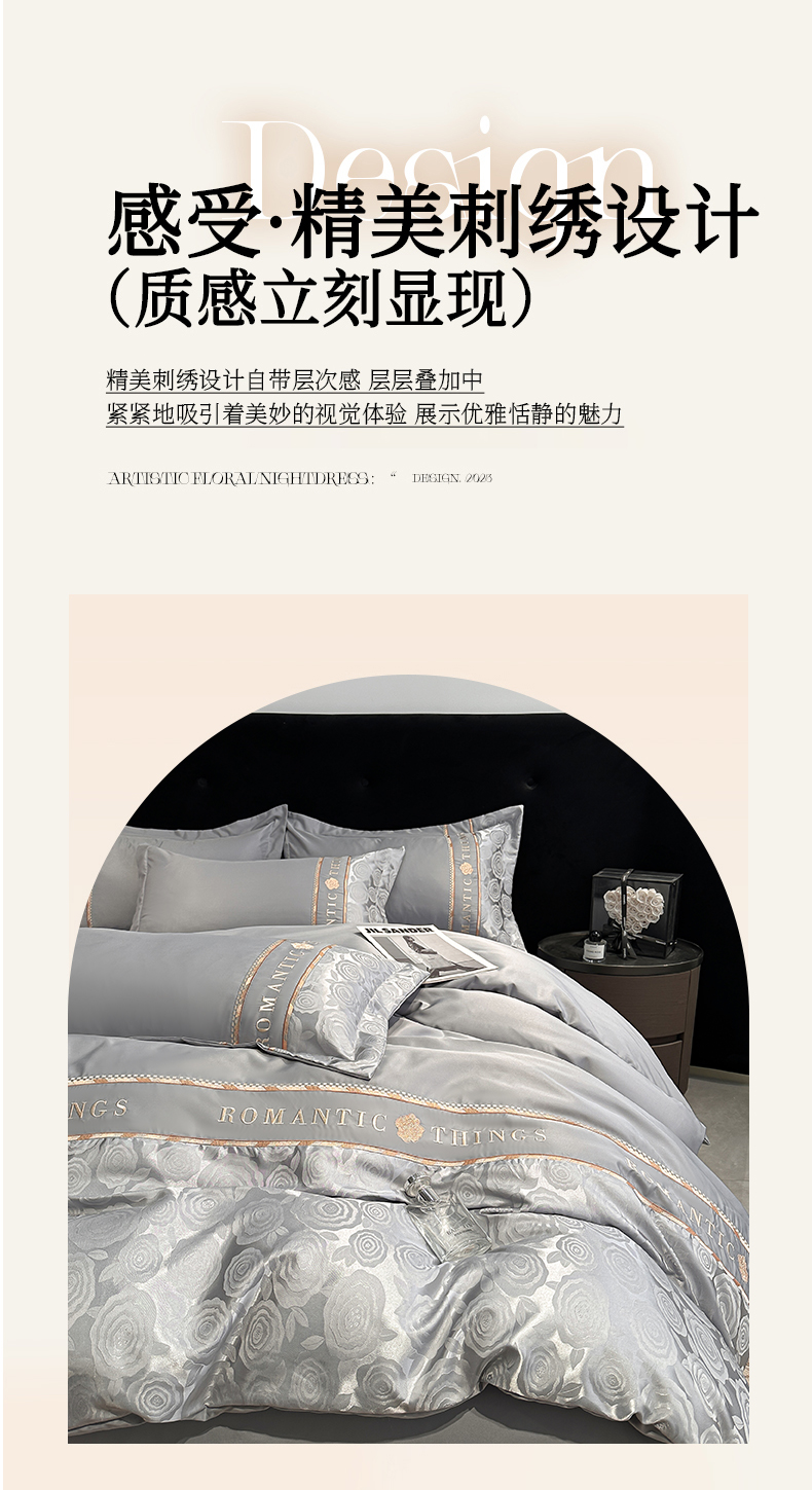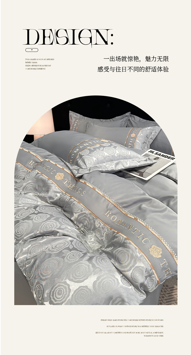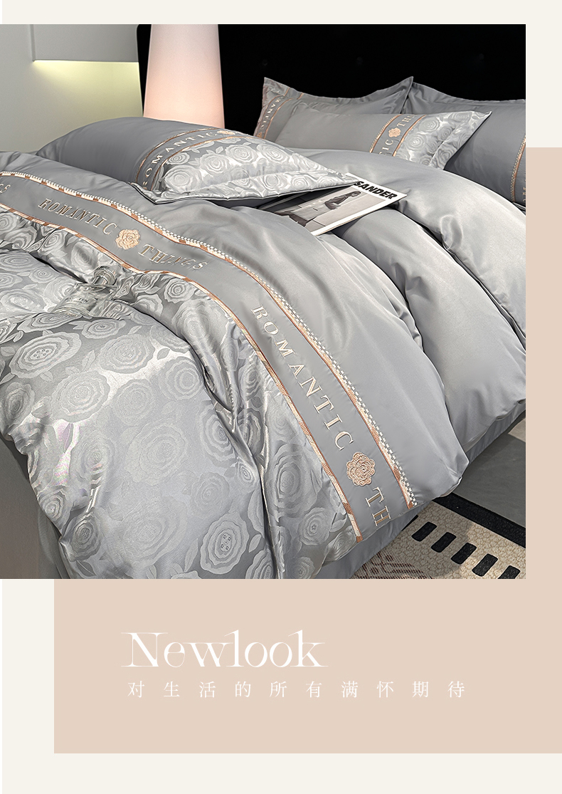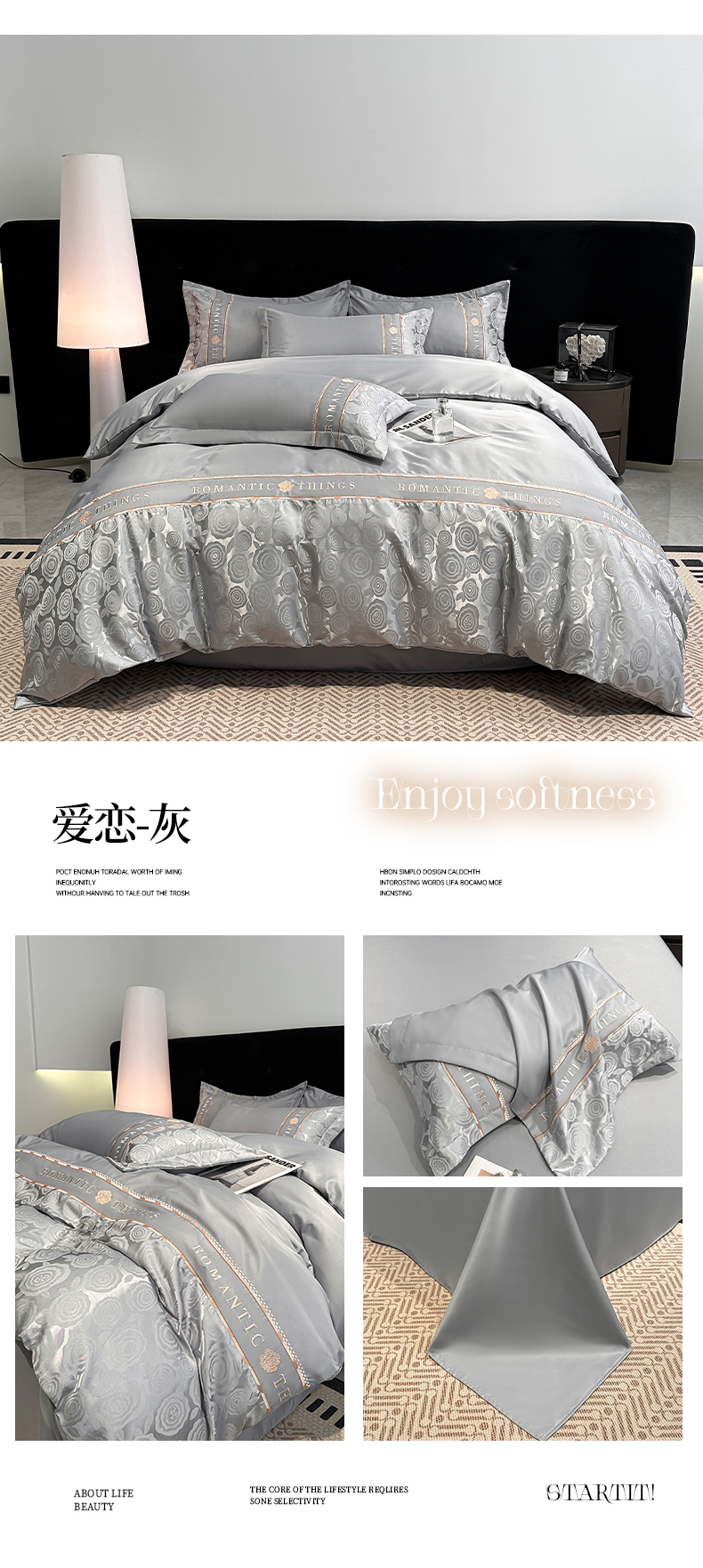 当前位置: 91家纺网 > 商品网购 > 床品套件 > 四件套 > 其它四件套 > 金牛座家纺 2026春夏新款细斜纹贡缎亮丝提花重工刺绣四件套-爱恋 爱恋-灰