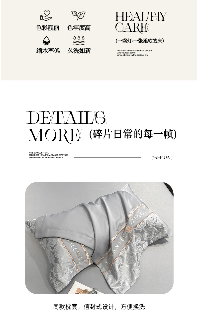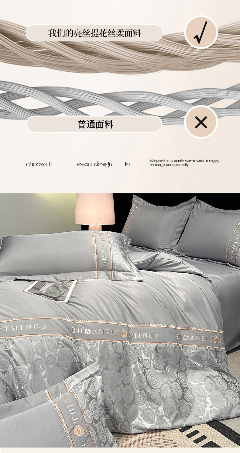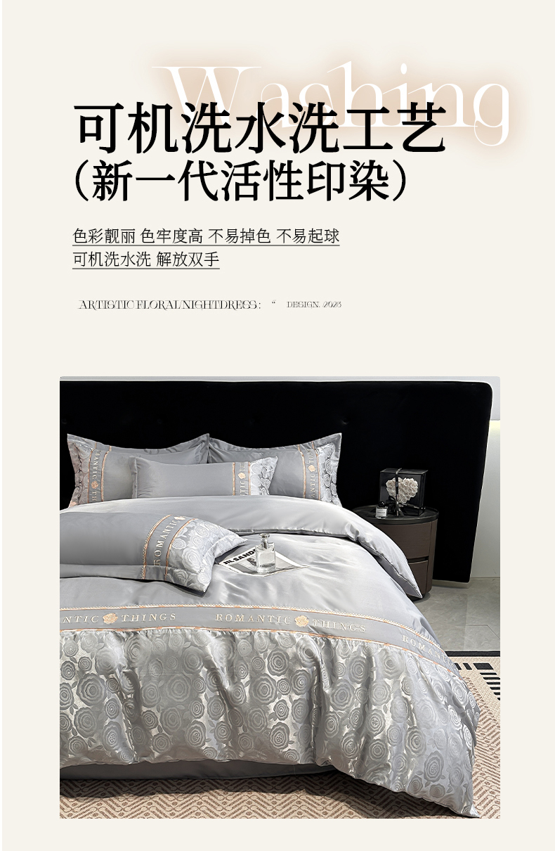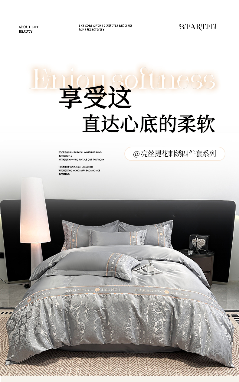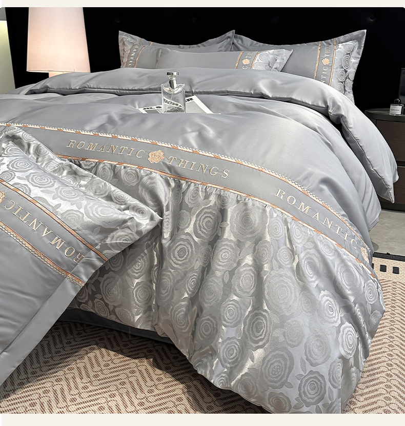 当前位置: 91家纺网 > 商品网购 > 床品套件 > 四件套 > 其它四件套 > 金牛座家纺 2026春夏新款细斜纹贡缎亮丝提花重工刺绣四件套-爱恋 爱恋-灰