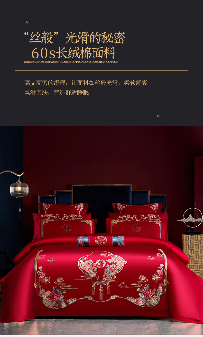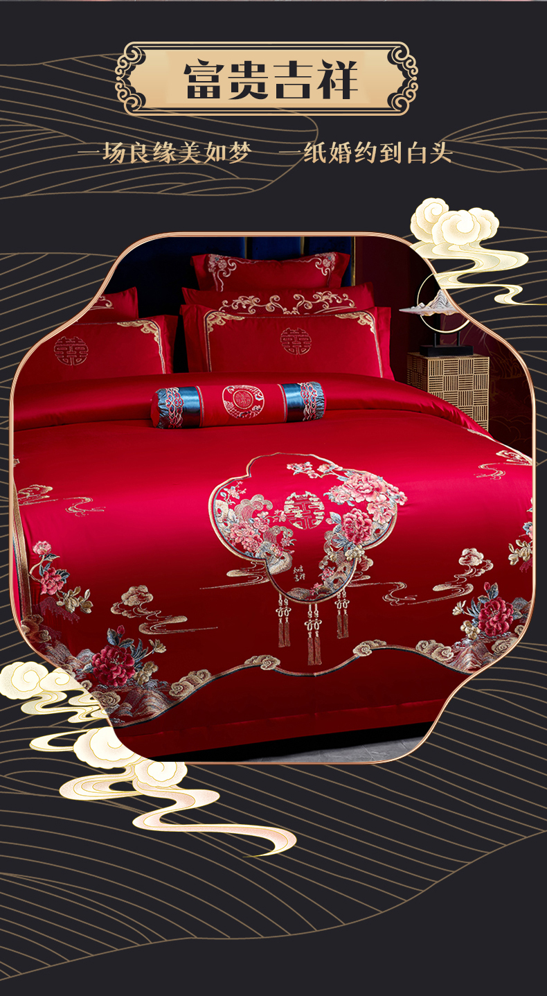 当前位置: 91家纺网 > 商品网购 > 床品套件 > 四件套 > 婚庆四件套 > 博之洋婚庆 2026新款全棉纯棉长绒棉刺绣婚庆四件套多件套 富贵吉祥