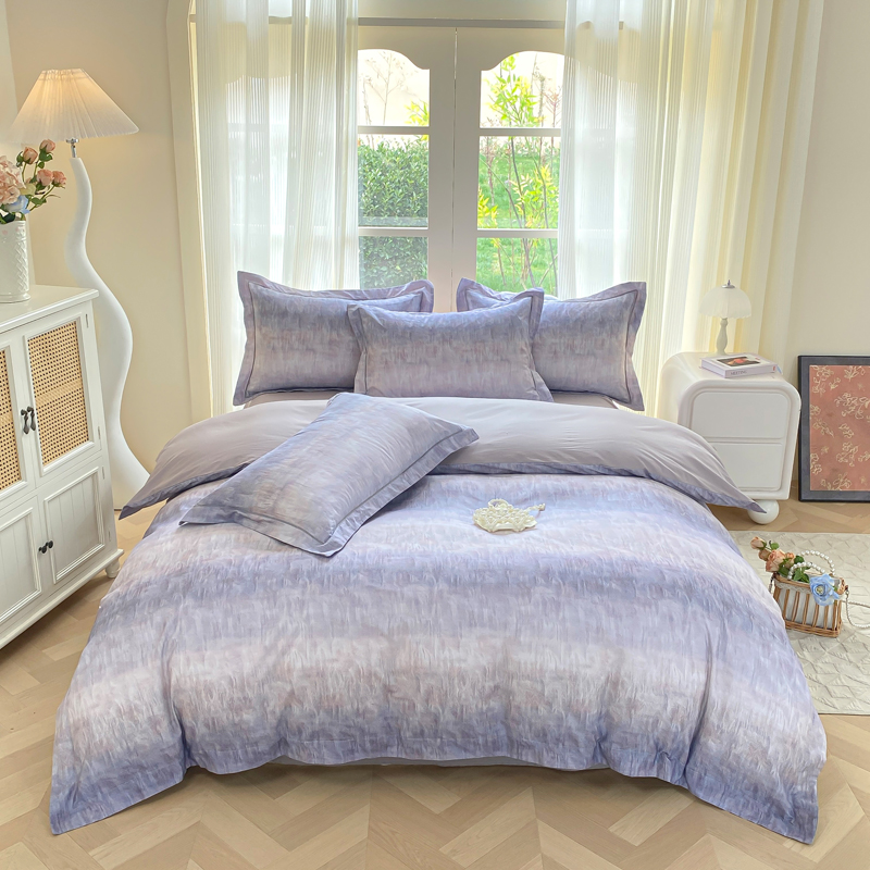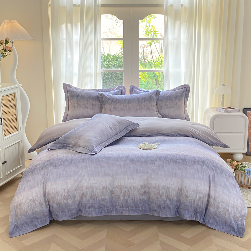 凌鼎 2026新款高支高密100%全棉数码印花四件套 浮光意境紫