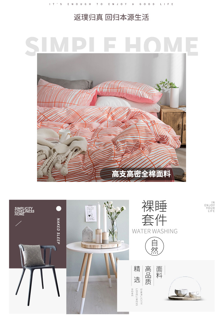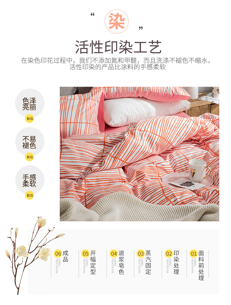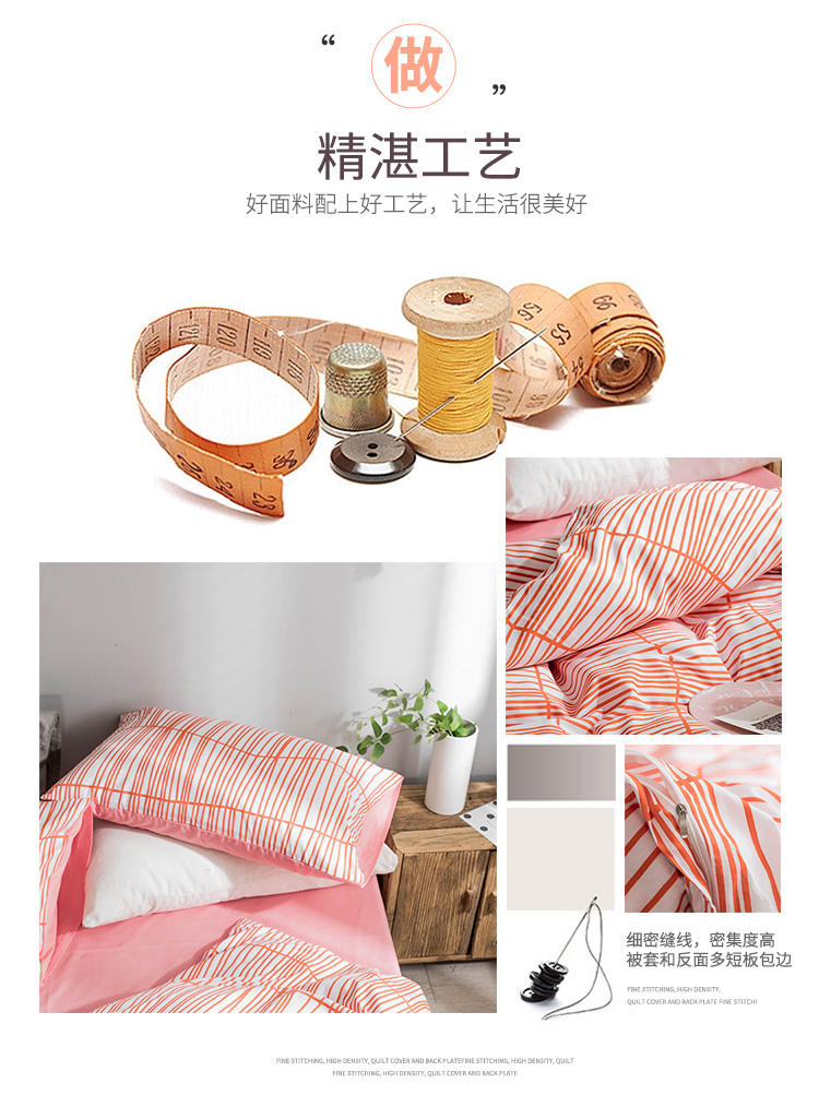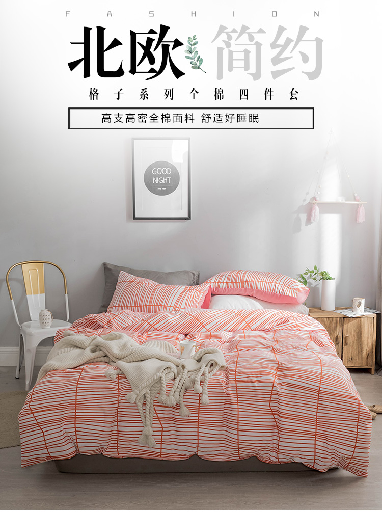 商品名称:艾沁家纺 北欧简约格子条纹系列全棉四件套床单款 涩