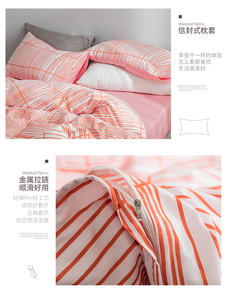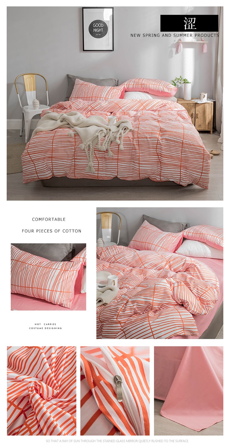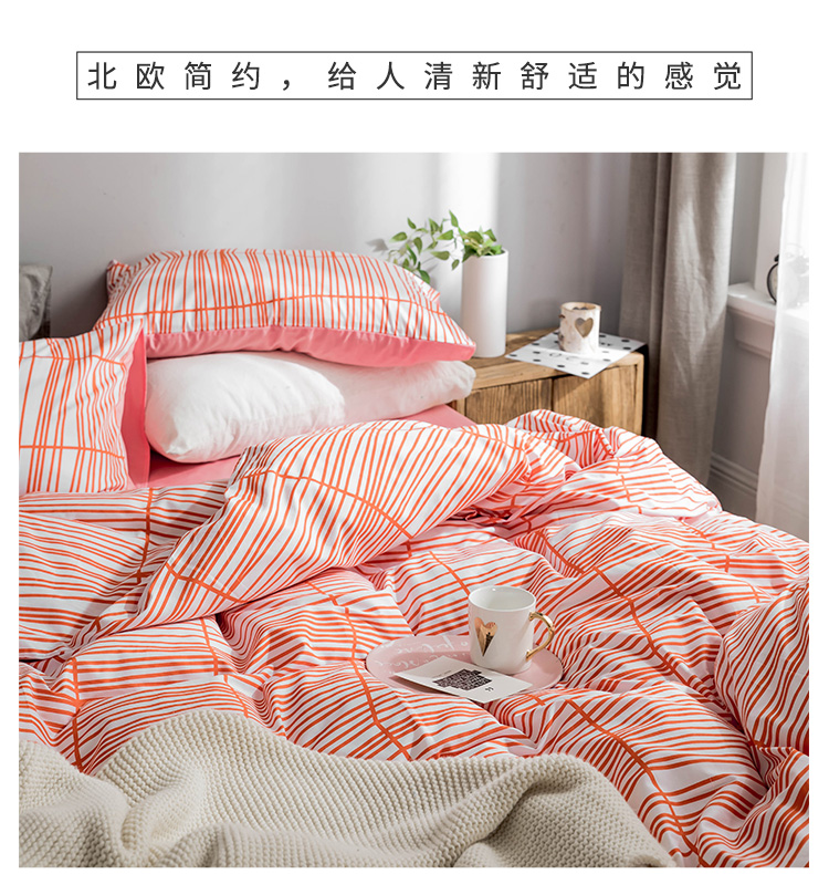 艾沁家纺 北欧简约格子条纹系列全棉四件套床单款 涩