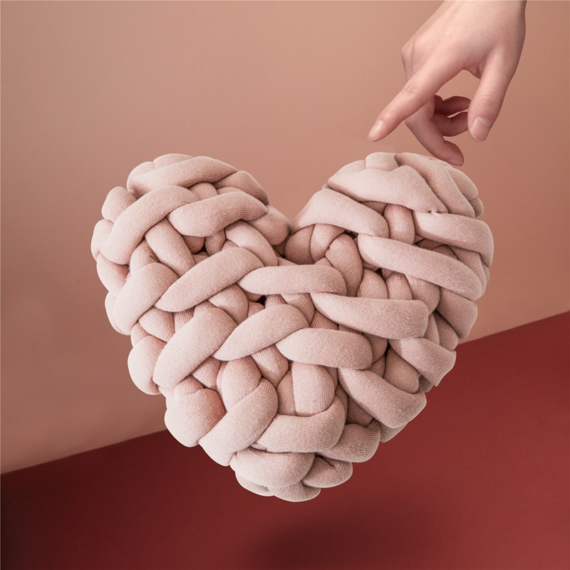 暖绵绵 新品哈特打结爱心抱枕针织靠枕抱枕靠垫 粉驼色