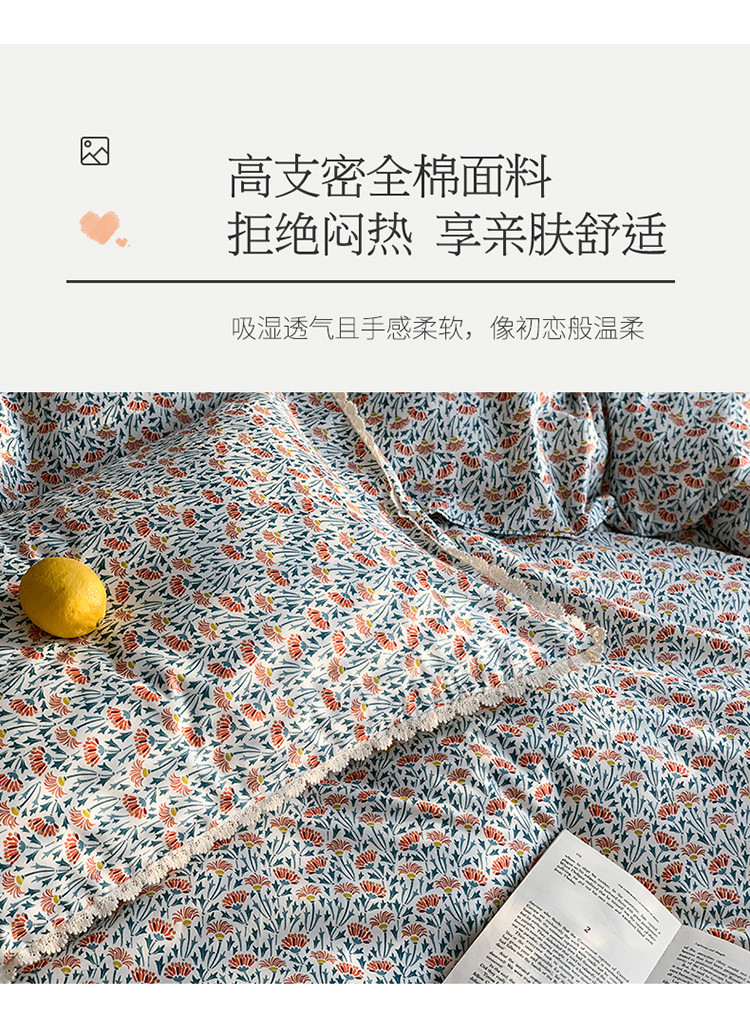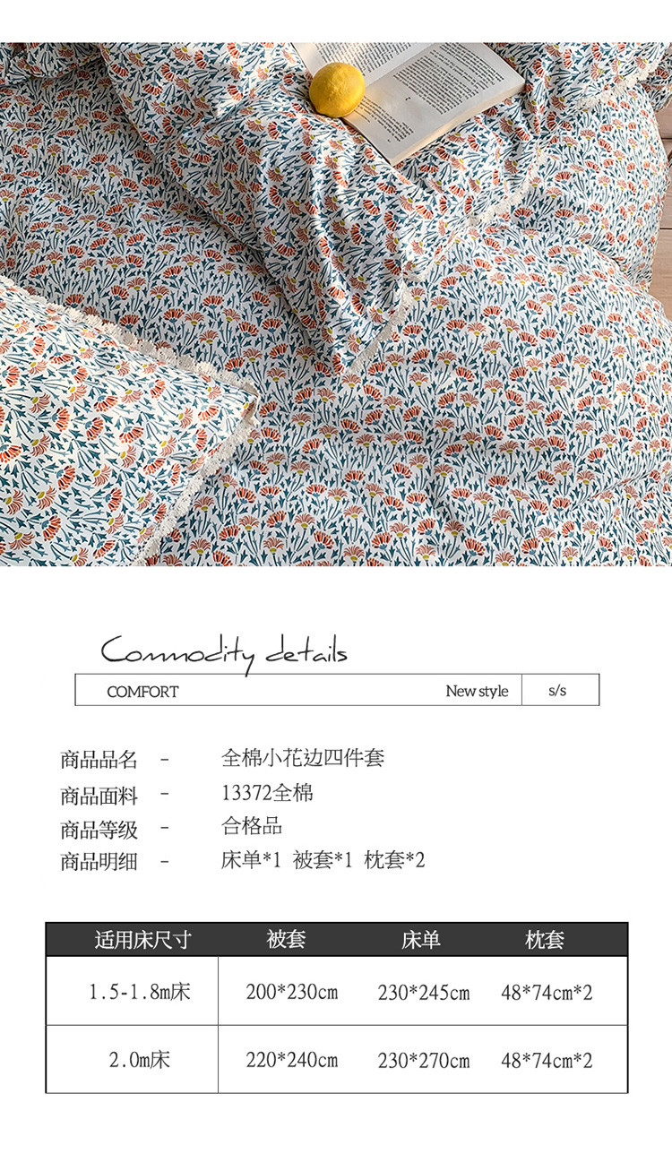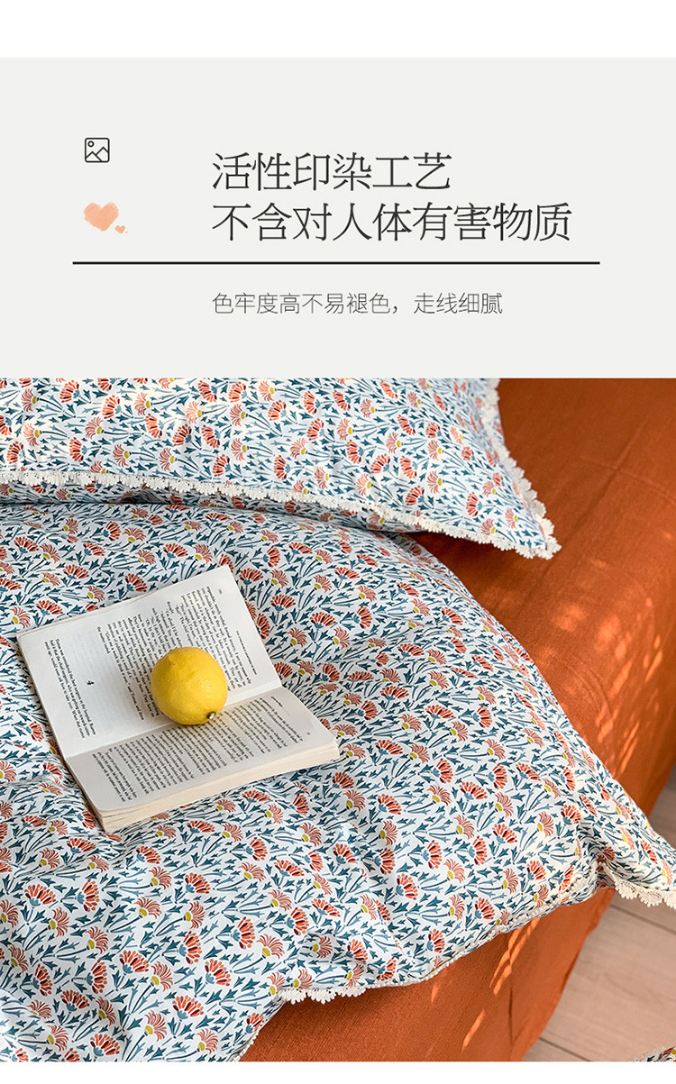 商品名称:澳萝拉 2021新款全棉小花边四件套 木槿