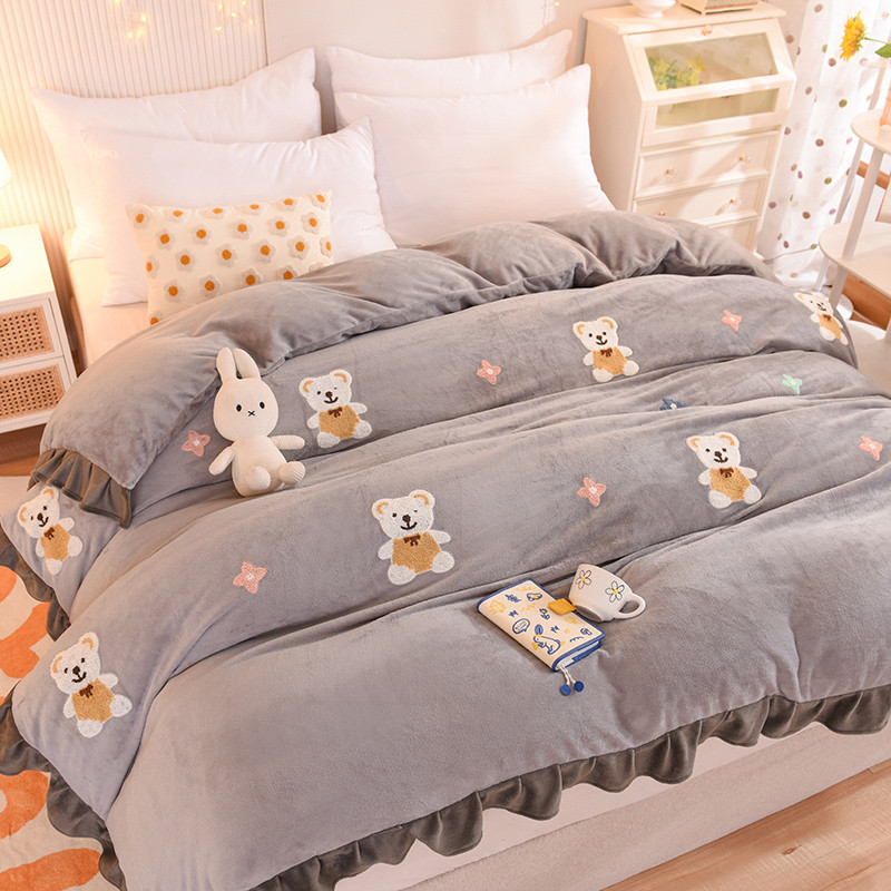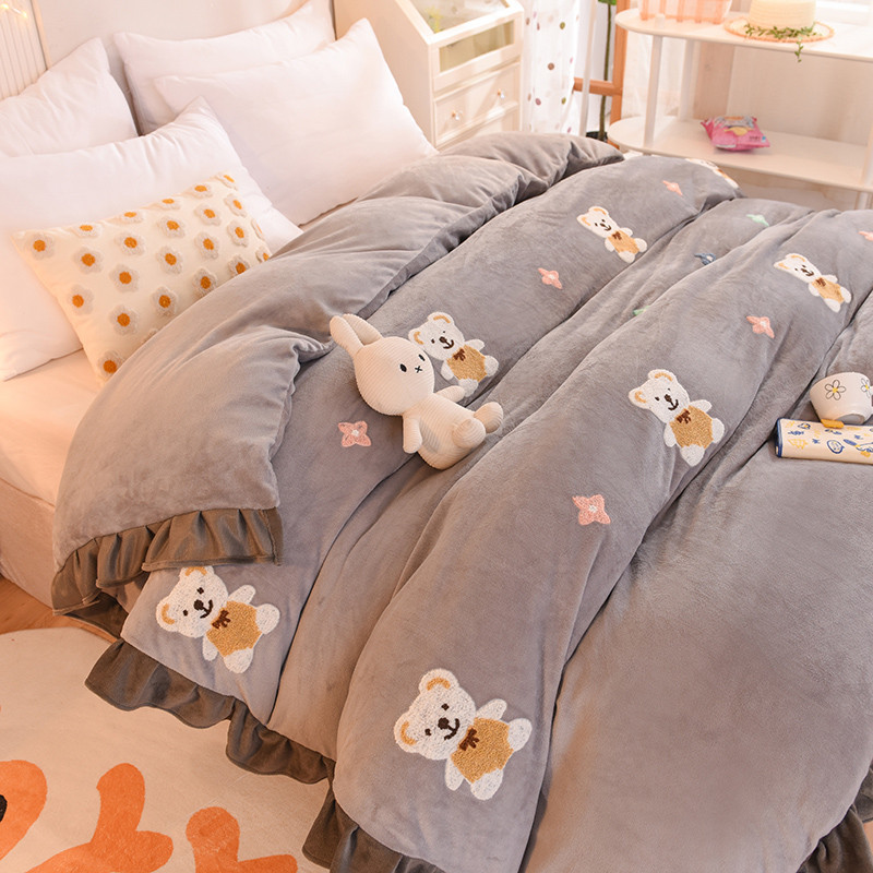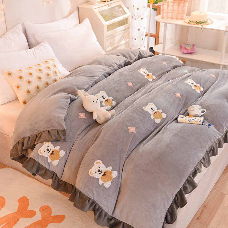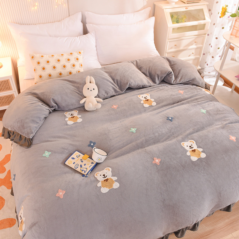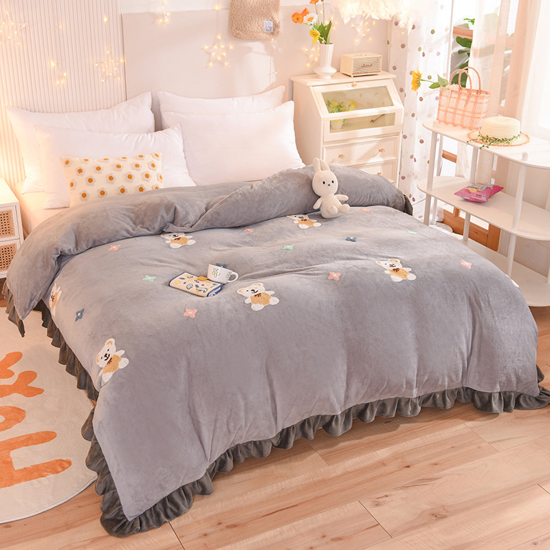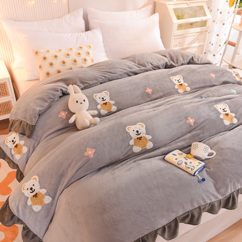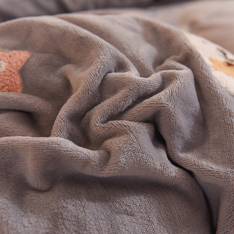 • 91家纺网 家纺一手货源 找家纺 甜之梦 2025新款毛巾绣牛奶绒单被套 小熊宝可梦浅灰
