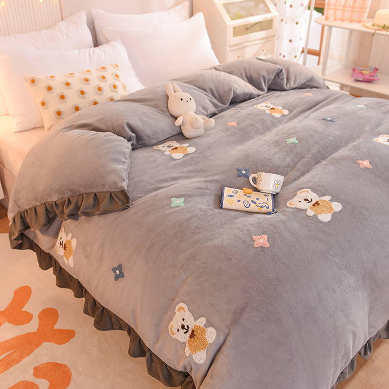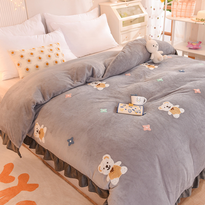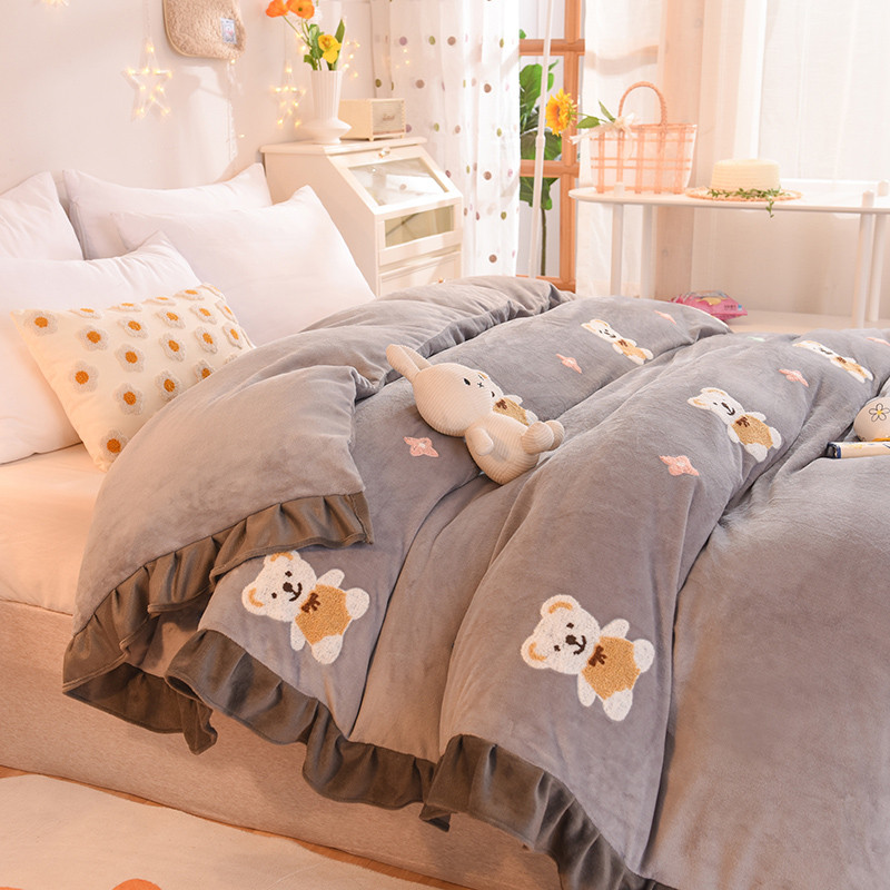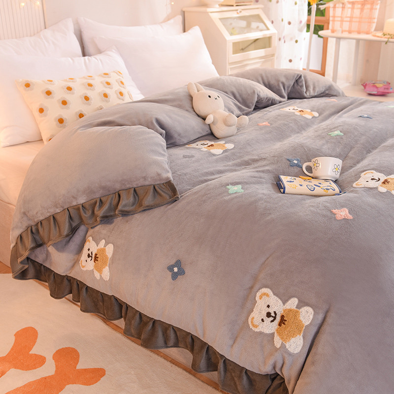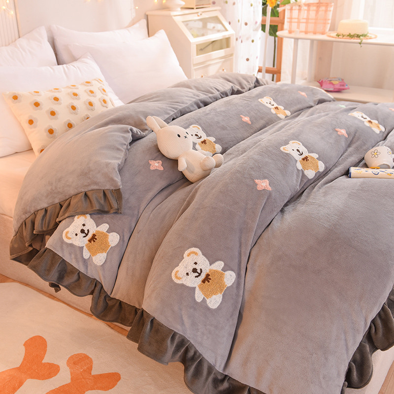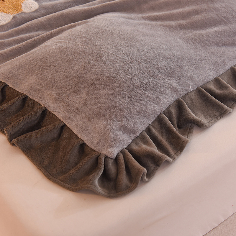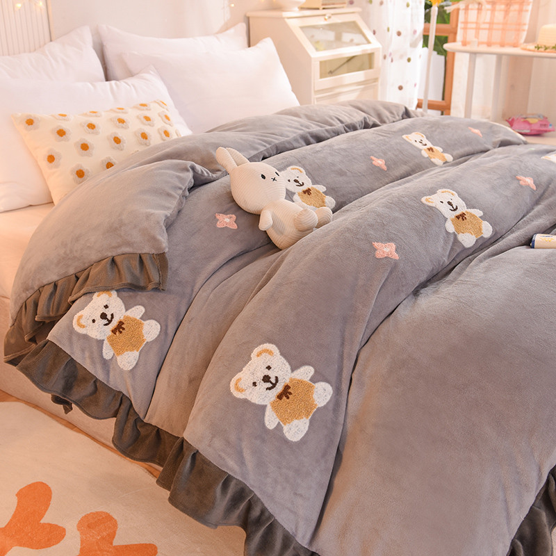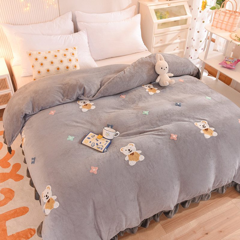 • 91家纺网 家纺一手货源 找家纺 甜之梦 2025新款毛巾绣牛奶绒单被套 小熊宝可梦浅灰