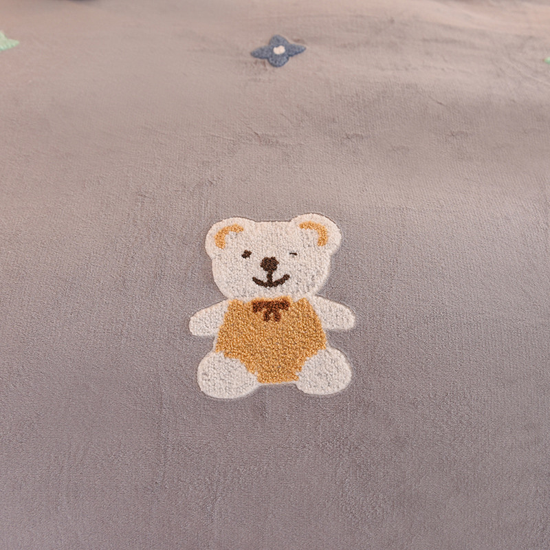 甜之梦 2025新款毛巾绣牛奶绒单被套 小熊宝可梦浅灰