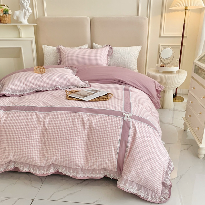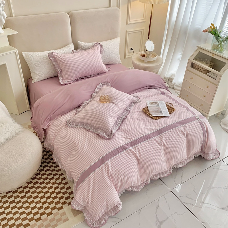 橙艺家居 2022新款全棉色织水洗花边工艺款四件套塞纳河畔紫