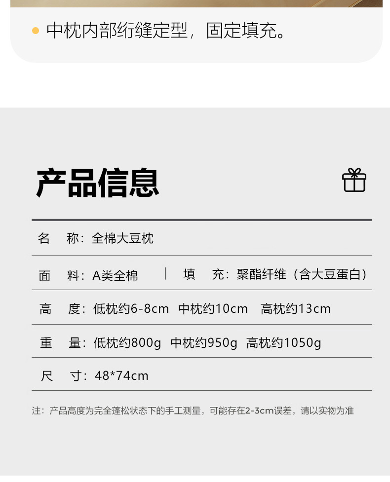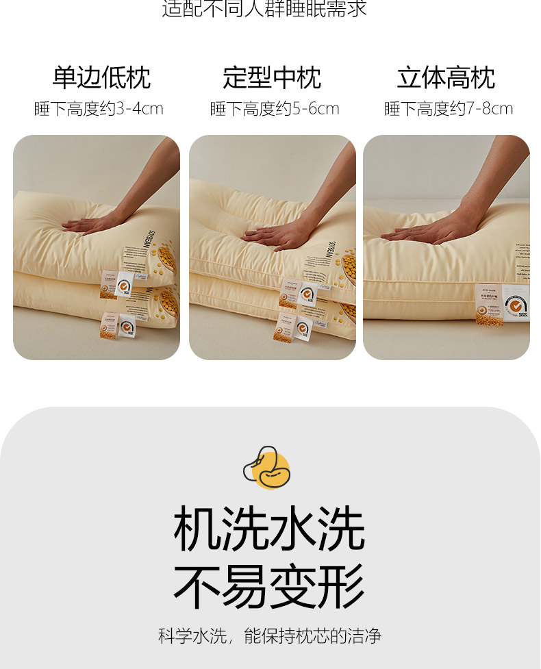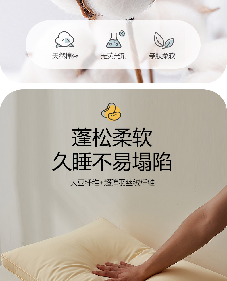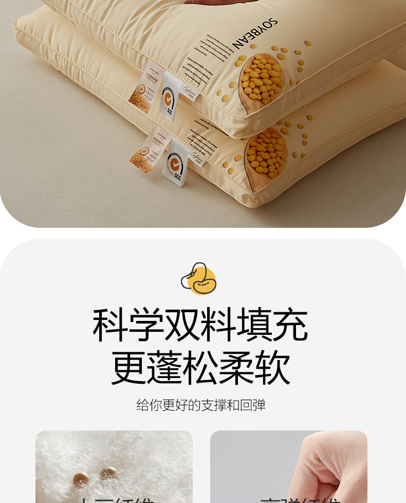 当前位置: 91家纺网 > 商品网购 > 枕头/枕芯/保健枕/颈椎枕 > 普通枕芯 > 乐可 2023新款全棉大豆枕 全棉大豆枕-定型中枕【单只装】