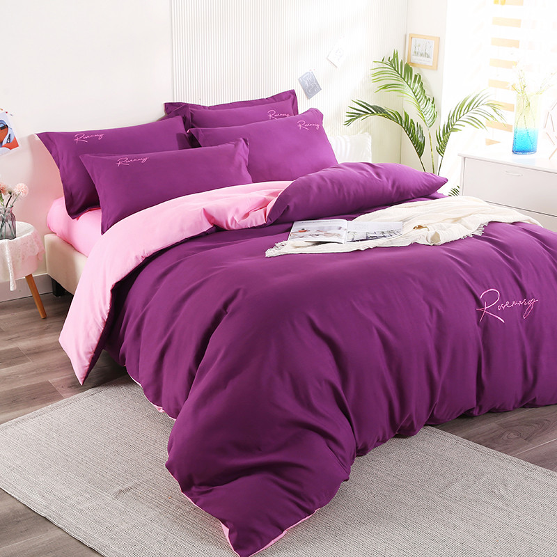 7V 现货3000套110g加厚磨毛刺绣网红直播四件套 库存数量每个颜色500套 魅紫玉